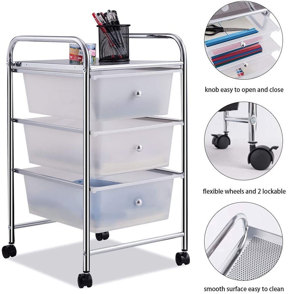 3 Drawers Storage Cart, Rolling Storage Organizer with Plastic Drawers, Wheel...