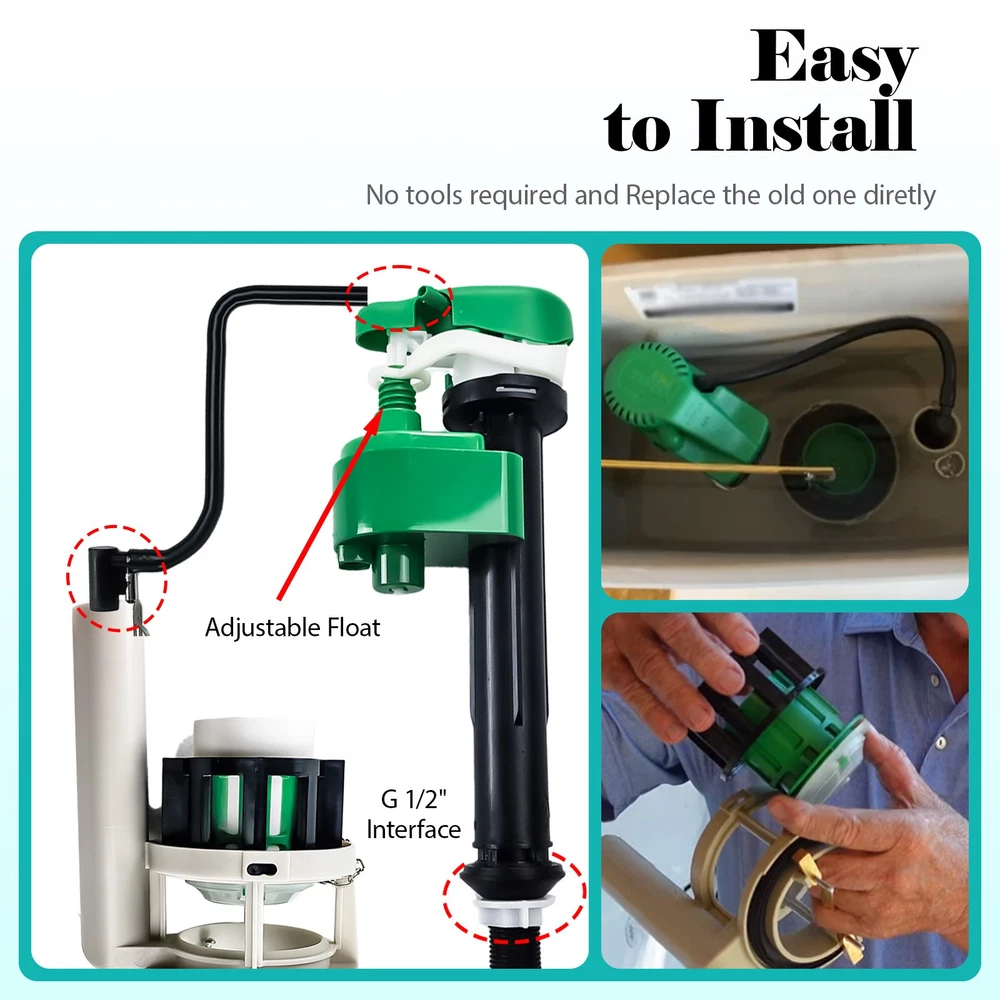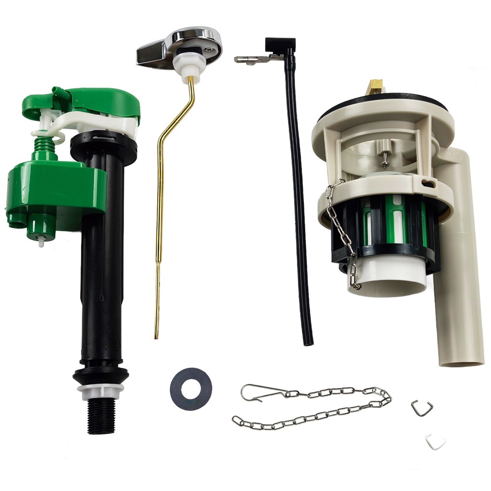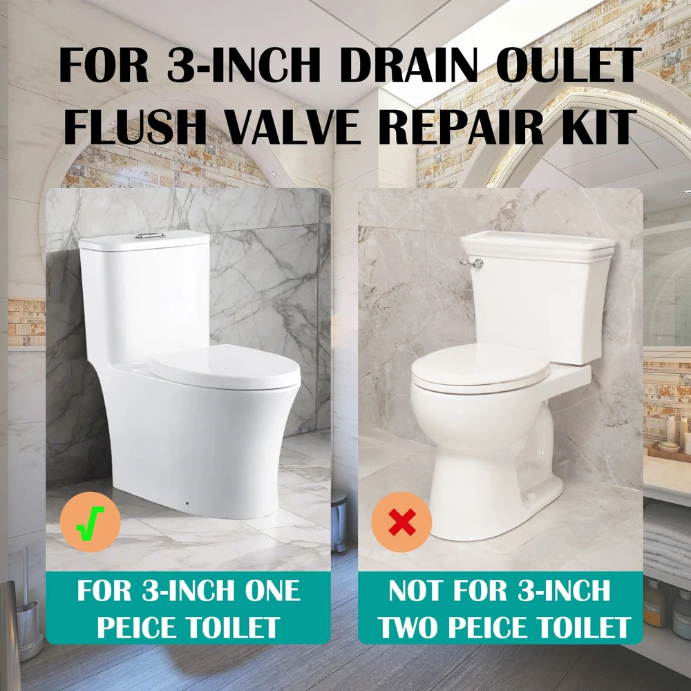 3-Inch Toilet Flush Valve Repair Kit for One-Piece Toilets, Drain Valve & Fill V Product description 【Universal Fit for Most Toilets】 Specially designed to fit most standard one-piece toilets (with a 3-inch flush hole), this kit is compatible with most major brands and models. 【Complete All-in-One Kit】 It includes a high-performance fill valve G1/2", a durable flush valve, and a corrosion-resistant stainless steel lever. Everything you need to complete a full toilet tank repair in one package.