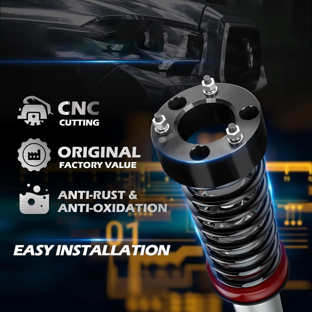3" Front Leveling lift kit for 2007-2019 Chevy Silverado GMC Sierra 1500 2WD 4WD 【Lifting Height】This kit will raise the front of your Silverado 1500 Sierra 1500 by 3 inch.Due to the geometry of the suspension,the ratio of lifting height to kit thickness is not 1:1.The actual thickness of the leveling lifting kit itself is less than the lifting height 【Model Compatibility】Suitable for 2007-2024 Silverado 1500/2007-2024 Sierra 1500.This set will raise the front of the Silverado 1500 Sierra 1500 by 3" 【Process And Material】Forged from 6061-T6 aluminum alloy,CNC automatic processing,surface anodizing and heat treatment,and hardened grade 12.9 bolts are installed in advance,which not only ensures high precision and stability,but also improves the hardness and corrosion resistance of the material 【Easy To Install】The leveling Lift Kits is equipped with everything you need for a simple bolted installation. This process can be completed within 2 hours without preloading,cutting or modifying any factory parts 【Service And Warranty】All products are guaranteed for two years.If you have any questions about our products and services, please feel free to contact us Note:It will raise the front of your truck by 3 inch , Because of suspension geometry,the ratio between lift height and kit thickness is not 1:1. Compatible with 2007-2022 Chevy Silverado 1500 (2WD/4WD) 2007-2022 GMC Sierra 1500 (2WD/4WD) 2007-2021 Yukon 2WD/4WD 2007-2020 Tahoe 2WD/4WD Package: 2 x Front Leveling Lift Kit 1 Set Nut.