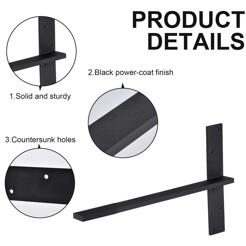 Store category Sign Up Now ! You may also like Product Description Bullet Points: Diverse Compatibility: Improve your bathroom aesthetics with our high-quality shelf hangers brackets, designed to offer luxurious support for shower benches, bathroom vanities, or tabletops Spacious Design: Non-intrusive and almost invisible once installed, our shelf hanger brackets avoid the knee collision issues that may be caused by traditional corbel supports, providing more open space for chairs and legs Stable Structural Design: Constructed from thick, high-strength steel for a stable structural design, these shelf hanger brackets provide the perfect solution for managing various heavy-duty needs with their high load-bearing capacity and lasting durability Easy Affixation: With just basic tools, installing our T-shaped shelf brackets is a breeze. Equip each bracket with 6 pre-drilled holes and plenty of screws for easy assembly, perfect for crafting stylish shower benches or storage solutions Wide Range of Applications: Showcases better performance with various materials such as granite countertops, heavy wood boards, marble, and quartz. Perfect for a wide range of applications Improve your countertops with our sturdy Shelf Hangers Brackets! These high-strength steel brackets offer reliable support, preventing knee collisions. Easy to install for stylish home decor, they provide stability for various countertops. A practical choice for your shelving needs. Specifications: Product name: floating shelves bracket Product material: heavy steel Product color: black Product size: Type 1: Horizontal partition size: about 45.72x3.8cm/18x1.5 inches, thickness: about 1.27cm/0.5 inches; vertical partition size: about 27.94x6.35cm/11x2.5 inches, thickness: about 0.635cm/0.25 inches Type 2: Horizontal partition size: about 50.8x3.8cm/20x1.5 inches, thickness about 1.27cm/0.5 inches; vertical partition size: about 27.94x6.35cm/11x2.5 inches, thickness: about 0.635cm/0.25 inches Type 3: Horizontal partition size: about 60.96x3.8cm/24x1.5 inches, thickness about 1.27cm/0.5 inches; vertical partition size: about 27.94x6.35cm/11x2.5 inches, thickness: about 0.635cm/0.25 inches Packing List: 3x Shelf Hangers Brackets 18x Expansion Screws Notes: 1. Due to different lighting and screen settings, the item color may be slightly different from the picture. 2. Due to different manual measurements, please allow a 1-2cm difference in size. Payment Delivery details Terms of sales About us Feedback & DSRs Payment Before you palce an order, please kindly make sure that you have a paypal account. We accept PAYPAL payment only. Payment should be completed within 2 days after auction closed, or unpaid dispute will be filed for an closing auction. An unpaid case will be filled after 4 days. Delivery details We ship to your eBay address. Each package will be shipped to US by UPS Regular Parcel with tracking number. Please check your shipping address carefully before checkout, it can't be changed if order completed. All items will be shipped within 1-2 business day upon receipt of payment.Orders placed on weekend will be shipped within 3 days. If you do not receive your item in 7-10 business days.please contact us immediately for further assistance. We will be responsible for any damages or losses incurred in the shipping process. About us We maintain high standards of excellence FIVE STAR and strive for 100% customer satisfaction! Positive Feedback is very important to us. We hope that you contact us immediately Before you give us neutral or negative feedback, so that we can satisfactorily address your concerns. We promise to offer the lowest price and high quality produce. Our working time: From Monday to Friday(9:30 am to 18:00pm), we don't working on holidays ,hope you can understand and know that , thank you. Please always talk to us via ebay Message. We appreciate your business and look forward to growing our e-Bay sales with satisfied customers. Feedback Contact us If you have any questions, please feel free to contact with us by ebay Message during our business hours ( 9:30a.m. to 5:30 p.m.), or email us through eBay, we will try our best to help you to resolve it. For any presale or after-sale questions,please do feel free to email us! Due to the time difference, each email will be replied within 1 working day,and weekend will be delayed a bit. Feedback