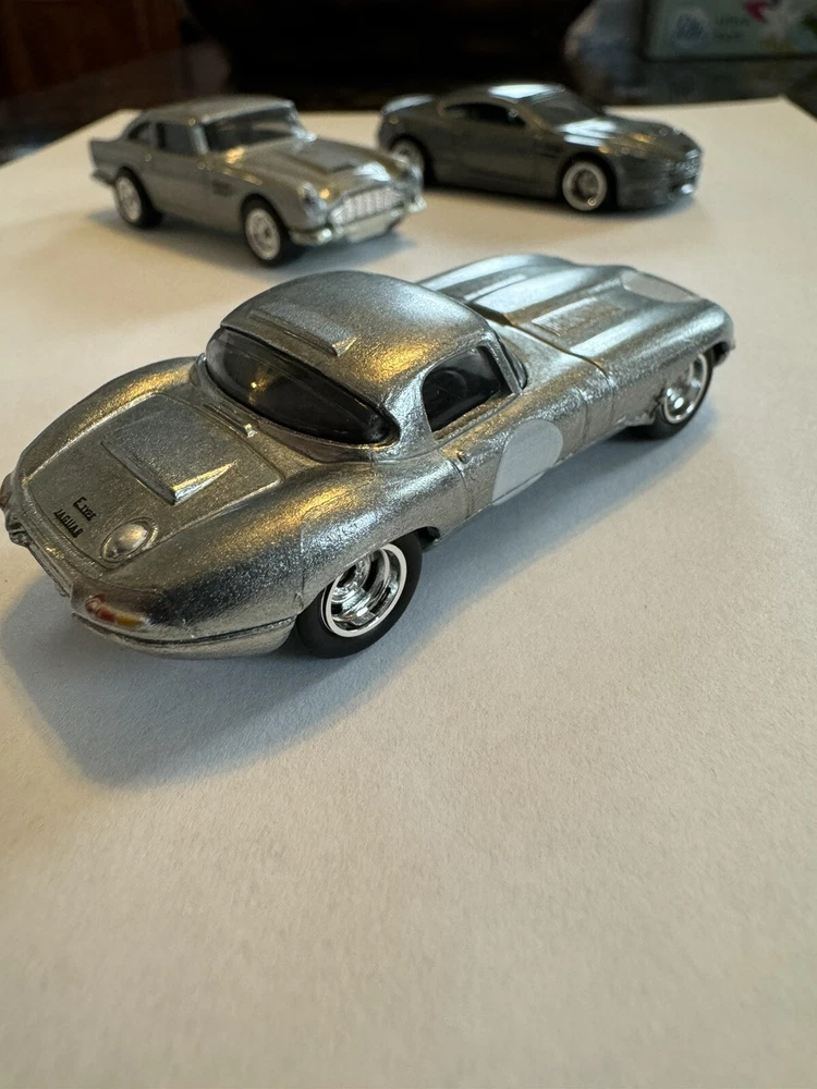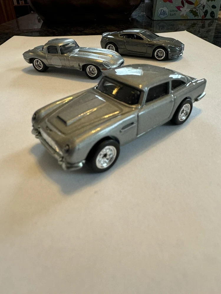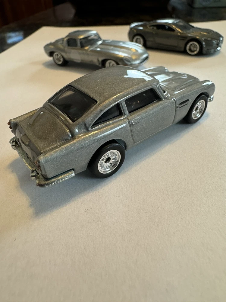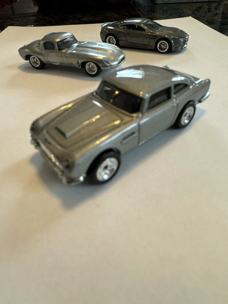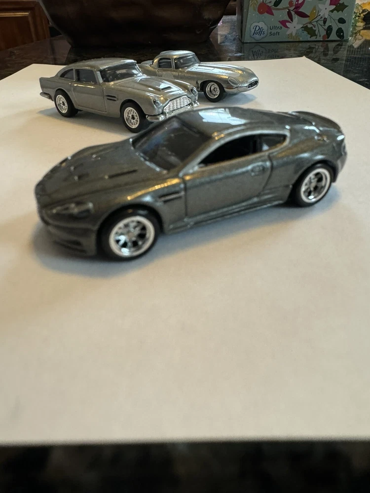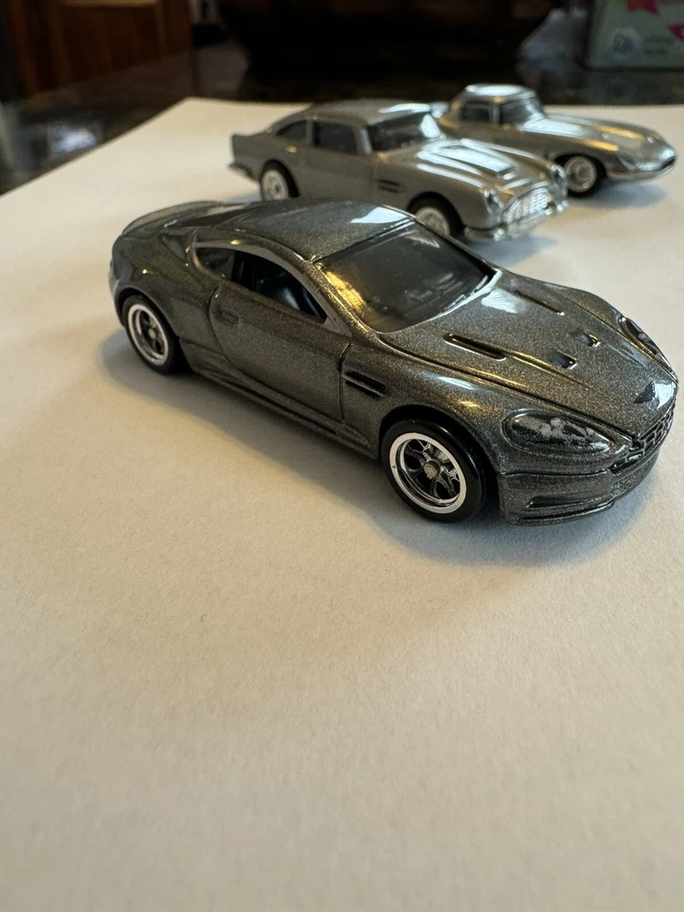 3 hot wheels, premium real riders metal/metal jaguar, lightweight E-type Aston Martin db5 Aston Martin DBS. Excellent condition. Would make a great gift or add to your collection/display. Please check photos for details and condition, bubble wrap, and cardboard box for shipping.