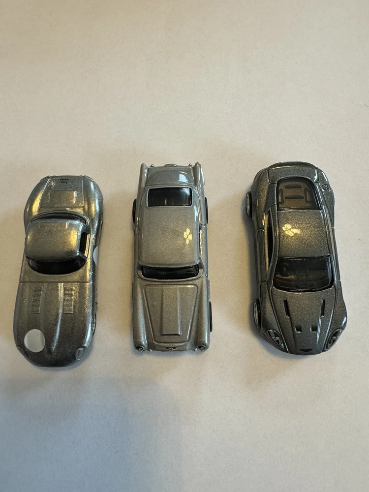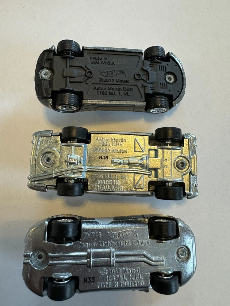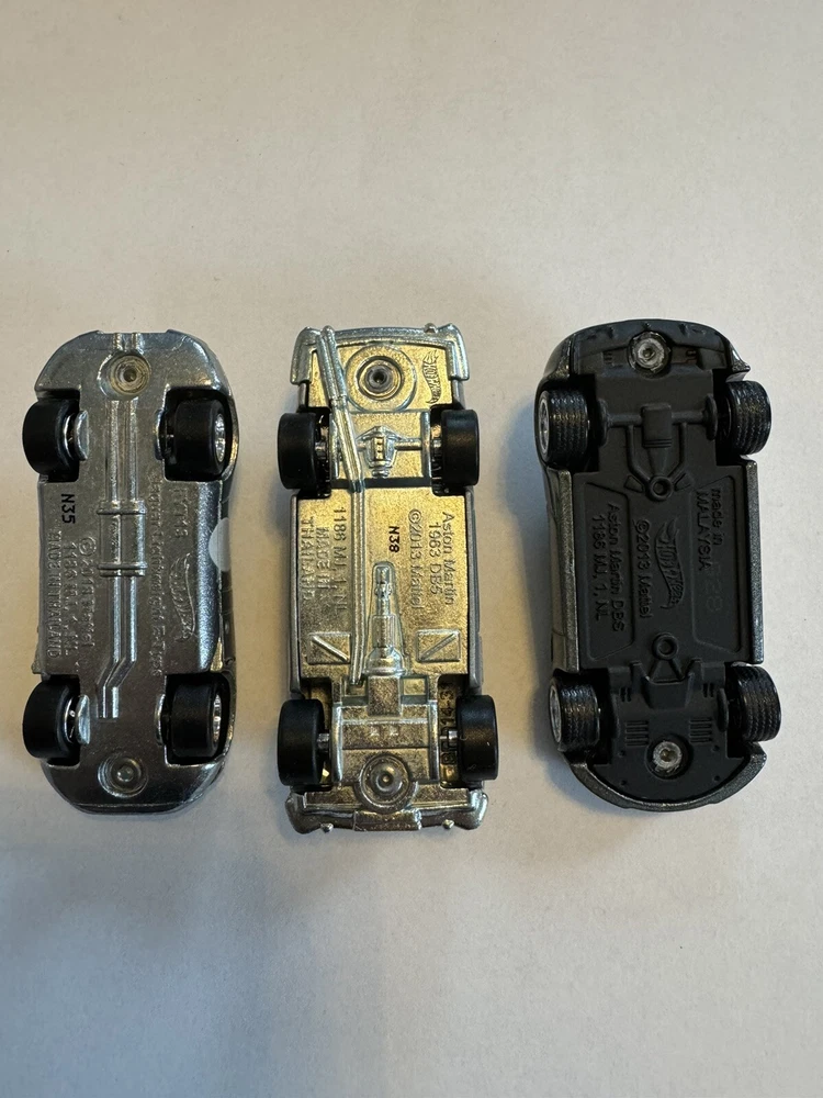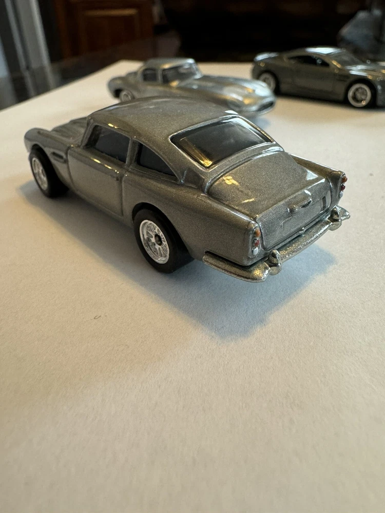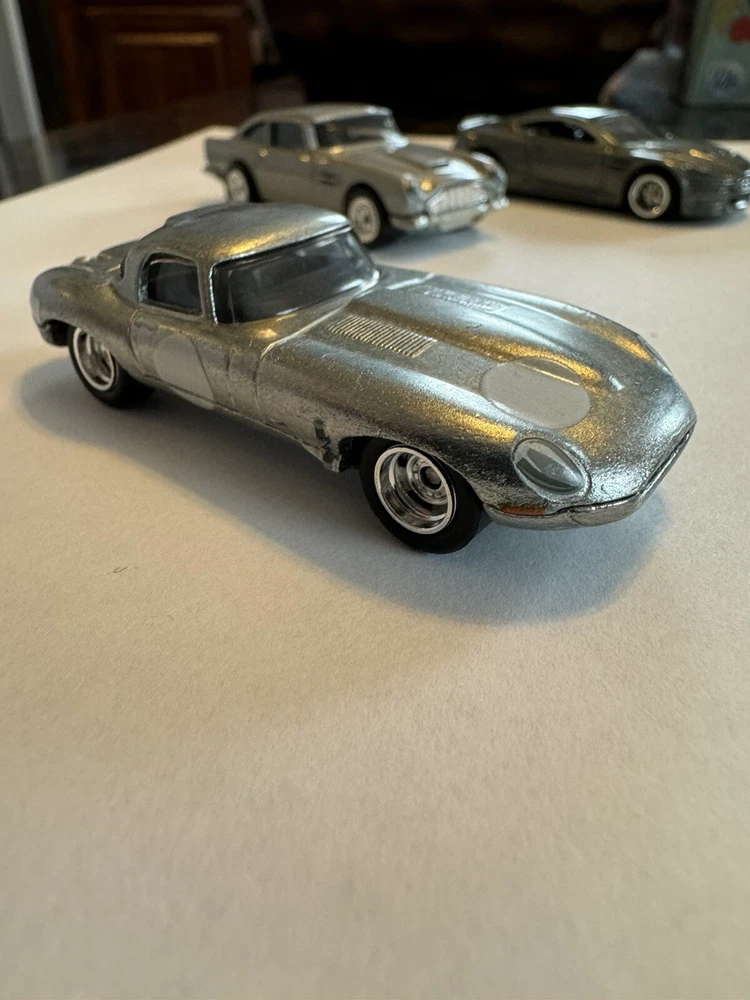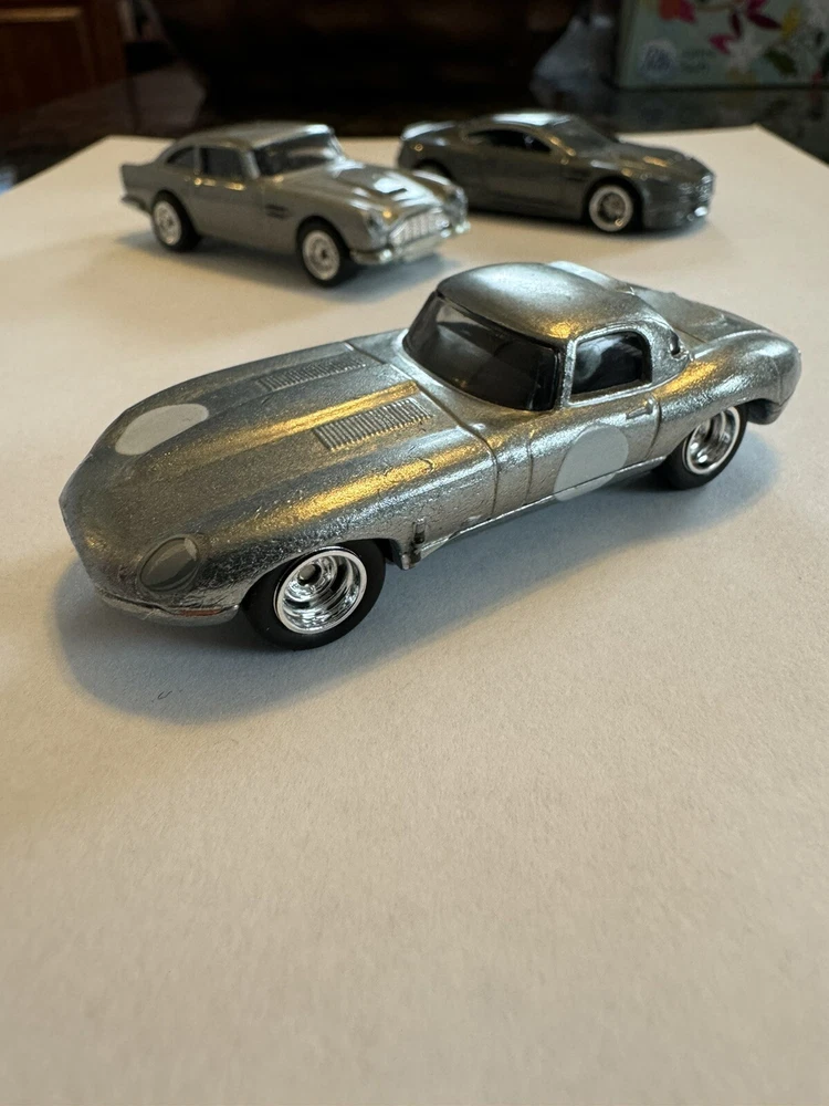 3 hot wheels, premium real riders metal/metal jaguar, lightweight E-type Aston Martin db5 Aston Martin DBS. Excellent condition. Would make a great gift or add to your collection/display. Please check photos for details and condition, bubble wrap, and cardboard box for shipping.