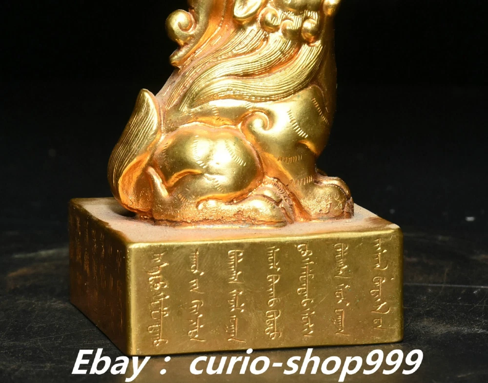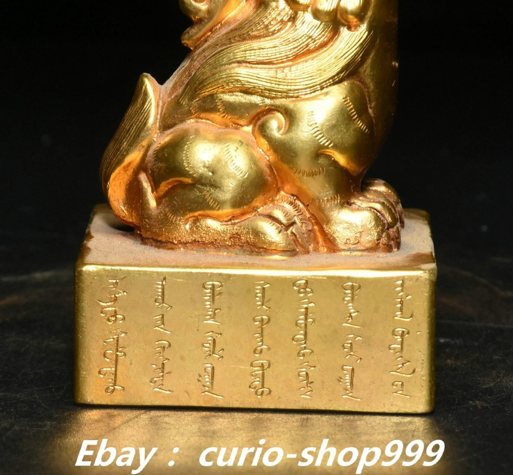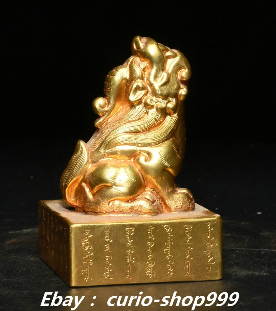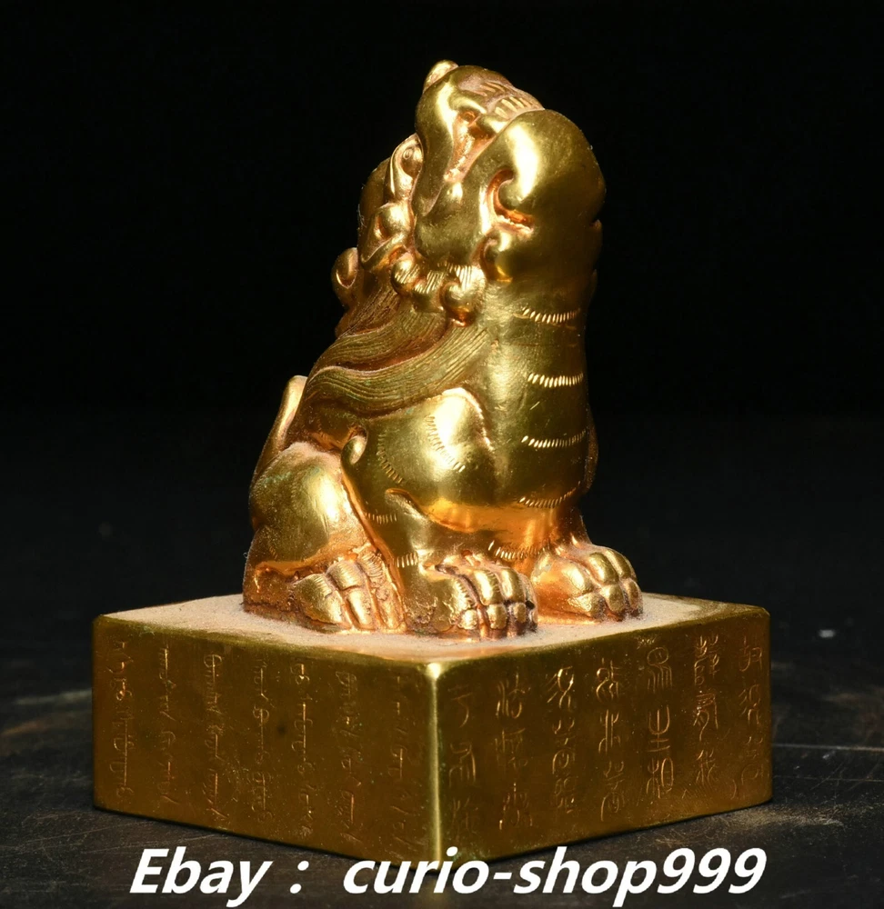 **** Welcome to our antique & Collectable Shop : Porcelain**** Description: Here is 3" China Dynasty Copper Gold Inscription Dragon Beast Imperial Seal Stamp Signet . It is in good condition, and was created by skilled craftsmen in traditional style with fine handcrafts.This is a great piece of valuable collection, a valuable personal alter or a very good present. the handwork is very fine with incredible detailling. Don't miss out this chance to get it.Wish you good luck! . Material : Chinese Style : Copper Gold . Sizec : Heigh t 3.1 . Long 2.0 . B readth 2.0 . (inch) Condition Perfect Condition. Perfect, with no scratc hes, flaws or repairs. Weight: 1.7 KG----included the weight of packing materials Shipping cost to all over the world countries in Free Honored Customers: We are selling the collectibles products and crafts in Beijing ,China since 1993 and collected them all over the world all the time . In our shop the bronze sculpture, animal, vase, urn, flowerpot,Incense Burner.Table chair sets. Militaria goods. buddha statues, Bodhisattva Statues, Buddhist Ritual Items etc is our speciality .Many of the items we sell come from our own personal collection and have been in our family for a very long time .My great-grandfather was the first in this family to start collecting art & antiques when he still lived in San Xi and Tibet around 1922 ,some of the paintings he once collected can now be seen in museums around the globe.We won't make money from t he shipping cost, if you dislike the item when you receive it,we can refund all of your money to you within thirty days. Please confidence for bidding . We recommend the combine shipping and offer you an big price discount if you order more items together ! 2024.12.01 四 号