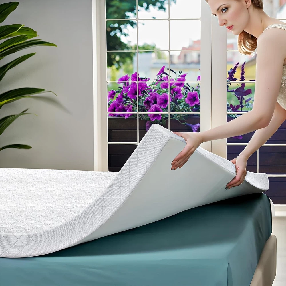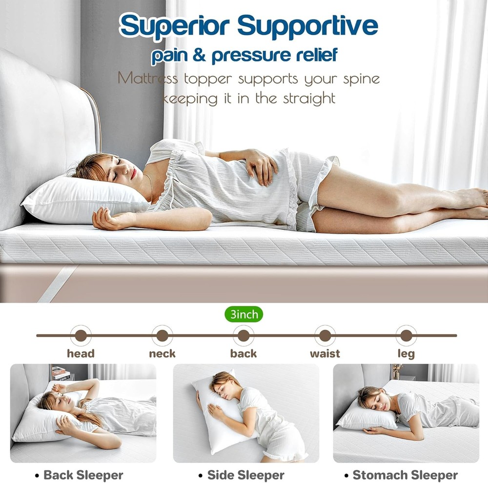 3 Inch Cooling Memory Foam Mattress Topper Queen, High Density White Product Details Brand: Cistny Color: White Size: Queen Fabric Type: Breathable Skin-friendly Cooling Bamboo Fiber Special Feature: Vacuums Closure Type: Zipper Product Care Instructions: Machine Wash Water Resistance Level: Not Water Resistant Age Range (Description): Adult Material: Memory Foam Model Name: queen mattress topper Number of Items: 1 Manufacturer: Cistny Product Dimensions: 80 x 60 x 3 inches Item Weight: 20.2 pounds Country of Origin: Hong Kong Item model number: queen mattress topper 3 INCH MEMORY FOAM MATTRESS TOPPER : Crafted from premium memory foam and bamboo cover, this mattress topper queen conforms to the natural curves of your body, relieving pressure points. The 3-inch thickness offers the perfect balance of cushioning and support, allowing you to sink into blissful slumber without feeling enveloped or trapped. Designed to enhance the feel of any mattress, this queen mattress topper can revitalize an aging mattress or add an extra layer of plushness to a newer one. SUPPORTIVE & PRESSURE RELIEF : Crafted from premium, high-density memory foam, this mattress topper twin molds perfectly to the contours of your body, providing support and pressure relief for your back, spine, hip, neck, and shoulders. And this twin size mattress topper helps reduce tossing and turning by evenly distributing your weight and minimizing motion transfer. COOLING MATTRESS TOPPER TWIN : The memory foam mattress topper twin has a breathable and cooling bamboo covering, which helps dissipate heat. And open-cell structure of memory foam promotes airflow freely, preventing the buildup of heat and moisture, keeping you cool and comfortable throughout the night. PREMIUM CertiPUR-US FOAM : Crafted from 40D high-density, temperature-sensitive memory foam, certified by CertiPUR-US which compliant with human health standards for content, emissions and durability. OEKO-TEX BAMBOO COVER : Certificated by OEKO-TEX, our hypoallergenic and organic bamboo cover is soft, breathable and cooling feel. Maternal-Baby Product Level material, which suitable for sensitive skin person and children. EASY CARE : The removable, machine-washable cover makes it easy to keep your mattress topper fresh, promoting a clean and hygienic sleep environment. While, the corner elastic straps and anti-slip backing to prevent sliding. JUST RIGHT FIRMNESS : Our twin bed mattress topper is dual-layer foam combination design: the white-color supportive foam, and softer memory foam. The firmness level can be adjusted by flipping over the different foam side. 120-night sleep trial, featuring the provide you "just right" firmness!