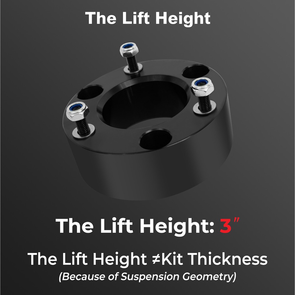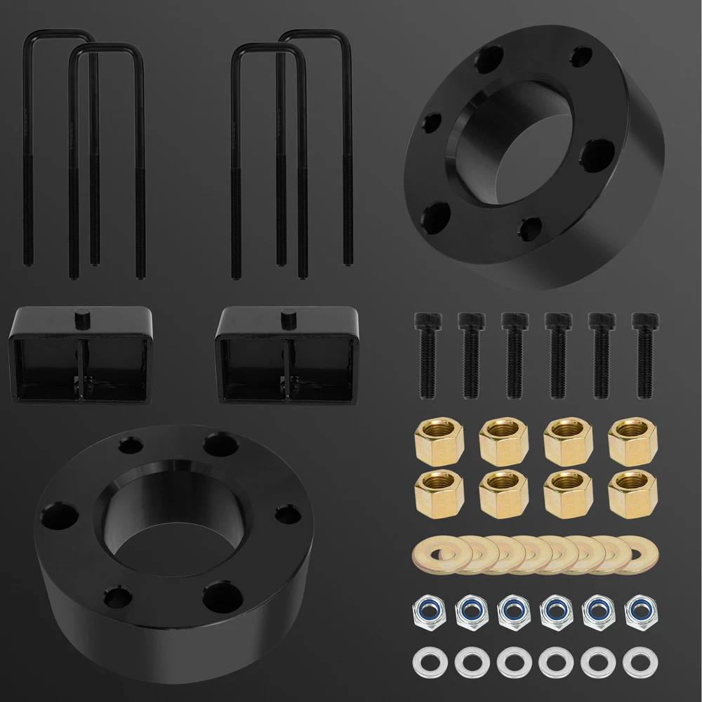Fitment Type: Direct Replacement Color: Black Ship from: CA gtin13: Does not apply Part Type: Suspension Lift Kit EAN: Does not apply Surface Finish: Corrosion / Oxidation Resistant Brand: Unbranded Drive: 2WD 4WD Manufacturer Part Number: Does not apply UPC: Does not apply Interchange Part Number: Chevrolet Silverado 1500; GMC Sierra 1500 Rear Thickness: 51mm Lift Height: 3" Front & 3" Rear Included Hardware: Mounting Hardware Quantity: 40 Front Thickness: 51.5mm Kit or Single Part: Kit Material: Aluminum Alloy Other Part Number: Suspension Lift Kit - Lift Front 3 inch; Rear 3 inch Note: Lift amount does NOT equal spacer thickness Placement on Vehicle: Front, Rear, Left, Right OE Spec or Performance/Custom: Performance/Custom