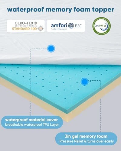 Return Policy Fast Delivery Trusted seller 3 Inch Gel Memory Foam Mattress Topper Queen Size,Waterproof Mattress Pad Cover for Pressure Relief, Bed Protector Topper with Removable ,Soft & Sleep Peacefully Product Description 【Deluxe Waterproof Mattress Cover】: The new waterproof layer makes the original mattress cover breathable, cool, durable and waterproof for more special situations. Zipper closure, easy to disassemble and wash, healthier sleep. 【Gel Memory Foam】:Provided by high-density memory foam and gel beads that provide good support while absorbing heat and cooling, helping to relieve common pressure points, prevent you from falling into the foam, and improve your sleep experience. 【Double Anti-Slip】:The back of the cover plate is evenly distributed with fine anti-slip particles, and four adjustable elastic bands are added to increase friction and prevent displacement. 【Satisfaction Guarantee】:We offer a 365 night 100% satisfaction . 10 -Year for Quality-Related Issues. If you have any question, please contact us and We will provide 100% satisfactory after-sales service. 【Warm Tips】:Due to vacuum packaging,Allow 24-48 hours for new foam smell to dissipate and fully expanded. Low temperature may need more time, find a suitable temperature(78℉) will shorten the time. Shipping Returns Payment Shipping Shipping is FREE to all addresses other than APO/PO boxes in the lower 48 states. All our stock ships from US-based warehouses. Shipped via USPS or UPS (depending on location and package weight) Unless stated otherwise, all orders will ship within 24-72 hours of your payment being processed. Check our feedback to see the great reviews of FAST shipping we offer. Returns Seller does not accept returns Payment We currently accept payment via eBay managed payments only. Once payment is cleared, we will dispatch your shipment within 1-3 business days. Please refer to the "Shipping" tab for more information regarding shipping speed to your destination.