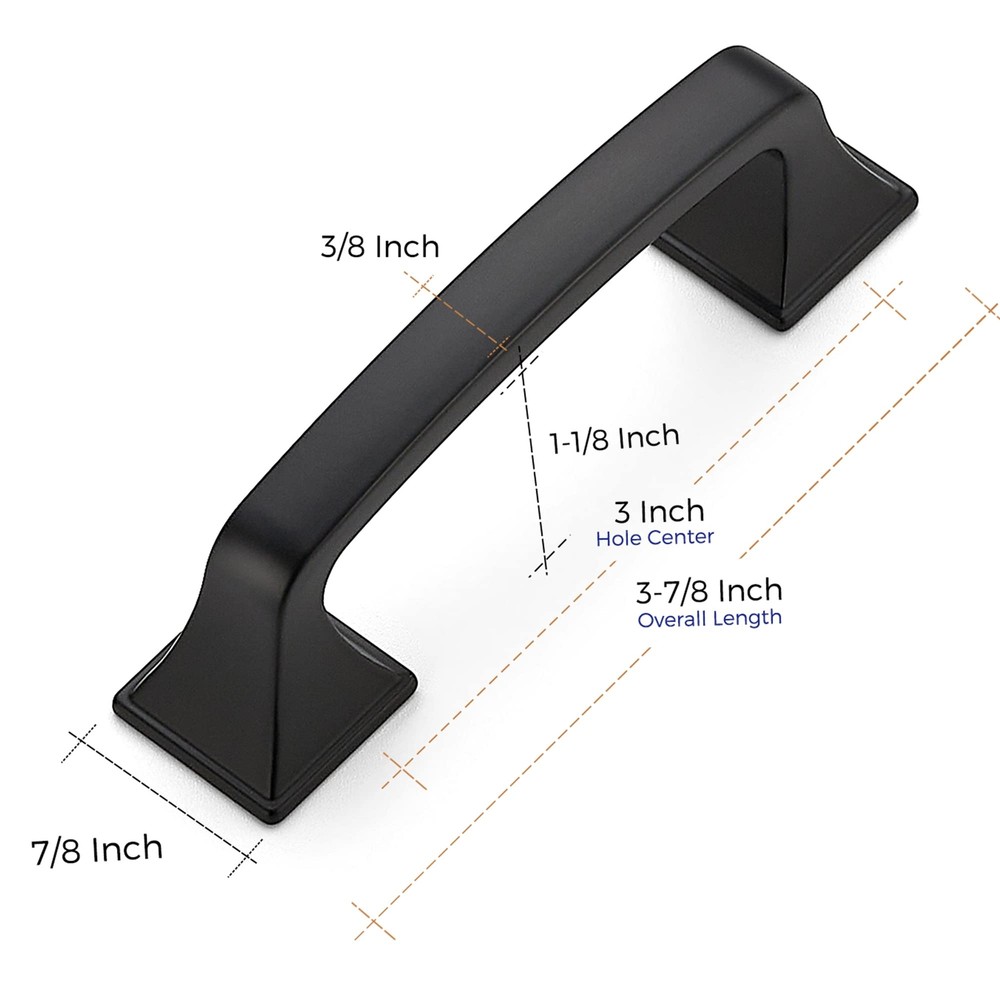 eBay Product Listing Welcome to Your Favorite My Store Your satisfaction is our top priority – Shop confidently Solid 3 Inch Big Square Foot Cabinet Pulls Matte Black Arch Pull Kitchen Cabinet Handles Black Drawer Pulls Kitchen Cabinet Hardware Flat Black Cabinet Drawer Handles-1 Pack Item Gallery Item Description 365 Days trail: We're confident you 'll love your handles,So we give you 365 days to try it on us. If you're replacing your handle, measure and ensure the center to center hole spacing of the current handle is 3 inches(76mm). Installing new cabinet handles, drill two holes with center to center spacing of 3 inches(76mm). Long-lasting Cabinet Pulls: 1 square hollow foot base and solid arch pulls are made of Zinc Alloy finished with classic matte black coordinates well with other appliances and accessoriess. Simple look: The matte black handles have a wide appeal across a range of kitchen cabinet doors and drawers. The black handles have a clean and timeless look that works with farmhouse, vintage, traditional and transitional styles. [MEASUREMENT]: Screw-hole center: 3 inch (76mm); Overall Length: 3-7/8 inch (98mm); Base Width: 7/8 inch (22mm); Projection: 1-1/8 inch (29mm). Special Features For over a decade, has always been committed to bringing the best home revitalization experience to our users for we deeply understand what does a beautiful and fashionable house mean to a whole family. The Euro-style cabinet handle finished provides an elegant modern flavor to your cabinet and even your whole room. Sleek appearance design coordinates with many decoration themes, and are proven to be functional and elegant through years of use. Zinc alloy handles can be used anywhere in the house to revitalize your kitchen or bathroom and provide any furniture updates. Cabinet handles in a coordinating design and finish with two mounting holes can also be applied in cabinet drawers and can be quick easy install. Screws included cabinet hardware revitalization with cabinet pulls is perfect for accenting the style of existing cabinets or furniture. Decoration with our cabinet handles provide you with great convenience to change look and feel of an entire room. Cabinet pulls sdds a distinguished look. The cabinet pulls elaborately crafted and designed to beautify your house with their simplicity. The cabinet pull is built to withstand over years of wear and tear. They have a nice weight to them and come individually wrapped to protect against any scratches. Our Guarantee To You We offer fast shipping, free delivery, and 100% customer satisfaction guarantee. Not satisfied? Return your item for free within 30 days. 30-Day Free Returns Shipping Details Items will be sent to your eBay address. Please verify before purchasing. Typical delivery within 3-7 business days. Professional shipping services used for all orders. We ship to the continental US (48 states only). Unable to deliver to Alaska, Hawaii, or territories. No APO/FPO or PO Box deliveries available. We use eco-friendly packaging Payment Options We accept these secure payment methods: All transactions securely processed through eBay's payment system. Simple Returns 30-Day Satisfaction Promise Contact us through eBay messages within 30 days of delivery. We'll provide return instructions and our address. Return the item in its original condition. We'll process your refund within 48 hours of receiving the item. Get In Touch Have questions about your order? Contact us through eBay messaging for prompt assistance. We typically respond within 24 hours.