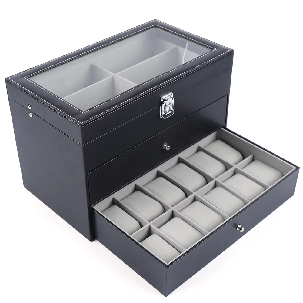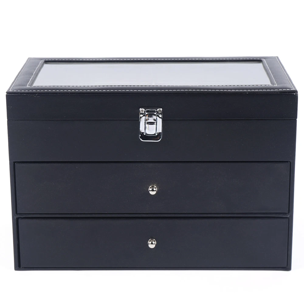Product Features: - High quality PU leather jewelry box with attractive appearance,simple structure,fine workmanship and sturdy construction - Metal Lock,Black High Grade PU Leather surface,Three levels,First and Second level includes 12 separate compartments to keep your sunglasses and glasses organized,Third level includes 12 removable velvet pillows - It's divided into plenty of unit space which are easy to clean and maintain,It will keep your watches and eyeglasses & sunglasses securely - This elegant jewelry case allows you to show your glasses and watch and other jewelry while protecting them away from dust,fingerprints,scratches and thieves 3 Layers Watch Display Box Jewelry Ring Organizer Case Sunglasses Storage Holder **Description of yybshop02** Product Features: - High quality PU leather jewelry box with attractive appearance,simple structure,fine workmanship and sturdy construction - Metal Lock,Black High Grade PU Leather surface,Three levels,First and Second level includes 12 separate compartments to keep your sunglasses and glasses organized,Third level includes 12 removable velvet pillows - It's divided into plenty of unit space which are easy to clean and maintain,It will keep your watches and eyeglasses & sunglasses securely - This elegant jewelry case allows you to show your glasses and watch and other jewelry while protecting them away from dust,fingerprints,scratches and thieves - Clear glass top gives you a open view and you can find your favorite treasure in seconds with this unique jewelry box.Perfect for home and business use,and a wonderful gift idea. Product Specification: - Material: High Grade PU Leather,Medium Density Fiberboard - Window: Glass - Color: Black - Product Dimensions (L x W x H): 13.38" x 7.48" x 8.66" (34 x 19 x 22 cm) First Tier: - Slot Size (L x W x H): 6.2" x 2.3" x 1.6" (15.7 x 5.8 x 4.1 cm) Second Tier: - Slot Size (L x W x H): 6.2" x 2.3" x 1.6" (15.7 x 5.8 x 4.1 cm) Third Tier: - Watch Slot Size (L x W x H): 3.1" x1.8" x 1.5" (8 x 4.5 x 3.8 cm); Pillow Size (L x W): 2.7" x 1.8" (7 x 4.5 cm) Packaging List: - 1 x Watch Display box - 12 x Removable Pillows **Description of yybshop02** Payment Delivery details Terms of sales About us Contact us Payment We accept ebay payment 。 Fees such as import duties, taxes are not included in the item price or shipping costs. These charges are the buyer's responsibility. Delivery details Shipping: 2-9 working days to: USA Terms of sales We maintain high standards of excellence and strive for hundred percent customer satisfaction. Feedback is very important to us. We hope that you contact us immediately before you give neutral or negative feedback, so that we can address your concerns. It is impossible to address issues if we do not know about them! About us Your satis faction is our ultimate goal. We work hard to earn your trust and future business. Our certified technicians have tested each item before shipping. The unit comes with 1 year limited warranty on all manufacturing defects. a) If you receive a defective item, you may return it or ask for a discount. Please contact us within 14 days after you receive the package. b) What you returned must be intact and in its original packaging as re? u. Customer is responsible for shipping costs of the returned item. c) We will cover the cost of shipping back t with the shipping rate indicated in the registration page. We will send you a new unit or refund the full payment you paid. Thank you. Contact us Business Hour Business Hour: Monday To Friday: 8:30 AM to 5:00 PM (Beijing China time) Due to time zones, our reply to your questions may not be immediately. But within above working time, we will reply your email within 24 hours. If it's non-workdays, please kindly be patient and wait till Monday. Please contact us with ebay message. Please feel free to contact us if you have any questions. Monday To Friday: 8:30 AM to 5:00 PM (Beijing China time) Due to time zones, our reply to your questions may not be immediately. But within above working time, we will reply your email within 24 hours. If it's non-workdays, please kindly be patient and wait till Monday. Please contact us with ebay message. Please feel free to contact us if you have any questions. Features1 stable performance,Durable Current Rating Does Not Apply MPN Does Not Apply EAN Does Not Apply Brand Unbranded modified item no ISBN Does Not Apply OE/OEM Part Number Does not apply MPN ( MPN ) n/a UPC Does Not Apply Material High Grade PU Leather,Medium Density Fiberboard Size 13.38" x 7.48" x 8.66" (34 x 19 x 22 cm) Type BOX Color Black Capacity More than 12 Watches