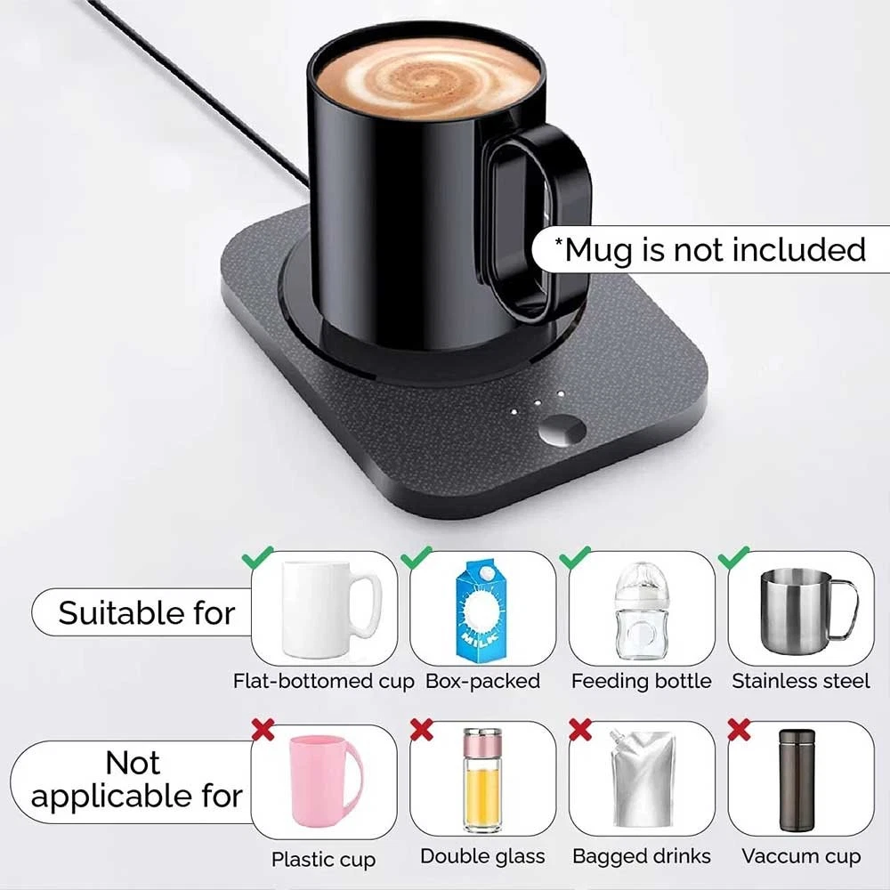 Product Description Description: 1. Easy to Use: Simply plug the cord, tap the switch and put your mug on. All set. Now the mug warmer will keep your drink warm to the last drop. This coffee warmer not only can slow down the cooling speed of hot beverage 2. Fast Heating: Just in 5 Minutes your Coffee/Water/Milk is going to be warm, 3. Smart Constant Temperature 131 F: Your coffee is always going to be Warm, The Ultimate coffee mug warmer bring to your tea/Milk/water constant temperature for 8 hours. 4. Waterproof Panel: We offer a water resistant product, most of regular warmers are not resistant and can be damaged easily. 5. USB- Charger: You can use this product conected with your Laptop or power adapter Features: 1. Simply plug the cord, tap the switch and put your mug on. 2. Just in 5 Minutes your coffee/water/milk is going to be warm, constant 55℃ for 8 hours. Three levels of adjustable temperature, the first level is 50°C, the second level is 55°C, and the third level is 60°C. 3. Can be connected to mobile power, laptop, convenient for outdoor use. 4. Small size, easy to carry. 5. With automatic power-off protection, if there is no operation for 8 hours, it will automatically power off and stop heating. 6. Waterproof tempered glass panel to prevent leakage. With non-slip silicone pad on the bottom, it can be placed firmly on the table. Specification: Colour: Black,White Material: ABS,TemperedGlass Rated Power: 15W USB: DC5V-1A/2A Touch Switch: Three-Speed Temperature Adjustment (50°C, 55°C, 60°C) Package Included: 1x Mini Cup Warmer 1x USB Cable Shipping Returns Contact Us Feedback 1.We will ship to your eBay address. Please make sure your eBay address is correct before you pay. 2. We will ship out your order from warehouse within 3 business days after receiving your verified payment (Excluding Weekends and Public Holidays)! 1.If you are not satisfied with our products. Please kindly contact us before you open the return request. We provides 30 days Money Back or Exchangement Warranty. 2.Please Kindly contact us for the RMA No.and address before returning the item back. 1. Please contact us if you are not satisfied with the item after receive it. Just contact us using the " Ask the seller a question" link on eBay. 2.All replies will be sent to your email, if you don't get response within 1-2 business days, pls check your My messages' in case your email provider has an overly-aggressive spam filterblocking eBay's emails. Please email us AGAIN.Thanks 1. Feedback will be left automatically after we receive your feedback. 2. Please contact us before leaving a neutral or negative feedback. We would try our best to help you solve the problem. Please allow us to reply your email within 24 hours. 3.We will provide the service as best as we can, cause the feedback and is what we are striving for. Please email me through "My Messages" or "Contact seller" if you have any question about our listings or your purchasing. Shipping 1.We will ship to your eBay address. Please make sure your eBay address is correct before you pay. 2. We will ship out your order from warehouse within 3 business days after receiving your verified payment (Excluding Weekends and Public Holidays)! Returns 1.If you are not satisfied with our products. Please kindly contact us before you open the return request. We provides 30 days Money Back or Exchangement Warranty. 2.Please Kindly contact us for the RMA No.and address before returning the item back. Contact Us 1. Please contact us if you are not satisfied with the item after receive it. Just contact us using the " Ask the seller a question" link on eBay. 2.All replies will be sent to your email, if you don't get response within 1-2 business days, pls check your My messages' in case your email provider has an overly-aggressive spam filterblocking eBay's emails. Please email us AGAIN.Thanks Feedback 1. Feedback will be left automatically after we receive your feedback. 2. Please contact us before leaving a neutral or negative feedback. We would try our best to help you solve the problem. Please allow us to reply your email within 24 hours. 3.We will provide the service as best as we can, cause the feedback and is what we are striving for. Please email me through "My Messages" or "Contact seller" if you have any question about our listings or your purchasing. You may also like 3000W AC 220V Stainless Steel Heating Element Electrical Water Heater Tube 1"BSP 31.28 USD Free shipping New Shaking Wooden Man Figure Decoration with 12 Magnetic Expressions 18.41 USD Free shipping 2000W AC 220V Stainless Steel Heating Element Electrical Water Heater Tube 1"BSP 26.44 USD Free shipping 128Hz Tuning Fork+Hammer Kit Musical Instrument Vibration Sound Therapy Healing 15.91 USD Free shipping Dipping Sauce Plate and Holder Set, 6Pcs Plastic Dipping Dish with Storage Box 16.24 USD Free shipping Universal Anti-Slip Aluminum Alloy Sleeve Cover for Car Parking Handbrake 20.01 USD Free shipping Clip-On Chromatic Tuner Ideal for Electric Guitars Acoustic Guitars Bass Violins 17.5 USD Free shipping GT/FG/PR Model Electric Knotter Fishing Line Knotting Machine 21.09 USD Free shipping 12V Motorcycle SAE to USB Dual Port Charger Voltmeter Cable Adapter Waterproof 25.49 USD Free shipping 12V DC Electric Water Pump Faucet with Switch - for Boat, Caravan, Motorhome, RV 34.49 USD Free shipping Undetectable Mechanical Mouse Mover with Auto-Click & Timer 28.9 USD Free shipping Personal Panic Defence Alarm For Jogger Child Elderly Very Loud 120 - 130 db 17.05 USD Free shipping Foot Dimmer Switch Full Range Inline Slide Control for Floor Lamp / CFL light 25.13 USD Free shipping Military Retro PU-Leather Strap Watch Men Punk Quartz Cuff Watch Wristwatch 24.01 USD Free shipping Heavy Duty Door Gate Closer Spring Fire Rated Outdoor Automatic Surface Mount 21.31 USD Free shipping Professional Latex Paint Edger Brushes Wall Ceiling Corner Painting Brush Hemper 16.5 USD Free shipping 2PC Led Eyes for Ca
