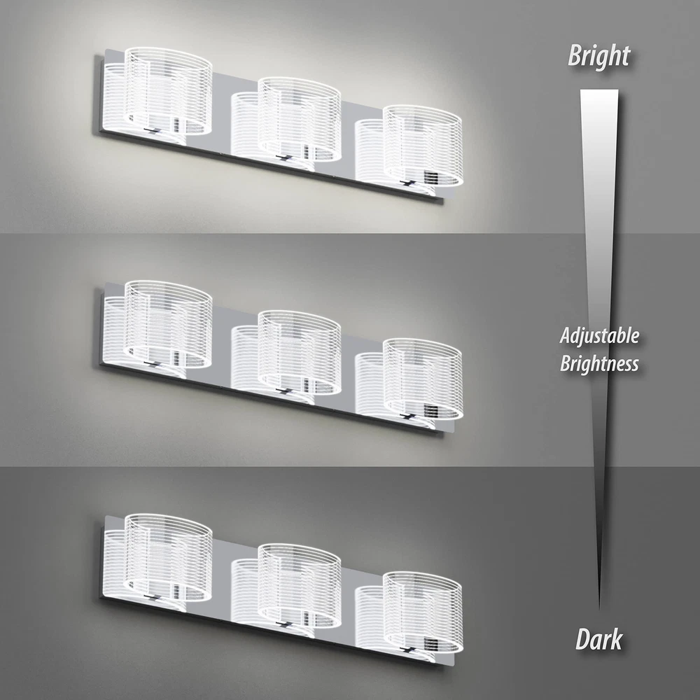 3 Light LED Bathroom Lighting Fixtures Over Mirror 24 inch, Chrome Finish Dim...