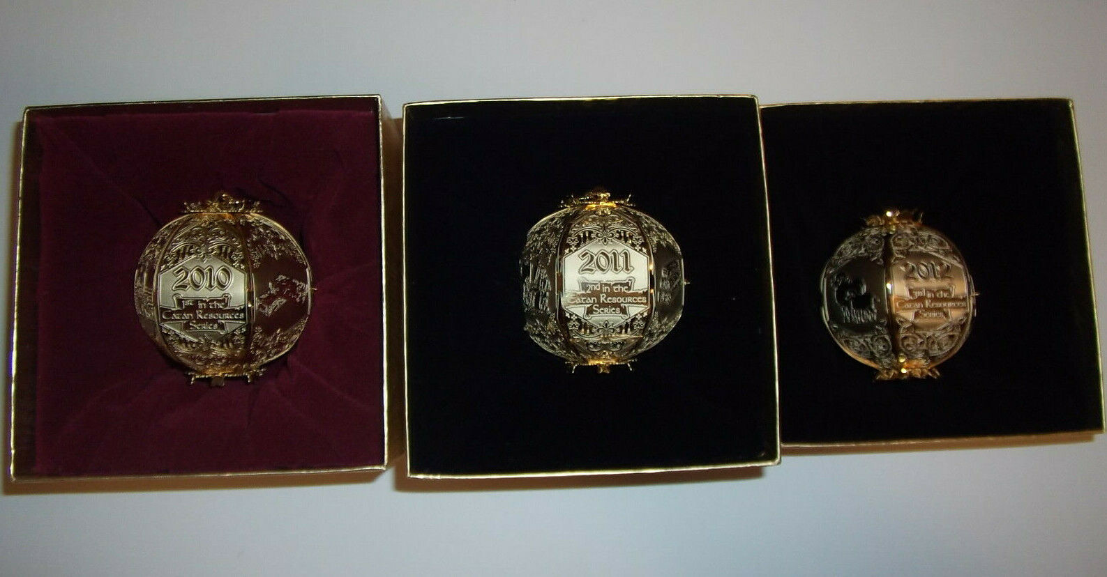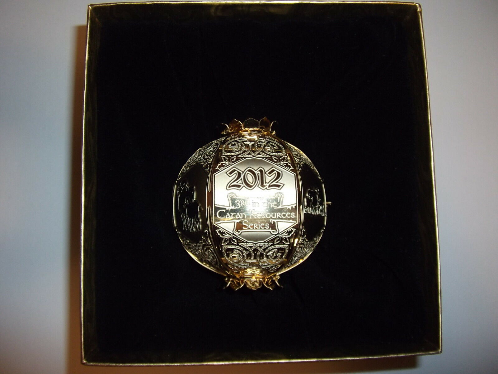 3 NEW SETTLERS OF CATAN Cut Brass Ornaments Mayfair Games WHOLESALE LOTS MIB NIB Packaged in deluxe presentation boxes, these stunning brass ornaments are sure to delight Catan fans and collectors. Each ornament features the Mayfair Games and Catan logos, with scenes during the production of these resources: 2010 BRICK (1st in the Catan Resources Series) 2011 WOOD (2nd in the Catan Resources Series) 2012 SHEEP (3rd in the Catan Resources Series) SHIPPING $4.99 USPS Economy Mail. BUY MORE AND SAVE MORE! EXCELLENT BIRTHDAY & HOLIDAY PRESENTS!