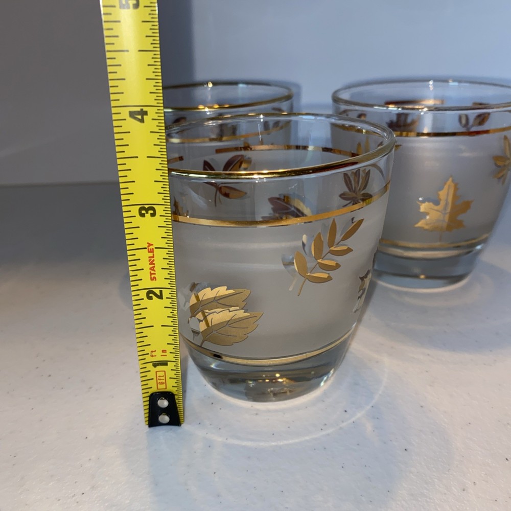 3 Old Fashioned VTG MCM Libbey Frosted Golden Foliage Short Glasses