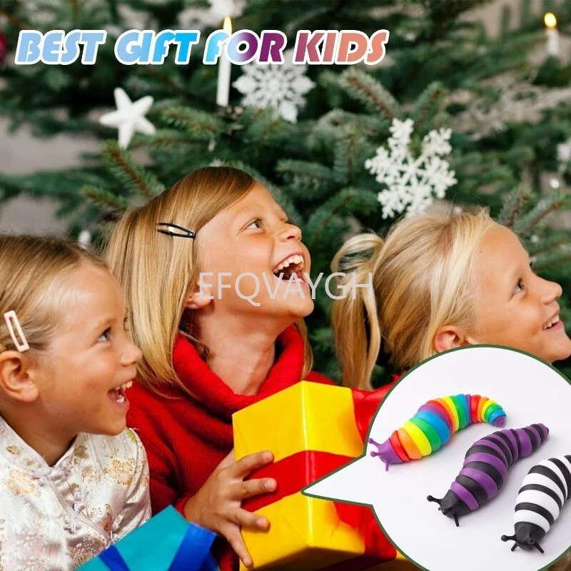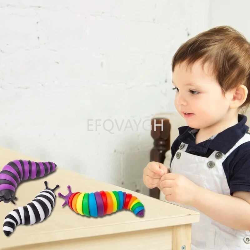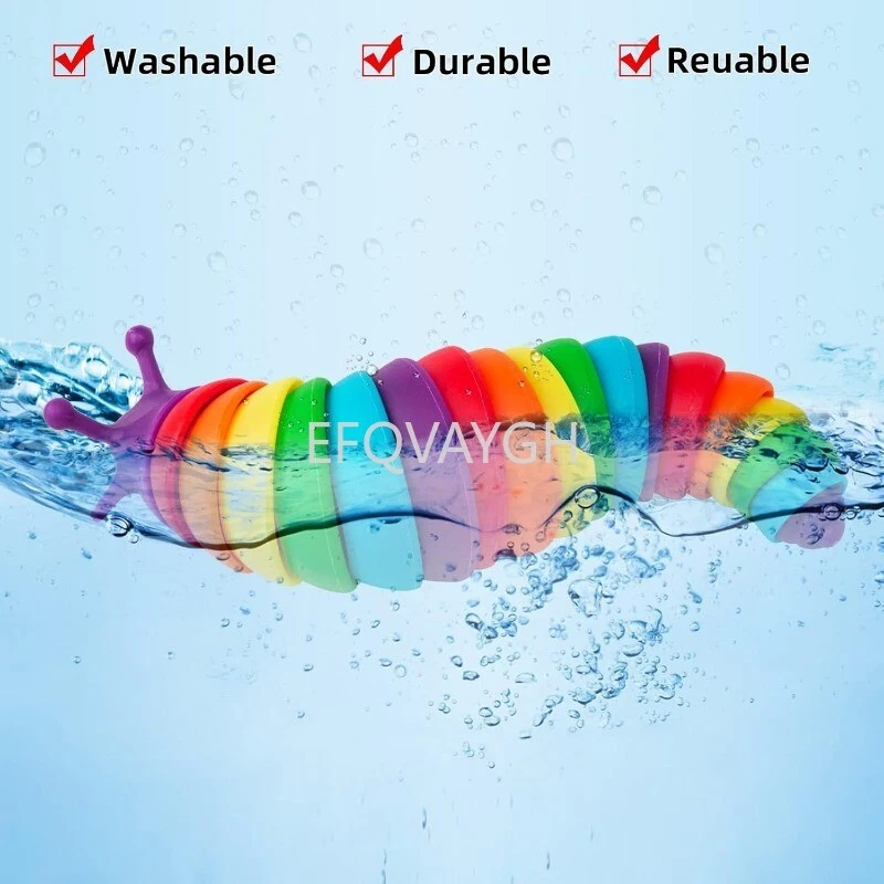 Product description The funny fidget slug articulating stim toy help you relieve stress and restore the mood.Kids' bath toys. Easy to Carry Anywhere,Durable,Washable and Portable. NEW DESIGN & HIGH-QUALITY MATERIAL. Package includes: 3 x fidget slug. Color : Black+white, purple+black,rainbow. Material: ABS. Size: 5.5 x 1.5 x 1.5 inches. Note: Due to different monitors and lighting effects, the actual color may be slightly different from the picture color.