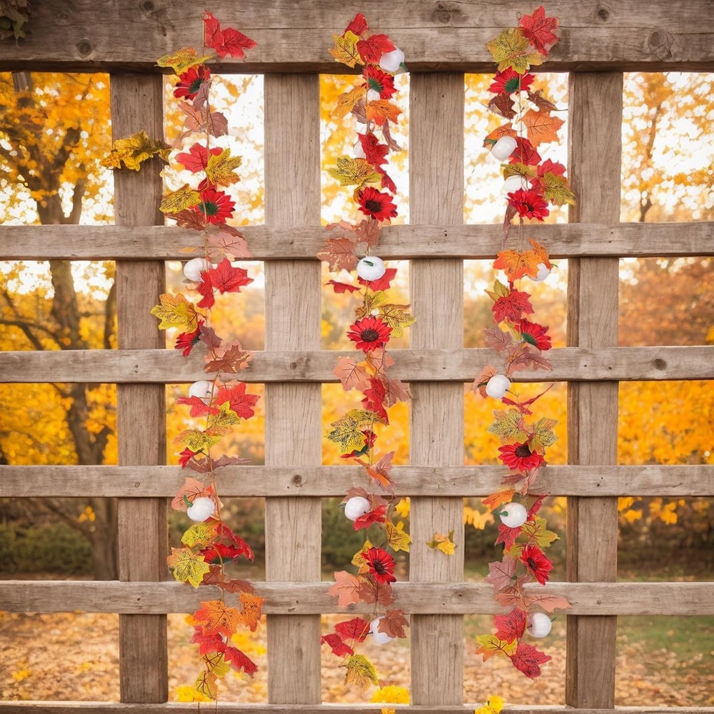 3 Pack Fall Garland for Mantle - 5.6Ft Artificial Maple Vine with Red&white LuxeFusion Product Description Features 【Premium Fall Garland - 3-Pack Set for Mantle & Fireplace】 Includes three 5.6ft artificial maple vines. Each has 44 realistic maple leaves (3.5-4"), 6 mini pumpkins (2.4"), 6 sunflowers (4"). Weight: 4.7oz/garland. 【Versatile Decor - Autumn Leaf Garland for Indoor & Outdoor】 Perfect for fireplace mantles, stair railings, and porch columns. Transitions seamlessly between Halloween pumpkins and Thanksgiving sunflowers. 【Realistic Detailing - Fake Vine Garland with Natural Look】 Features fade-resistant fabric leaves with authentic veining and bendable stems that hold their shape. Weatherproof for outdoor use. 【Multi-Purpose Use - Fall Home Decoration for All Spaces】 Create harvest displays by draping as table runners, window valances, or wedding arch decorations. Coordinates with farmhouse style. 【Ready-to-Use - No Assembly Fall Garland Set】 Pr-assembled design requires no tools - simply unbox and arrange for instant seasonal charm. Product Details Manufacturer: Elecxlink Package Dimensions: 8.5 x 8.46 x 5.98 inches Item Weight: 1.04 pounds Country of Origin: China Item model number: Red&White Brand: Elecxlink Color: Red&white Material: Fabric Is Lighted: No Shape: Runner Free Shipping All orders ship free and fast to your doorstep. Easy Returns Satisfaction guaranteed. 30-day returns, no questions asked. 24/7 Support Contact us anytime; we’re here to help, day or night. Brought to you by LuxeFusion – Quality you can trust.