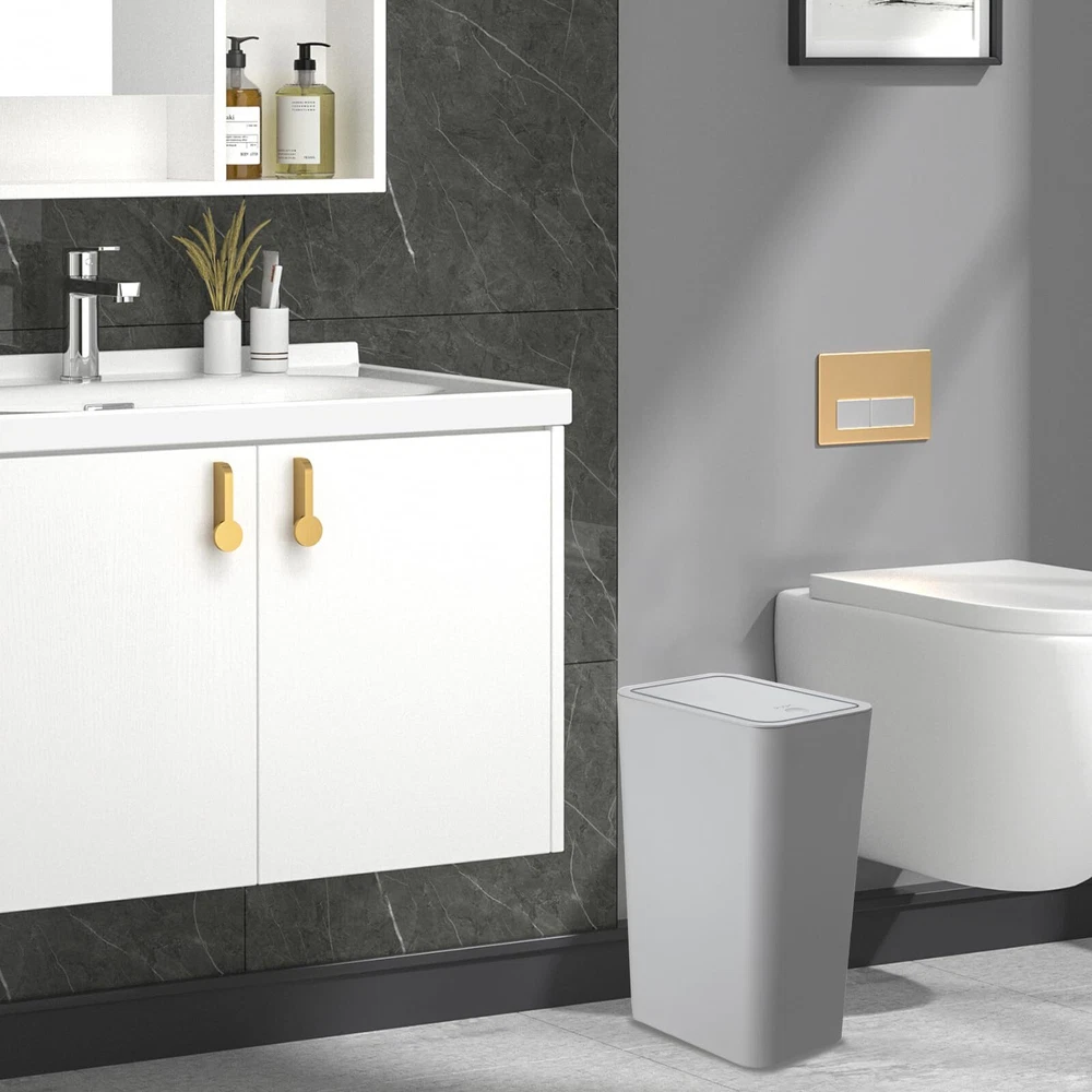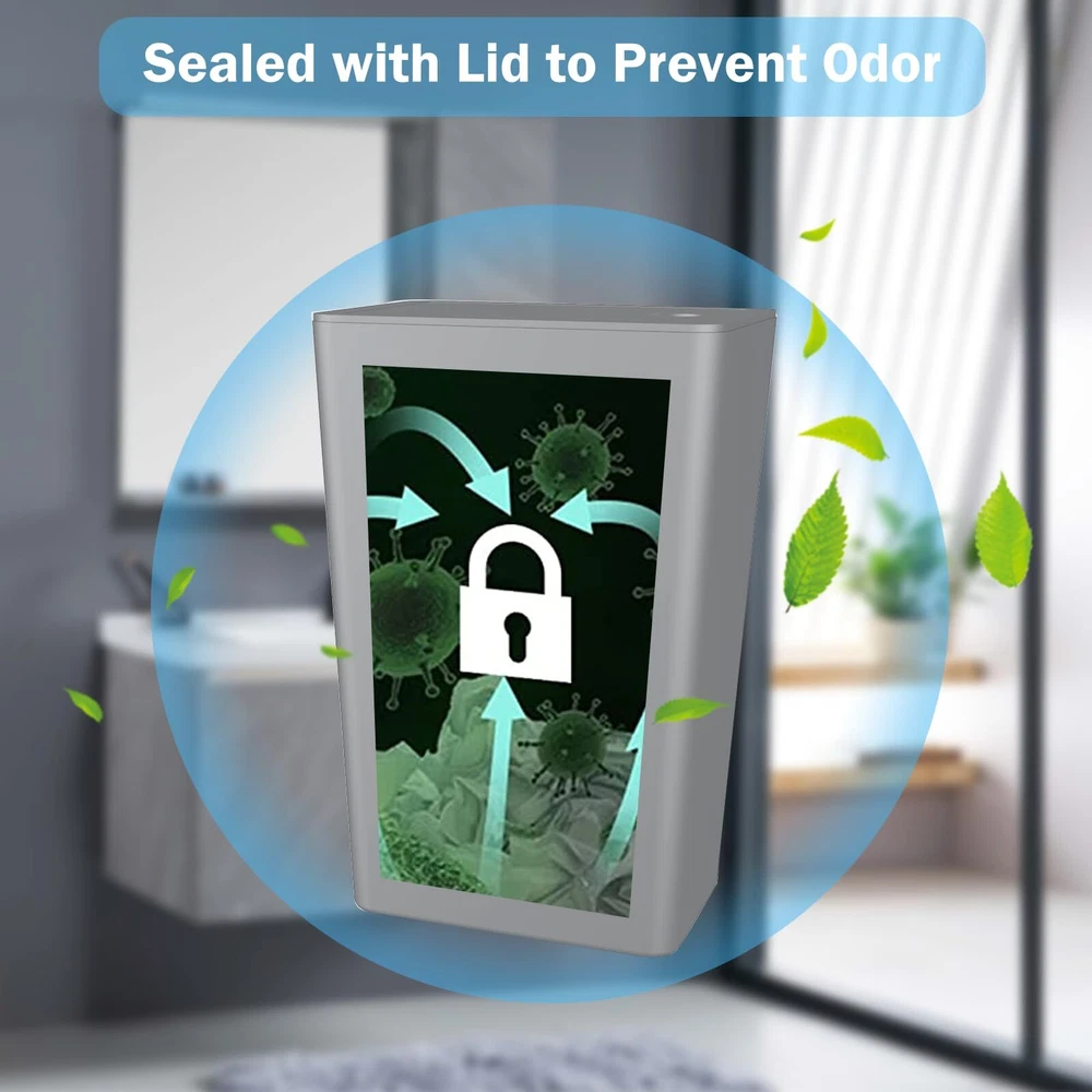 MAXIMIZE YOUR SPACE- AIDMTONG our ultra-slim and narrow 3-pack bathroom trash can is designed to fit into tight spaces, such as small kitchens, bedrooms, and bathrooms. Measuring 9.4*6.3*11.6 inches, our small garbage can is the perfect size for tight spaces. KEEP YOUR SPACE FRESH- The secure press lid keeps pets out of the trash and traps smell inside, ensuring your space always smells fresh and clean. EASY TO CLEAN- Made from high-quality, 100% recyclable ABS materials, our small slim garbage bin is easy to clean and maintain. VERSATILE AND PRACTICAL- Whether you need a small bin for your bathroom, bedroom, or office, our 2.6-gallon wastebasket is a perfect choice. It's lightweight and easy to move, so you can use it wherever necessary. STYLISH DESIGN- Our trash can's sleek and contemporary design adds a touch of style to any room. CUSTOMER SATISFACTION- We stand behind our product and offer friendly . Please feel free to us with any questions.