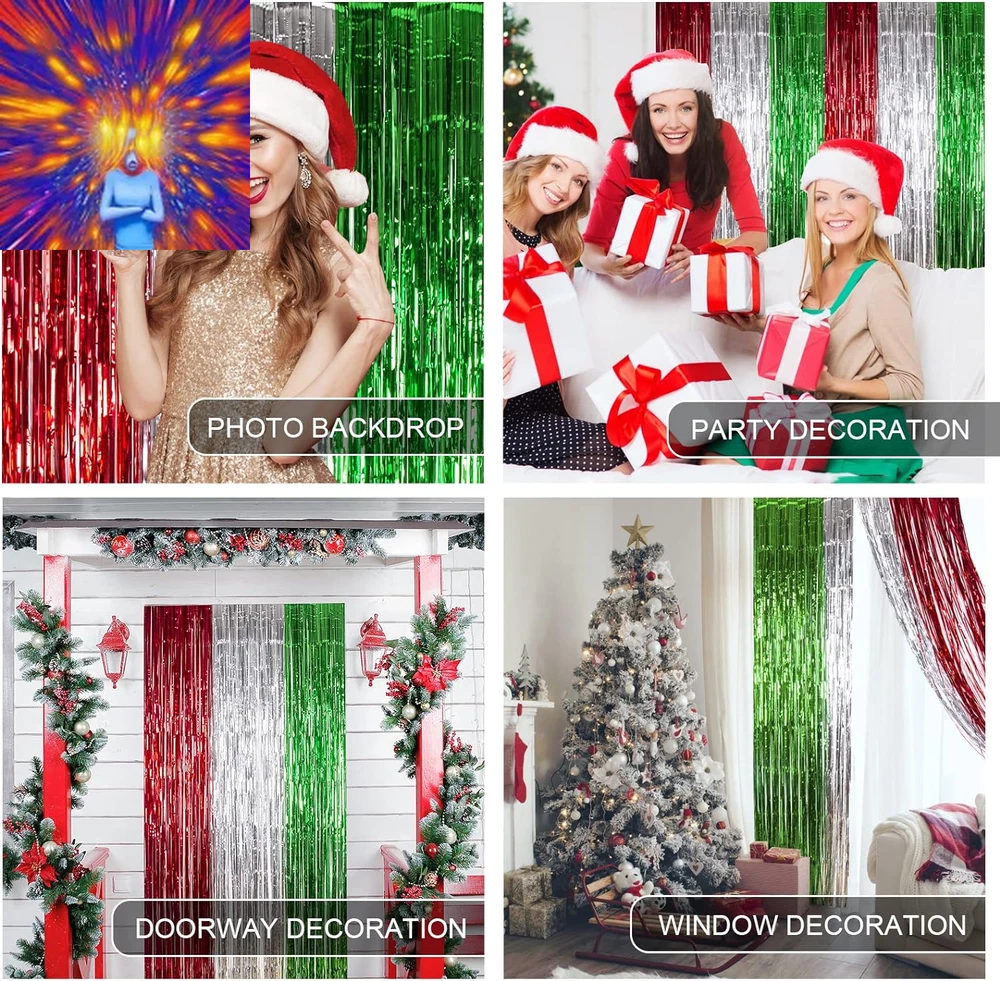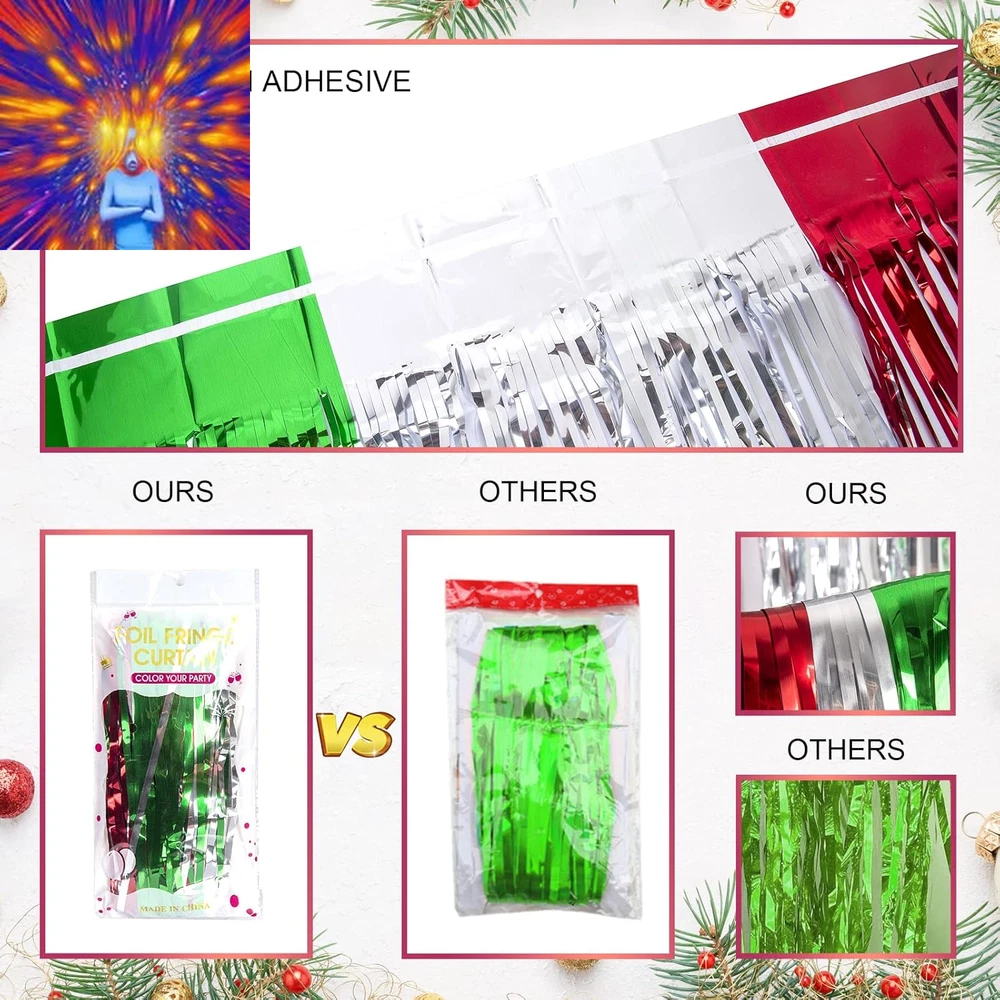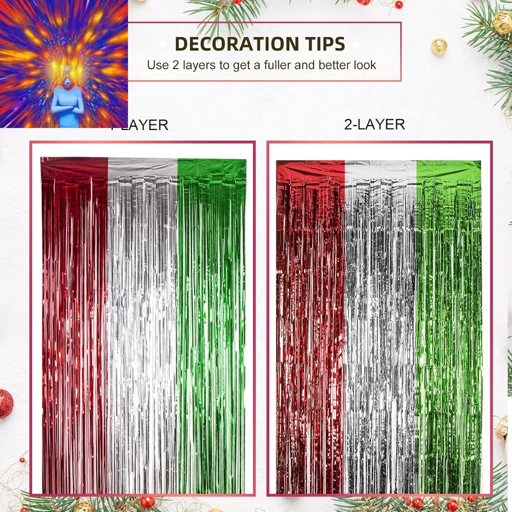 Store New Arrivals Add to Favorite View Feedback Contact 3 Pack Christmas Foil Fringe Curtains Christmas Party Decoration 3.3 X 6.6 Ft Red Silver Green Tinsel Fringe Party Photo Backdrop Streamer Backdrop for Christmas, New Year, Ugly Sweater Party Description Item model number Christmas Foil curtains 3 Number of pieces 3 Batteries required No Product Dimensions 79.2 x 39.6 x 0.04 inches Item Weight 240 Grams Color Red Silver and Green Occasion Christmas Size 9.9 x 6.6 ft (3 Pack) Included Components 3 Pack of Christmas Photo Backdrops CHRISTMAS PARTY DECORATION: 3 packs of Christmas-themed red silver and green foil fringe curtains, size (width x drop) 3.3 x 6.6 ft each, perfect for Christmas party, New Year's Eve party, Friendsmas party, Ugly sweater party, and general party decorations. PREMIUM TINSEL MATERIAL: Our Christmas foil fringe curtain is made of tinsel with a shiny surface and lightweight and durable metallic fringe curtains. They are good toughness, unbreakable, and can use for a long time. EASY TO APPLY: Tear off double-sided adhesive tape, then paste the fringe curtain on the top of your desired location, suitable for the doorway, window, wall, living room, and stage background decorations. CHRISTMAS PARTY PHOTO BACKDROP: Our beautiful tinsel foil fringe curtains are the perfect photo backdrop for the Christmas party, New Year's Eve party, Friendsmas party, and Ugly sweater party, you will be amazed at the new atmosphere and view they create. WIDELY APPLICATIONS: These red silver and green foil fringe curtains backdrop are a wonderful finishing touch for any party such as a Christmas carnival party, New Year's Eve party, Friendsmas party, Ugly sweater party, birthday party, anniversary party, wedding party, engagement party, graduation party decorations, they are also suitable for photo backdrop, stage background, disco, baby shower, bridal shower, etc. Product Description CHRISTMAS PARTY DECORATIONS FEATURES Shiny and beautiful tinsel foil fringe curtains are perfect for Christmas parties, New Year's Eve parties, Ugly sweater parties, birthday parties, and anniversary party photo backdrops at the least cost. TIPS FOR USE You can cut the tinsel by scissors into the suitable Length and width for your party use. 3 packs of the curtains side by side to make the backdrop larger, or layer the 2 pack curtains to achieve a thicker and denser effect. CHRISTMAS PHOTO BACKDROP The video showcases the product in use. The video guides you through product setup. The video compares multiple products. The video shows the product being unpacked. CHRISTMAS FOIL FRINGE CURTAINS Add to Cart Add to Cart Add to Cart Add to Cart Add to Cart Add to Cart Add to Cart Customer Reviews 4.4 out of 5 stars 133 4.7 out of 5 stars 24 4.5 out of 5 stars 31 4.8 out of 5 stars 39 4.5 out of 5 stars 138 4.0 out of 5 stars 325 3.9 out of 5 stars 284 Price $9.99 $ 9 . 99 $13.99 $ 13 . 99 $13.99 $ 13 . 99 $13.99 $ 13 . 99 $13.99 $ 13 . 99 $22.99 $ 22 . 99 $23.99 $ 23 . 99 COLOR Red White and Green Red White and Green Red White and Green Red White and Green Red Multicolor Red Green and White THEME Christmas Christmas Christmas Christmas Christmas Christmas Christmas MATERIAL Aluminum Foil Aluminum Foil Aluminum Foil Aluminum Foil Aluminum Foil Plastic & LED Plastic & LED OCCASION Christmas Decoration Christmas Decoration Christmas Decoration Christmas Decoration Christmas Decoration Christmas Decoration Christmas Decoration APPLICATION Party Decor Party Decor Party Decor Party Decor Party Decor Christmas Window Decoration Christmas Window Decoration ABOUT US We offer the best prices around on high quality products. Our E-store includes media such as books, movies, music and games while offering electronics, toys, sporting apparel, clothing, tools, general home, garden items and more. SHIPPING We are always working hard to ensure your package arrives as soon as possible. Please understand that some factors like weather, high postal traffic, and the performance of shipping companies are outside of our control. We offer free shipping to the lower 48 states and ship within 2 business days of payment, usually sooner. We do not accept P.O. Boxes. Please provide a physical address. For shipping outside of the continental USA, we only use eBay's Global Shipping Program.The item is shipped to KY and then sent to the rest of the world. International customers are responsible for all duties and taxes. Continue to check out in order to calculate costs for shipping the item to your country. Messages regarding eBay's Global Shipping Program MUST be directed at eBay EXCLUSIVELY. RETURNS We offer a 30-Day Return Policy on items which you are not completely satisfied with. You have the option for a full-refund or an exchange of the item. No returns are available on items shipped outside of the USA. PAYMENT We accept PayPal. CONTACT US This page content is yet to come Please ad us to your favorite seller and visit again later Thank You CUSTOMER SATISFACTION We try our very best to make sure every customer is completely satisfied. If there's a problem, message us! We're happy to help. WE ACCEPT