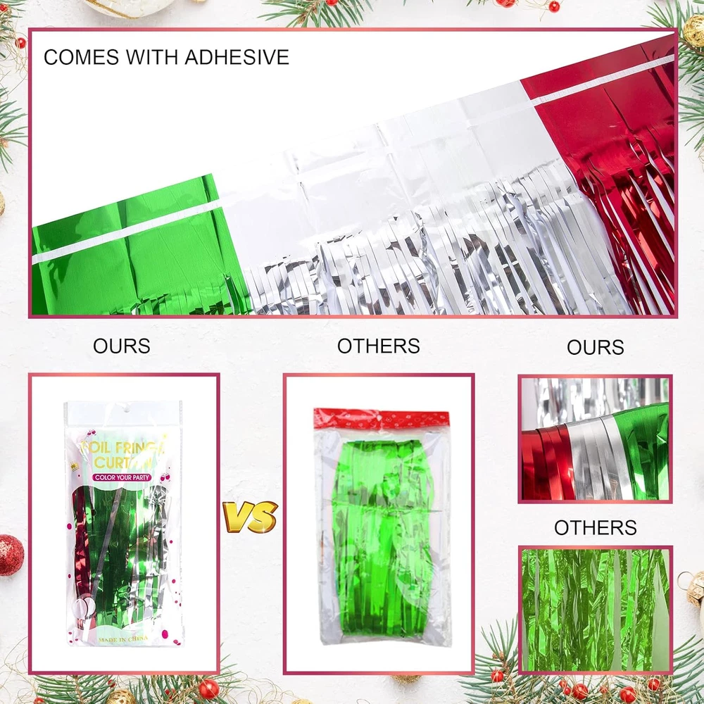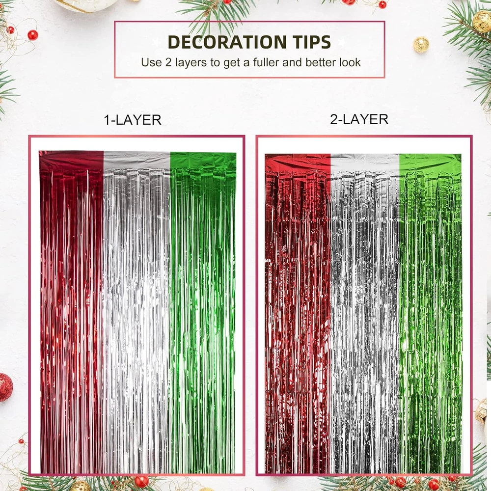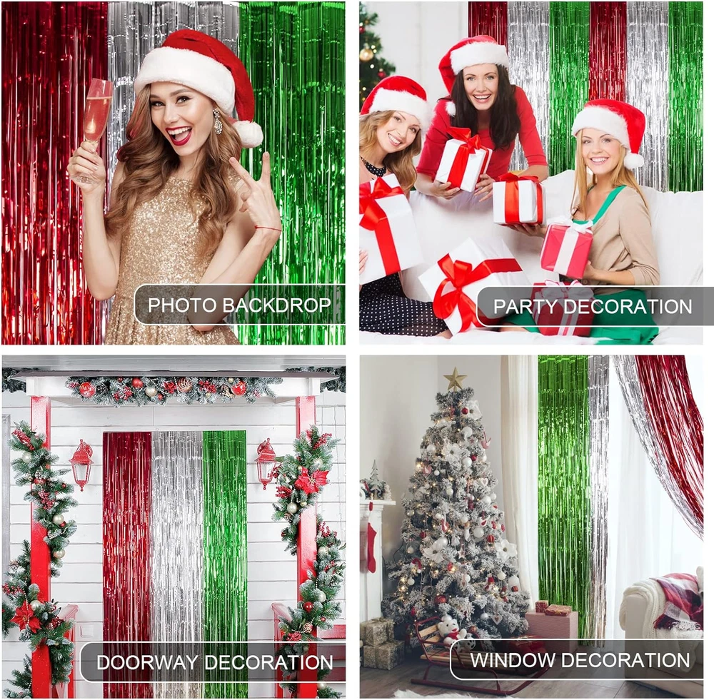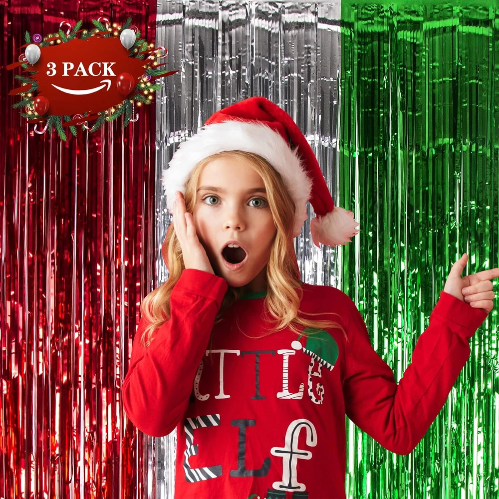 Store New Arrivals Add to Favorite View Feedback Contact Fast deliveries to the customer's home Quality customer service John Make the customers happy! 3 Pack Christmas Foil Fringe Curtains Christmas Party Decoration 3.3 X 6.6 Ft Red Silver Green Tinsel Fringe Party Photo Backdrop Streamer Backdrop for Christmas, New Year, Ugly Sweater Party Description CHRISTMAS PARTY DECORATION: 3 packs of Christmas-themed red silver and green foil fringe curtains, size (width x drop) 3.3 x 6.6 ft each, perfect for Christmas party, New Year's Eve party, Friendsmas party, Ugly sweater party, and general party decorations. PREMIUM TINSEL MATERIAL: Our Christmas foil fringe curtain is made of tinsel with a shiny surface and lightweight and durable metallic fringe curtains. They are good toughness, unbreakable, and can use for a long time. EASY TO APPLY: Tear off double-sided adhesive tape, then paste the fringe curtain on the top of your desired location, suitable for the doorway, window, wall, living room, and stage background decorations. CHRISTMAS PARTY PHOTO BACKDROP: Our beautiful tinsel foil fringe curtains are the perfect photo backdrop for the Christmas party, New Year's Eve party, Friendsmas party, and Ugly sweater party, you will be amazed at the new atmosphere and view they create. WIDELY APPLICATIONS: These red silver and green foil fringe curtains backdrop are a wonderful finishing touch for any party such as a Christmas carnival party, New Year's Eve party, Friendsmas party, Ugly sweater party, birthday party, anniversary party, wedding party, engagement party, graduation party decorations, they are also suitable for photo backdrop, stage background, disco, baby shower, bridal shower, etc. Product Description CHRISTMAS PARTY DECORATIONS FEATURES Shiny and beautiful tinsel foil fringe curtains are perfect for Christmas parties, New Year's Eve parties, Ugly sweater parties, birthday parties, and anniversary party photo backdrops at the least cost. TIPS FOR USE You can cut the tinsel by scissors into the suitable Length and width for your party use. 3 packs of the curtains side by side to make the backdrop larger, or layer the 2 pack curtains to achieve a thicker and denser effect. CHRISTMAS PHOTO BACKDROP The video showcases the product in use. The video guides you through product setup. The video compares multiple products. The video shows the product being unpacked. CHRISTMAS FOIL FRINGE CURTAINS Add to Cart Add to Cart Add to Cart Add to Cart Add to Cart Add to Cart Add to Cart Customer Reviews 4.4 out of 5 stars 133 4.7 out of 5 stars 24 4.5 out of 5 stars 31 4.8 out of 5 stars 39 4.5 out of 5 stars 138 4.0 out of 5 stars 334 3.9 out of 5 stars 285 Price $9.99 $ 9 . 99 $13.99 $ 13 . 99 $13.99 $ 13 . 99 $13.99 $ 13 . 99 $13.99 $ 13 . 99 $23.99 $ 23 . 99 $23.99 $ 23 . 99 COLOR Red White and Green Red White and Green Red White and Green Red White and Green Red Multicolor Red Green and White THEME Christmas Christmas Christmas Christmas Christmas Christmas Christmas MATERIAL Aluminum Foil Aluminum Foil Aluminum Foil Aluminum Foil Aluminum Foil Plastic & LED Plastic & LED OCCASION Christmas Decoration Christmas Decoration Christmas Decoration Christmas Decoration Christmas Decoration Christmas Decoration Christmas Decoration APPLICATION Party Decor Party Decor Party Decor Party Decor Party Decor Christmas Window Decoration Christmas Window Decoration Item model number Christmas Foil curtains 3 Number of pieces 3 Batteries required No Product Dimensions 79.2 x 39.6 x 0.04 inches Item Weight 240 Grams Color Red Silver and Green Occasion Christmas Size 9.9 x 6.6 ft (3 Pack) Included Components 3 Pack of Christmas Photo Backdrops ABOUT US We offer the best prices around on high quality products. Our E-store includes media such as books, movies, music and games while offering electronics, toys, sporting apparel, clothing, tools, general home, garden items and more. SHIPPING We are always working hard to ensure your package arrives as soon as possible. Please understand that some factors like weather, high postal traffic, and the performance of shipping companies are outside of our control. We offer free shipping to the lower 48 states and ship within 2 business days of payment, usually sooner. We do not accept P.O. Boxes. Please provide a physical address. For shipping outside of the continental USA, we only use eBay's Global Shipping Program. The item is shipped to KY and then sent to the rest of the world. International customers are responsible for all duties and taxes. Continue to 'check out' to calculate costs for shipping the item to your country. Messages regarding eBay's Global Shipping Program MUST be directed at eBay EXCLUSIVELY. RETURNS We offer a 30-Day Return Policy on items in which you are not completely satisfied with. You have the option of a full-refund or an exchange of the item. No returns are available on items shipped outside of the USA PAYMENT We accept PayPal. CONTACT US This page content is yet to come Please ad us to your favorite seller and visit again later Thank You CUSTOMER SATISFACTION We try our very best to make sure every customer is completely satisfied. If there's a problem, message us! We're happy to help. WE ACCEPT