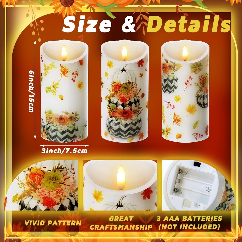 Exclusive eBay Product Listing Welcome to Your Favorite My Store! Your satisfaction is our top priority – Shop confidently! 3 Pack Thanksgiving Fall Flameless LED Candles with Remote Blue Pumpkin Battery Operated Real Wax Black and White Autumn Candles Thanksgiving Decor Gift(Rustic Style) Product Details Features: Exquisite gifts: These flameless candle lights are enough practical and delicate as presents for you to send your family, friends, co works, neighbors and so on, which can show your personal taste and enhance relationship between you. Bright decorations: These LED flickering candles are designed with distinctive decals, vibrant and attractive, can serve as decorations for your tables, home and so on, eye catching and useful. Specifications: Material: paraffin wax Color: mainly black and white Size: 3 inch/ 7.5 cm in diameter, 6 inch/ 15 cm in height Package includes: 3 x Flickering candles (batteries are not included) Notes: Manual measurement, please allow slight errors on size. The color may exist a slight difference due to different screen displays. Why Choose This Product? Package Information: you will receive 3 pieces of fall pumpkin flickering candles, sufficient quantity can satisfy your using and decoration needs, and you can share them with others Suitable Size for Decoration: our battery operated candles measure about 3 inch/ 7.5 cm in diameter, 6 inch/ 15 cm in height, which is an ideal size for decoration, decorating your home, compact but eye catching, and which can emit enough light, add your home or party more festival atmosphere Quality and Safe: the LED candles are made of quality odorless paraffin wax, cream color; These candles need to use 3 AAA batteries to light up, which is safer than traditional candles, not easy to drip wax, and will not burn, and no need to worry about falling asleep without blowing out the candle; Warm note: batteries are not included in our package Creative Fall Designs: these autumn home decorations are designed as three different autumn theme decals, composed of black and white pumpkins, look delicate and attractive, elegant and charming, adding a warm feeling to your family gatherings Rich Usage Scenarios: the battery flicking candle can be applied for decorating parties, add strong festival atmosphere, and can also be decorated at home, such as living room, dining room, bedroom, doorway, to surprise and impress your guests Shipping Terms We ship only to addresses provided by eBay. Please verify your shipping details before confirming your order. Orders ship within 1-2 business days, arriving typically within 3-7 business days. Shipping is available exclusively within the contiguous United States. No shipping to Alaska, Hawaii, Puerto Rico, or PO Boxes. Return & Satisfaction Guarantee Returns accepted within 30 days from receipt. Items must be in original packaging and condition for full refunds. If the product arrives damaged or incorrect, please contact us immediately through eBay messaging. Accepted Payments We accept payments securely via PayPal and major credit cards through eBay. Get in Touch For questions or assistance, contact us through eBay messaging. We respond within 24-48 hours.