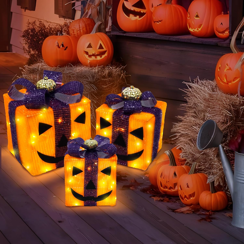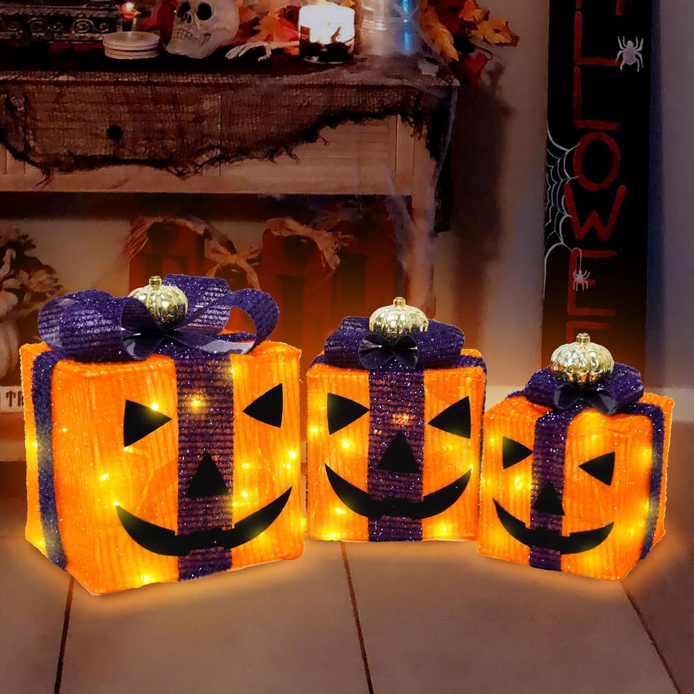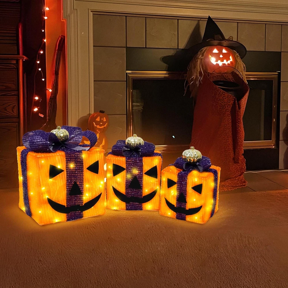 Country of Origin: China Number of Light Sources: 3 Color: orange Recommended Uses For Product: Indoor Home Decor, Outdoor Lighting Decor Item dimensions L x W x H: 1 x 1 x 1 inches UPC: 7445027464481 Number of Items: 3 Light Color: Multicolor Brand: Does not apply Item model number: Halloween Lighted Gift Boxes Theme: Halloween Material: Purple Black Type: Does not apply Item Weight: 1.5 pounds Frame Material: Plastic Style: orange Product Dimensions: 1 x 1 x 1 inches gtin13: 7445027464481 Voltage: 4.5 Volts