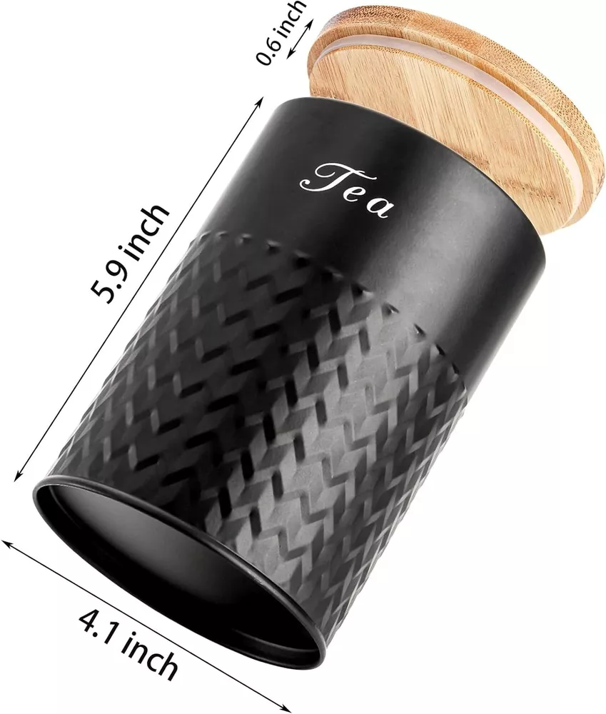 gtin13: NA Type: Does not apply Number of Items in Set: 3 Number of Compartments: Does not apply Item Depth: Does not apply Item Diameter: Does not apply Shape: Round Theme: Does not apply Personalize: Does not apply Character: Does not apply Pattern: solid Country/Region of Manufacture: Does not apply Department: Does not apply Item Height: Does not apply MPN: Does not apply Capacity: 36 Fluid Ounces Set Includes: Does not apply Character Family: Does not apply UPC: NA Material: Metal, Bamboo Lid Type: Does not apply Style: Does not apply Brand: Kitchen Color: Black Features: Airtight, Does not apply Item Width: Does not apply