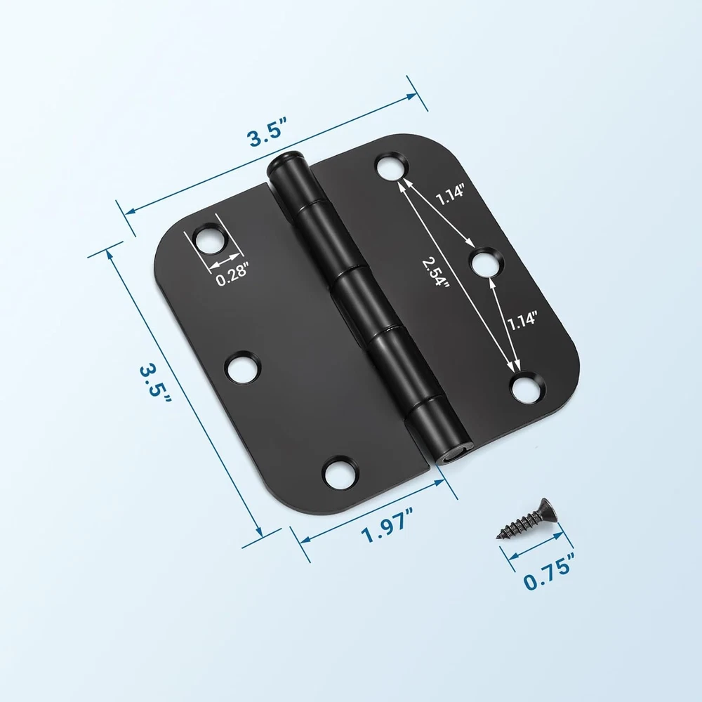 Store New Arrivals Add to Favorite View Feedback Contact 3 Pack Matte Black Door Hinges 3.5" X 3.5" Heavy Duty Door Hinge with Black Finish, Interior Door Hinges, 5/8" Radius Corners Description Unit Count 3 Count Hole Count 3 Mounting Type Door Mount Material Metal Material Type Metal Finish Types Painted Finish Type Painted Product Dimensions 3"L x 2"W Item Dimensions L x W 3"L x 2"W Size 3 Pack DURABLE & STABLE: Thanks to KNOBWELL own factory and QC department, our matte black door hinges are long-lasting and rust-proof with smooth and convenient daily use, absolutely distinguished addition to any home. QUICK & EASY INSTALL: Install your hinges in a flash. These hinges are easy to install, all you need is a screwdriver and you can easily install it in minutes! SPECIFICATIONS: Size: 3-1/2 inch X 3-1/2 inch; Corners: 5/8 inch Radius; Finish: Black; Material: High-Grade Quality Metal, solid and thick. Our interior black door hinges can be rotated 270 degree without making noise, suitable for bedroom, bathroom, guestroom, office and any place where quietness is needed. APPLICATIONS: These round door hinges 3.5 in could be mounted on interior doors like cabinet, dresser drawer, wardrobe wooden door, shed windows, shed hardware, shutters, skylights, vents, flower boxes, etc. for all kinds of outdoor buildings such as sheds, playhouses, animal shelters and more. QUALITY PACKAGING: Each hinge is individually packaged, 6 mounting screws and detailed installation instruction are also included. Believe in KNOBWELL and we will offer you 100% satisfaction. Product Description KNOBWELL door hinges are proof-positive that fashion and function can peacefully and beautifully co-exist. From timeless elegance to striking modernity, our door hinges fit and accentuate virtually any decor. Naturally, they're also designed, crafted and tested to ensure durability. Our Premium Quality door hinge is an ideal decorative accessory, professionally designed to perfectly compliment a wide range of contemporary and modern residential and commercial interior doors. KNOBWELL Matte Black Door Hinges Outstanding door hinges that made of premium quality metal, used for a long life span; Functional hardware solution that fit well with most popular decorative hardware collections; Could be mounted on shed windows, shed hardware, shutters, skylights, vents, flower boxes, etc. for all kinds of outdoor buildings such as sheds, playhouses, animal shelters and more. Multiple options of packs that you can choose from according to your needs. (1 pack means 1 individual hinge) Easy Installation Include all the hardware accessories you need, making it an ideal solution for kitchen and vanity installations. Product Specification Finish: Matte Black Material: Cold Rolled Steel Dimension: 3-1/2 x 3-1/2 Inch Corners: 5/8 Inch Radius Water Proof & Anti Rust Premier Quality Smooth & Durable Construction Reliable Strength Easy Installation Quiet & Beautiful ABOUT US We offer the best prices around on high quality products. Our E-store includes media such as books, movies, music and games while offering electronics, toys, sporting apparel, clothing, tools, general home, garden items and more. SHIPPING We are always working hard to ensure your package arrives as soon as possible. Please understand that some factors like weather, high postal traffic, and the performance of shipping companies are outside of our control. We offer free shipping to the lower 48 states and ship within 2 business days of payment, usually sooner. We do not accept P.O. Boxes. Please provide a physical address. For shipping outside of the continental USA, we only use eBay's Global Shipping Program.The item is shipped to KY and then sent to the rest of the world. International customers are responsible for all duties and taxes. Continue to check out in order to calculate costs for shipping the item to your country. Messages regarding eBay's Global Shipping Program MUST be directed at eBay EXCLUSIVELY. RETURNS We offer a 30-Day Return Policy on items which you are not completely satisfied with. You have the option for a full-refund or an exchange of the item. No returns are available on items shipped outside of the USA. PAYMENT We accept PayPal. CONTACT US This page content is yet to come Please ad us to your favorite seller and visit again later Thank You CUSTOMER SATISFACTION We try our very best to make sure every customer is completely satisfied. If there's a problem, message us! We're happy to help. WE ACCEPT Copyright © 2021 AutoDS. | All Rights Reserved