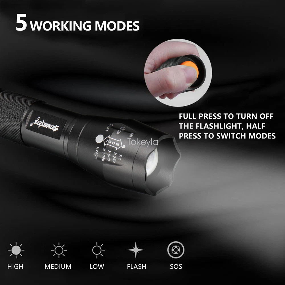 Home Payment Return Policy About us Contact us Details 3 Pack Mini Super Bright LED Flashlight Small Portable Working Torch Zoomable ‼️‼️【Note】 Batteries not included, please feel free to contact us if any need. Features: 1. [SUPER BRIGHT WITH 5 MODES] : The super bright flashlight LED uses advanced LED beads, emits bright light up to 2000 lumens and reaches nearly 656ft, it can easily light up an entire room! Adjustable/zoomable focus with 5 modes: High- Medium- Low- Strobe- SOS (for Emergency). 2. [WATERPROOF]: The small LED flashlight can be used in any weather. The aluminum alloy body has no rust issue. The flashlight high lumens super bright waterproof can be daily used, like troubleshooting, biking, hiking, camping, walking dog, or for emergency, survival, etc... 3. [ADJUSTABLE FOCUS]: Our handheld flashlights tactical torch utilize the latest durable LED chip, provides super bright light beam. Easy-controlled head-pulling zoom and easy mode-switch by light taps of button. Adjustable focus for use in different situations it ideal for use around the house 4. [PREMIUM QUALITY & LONG-LASTING]: Our flashlight super bright is made of high quality aluminum alloy, this super bright LED Flashlight is solid and sturdy, the edge designed is sharp and strong, can easily break the windows in case there's a car accident. Specification: Type of flashlight: Super Bright LED Flashlight Small LED Type: LED Output Power (max): 10W Power by: 1x 3.7v Li-ion Rechargeable Battery (Not included) Size: 4.80 x 1.06 x0.95 inches Material: Aluminum Weight: 2.5 ounce Function: Zoomable Light Mode: High/Medium/Low/Strobe/SOS Warm Tips: 1. Before use, please remove the the plastic packaging film of the battery. 2. Please take out the battery if you won't use for a long time to avoid battery leakage. 3. Please do not submerged handheld super bright zoomable LED flashlight underwater as it doesn't 100% waterproof. 4. Please select a lower setting when the LED flashlight super bright torch zoomable is hot as it is typical for high powered led flashlight and will not cause damage to the handheld flashlight. 5. Don't directly illuminate the eyes. Note:Please find us in first time when you find the parcel Broken/Scratch/Function Error/Miss Parts/Unwork/has not arrived etc, we always have more details and solutions, even duty for your order. Package includes: 3x Super Bright LED Flashlight Small (not included battery) Shipping Policy Payment Method Returns Policy Shipping Policy Payment Method This is the description of Payment Method. Do not dismiss your dream. To be without dream is to be without hope. To be without hope is to be without purpose. Do not run through your life so fast that you forget not only where you have been, but also where you are going. Life is not race, but a journey to be savored each step of the way. Returns Policy This is the description of Returns Policy. Do not dismiss your dream. To be without dream is to be without hope. To be without hope is to be without purpose. Do not run through your life so fast that you forget not only where you have been, but also where you are going. Life is not race, but a journey to be savored each step of the way. Store Categories Store Categories Battery and Charger Led Flashlight Led Headlamp Laser Pointer Pen Other Home Payment Shopping About Us Contact Us Copyright©2018 datacaciques Tokeyla Home Payment Return Policy About us Contact us Details 3 Pack Mini Super Bright LED Flashlight Small Portable Working Torch Zoomable ‼️‼️【Note】 Batteries not included, please feel free to contact us if any need. Features: 1. [SUPER BRIGHT WITH 5 MODES] : The super bright flashlight LED uses advanced LED beads, emits bright light up to 2000 lumens and reaches nearly 656ft, it can easily light up an entire room! Adjustable/zoomable focus with 5 modes: High- Medium- Low- Strobe- SOS (for Emergency). 2. [WATERPROOF]: The small LED flashlight can be used in any weather. The aluminum alloy body has no rust issue. The flashlight high lumens super bright waterproof can be daily used, like troubleshooting, biking, hiking, camping, walking dog, or for emergency, survival, etc... 3. [ADJUSTABLE FOCUS]: Our handheld flashlights tactical torch utilize the latest durable LED chip, provides super bright light beam. Easy-controlled head-pulling zoom and easy mode-switch by light taps of button. Adjustable focus for use in different situations it ideal for use around the house 4. [PREMIUM QUALITY & LONG-LASTING]: Our flashlight super bright is made of high quality aluminum alloy, this super bright LED Flashlight is solid and sturdy, the edge designed is sharp and strong, can easily break the windows in case there's a car accident. Specification: Type of flashlight: Super Bright LED Flashlight Small LED Type: LED Output Power (max): 10W Power by: 1x 3.7v Li-ion Rechargeable Battery (Not included) Size: 4.80 x 1.06 x0.95 inches Material: Aluminum Weight: 2.5 ounce Function: Zoomable Light Mode: High/Medium/Low/Strobe/SOS Warm Tips: 1. Before use, please remove the the plastic packaging film of the battery. 2. Please take out the battery if you won't use for a long time to avoid battery leakage. 3. Please do not submerged handheld super bright zoomable LED flashlight underwater as it doesn't 100% waterproof. 4. Please select a lower setting when the LED flashlight super bright torch zoomable is hot as it is typical for high powered led flashlight and will not cause damage to the handheld flashlight. 5. Don't directly illuminate the eyes. Note:Please find us in first time when you find the parcel Broken/Scratch/Function Error/Miss Parts/Unwork/has not arrived etc, we always have more details and solutions, even duty for your order. Package includes: 3x Super Bright LED Flashlight Small (not included battery) Shipping Policy Payment Method Returns Policy Feedback About US Shipping Policy Products would be shipped from Local US warehouse. Usually takes 2-5 days by US
