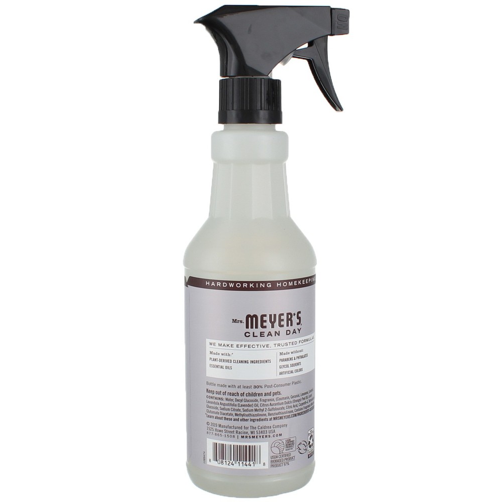 Product Description Mrs. Meyer's Clean Day Multi-Surface Everyday Cleaners feature hard-working yet gentle multi purpose cleaning agents, while also providing a special, singular scent for your entire home. Lavender has long been prized for its original and clean floral scent. Such a pretty and reassuring herb. We combine garden inspired scents, essential oils, and plant-derived multi purpose cleaning ingredients to clean kitchen messes and all over the house. Our cleaning spray is great on all non-porous surfaces such as finished wood and tile floors, countertops, walls, porcelain, bathroom fixtures, sealed natural and synthetic stone, and more. Available in other garden inspired scents and biodegradable products such as dish soaps and laundry detergents Mrs. Meyer's rooted in goodness. Mrs. Meyer's Clean Day Multi-Surface Everyday Cleaner Bottle, Lavender Scent, 16 Fl Oz: Quick and easy multi surface spray removes stuck on dirt A fresh way to clean, refresh, and remove odors from non-porous surfaces throughout the house Garden-fresh lavender has an original and clean floral scent Safe to use as a floor cleaner, tile cleaner, on countertops, walls, and more Mrs. Meyer's produces cruelty free cleaners. None of our products are tested on animals Ingredients Water, Decyl Glucoside, Polysorbate 20, Betula Alba (Birch) Bark Extract, Lavandula Angustifolia (Lavender) Oil, Citrus Aurantium Dulcis (Orange) Peel Oil, Fragrance, Sodium Citrate, Glycerin, Sodium Methyl 2-Sulfolaurate, Citric Acid, Tetrasodium Glutamate Diacetate, Sodium Sulfate, PEG-5 Cocoate, Methylisothiazolinone, Benzisothiazolinone Instructions Spray cleaner on all non-porous surfaces like finished wood and tile floors, countertops, walls, porcelain, bathroom fixtures, sealed stone and granite. Simply wipe away. Product Description Mrs. Meyer's Clean Day Multi-Surface Everyday Cleaners feature hard-working yet gentle multi purpose cleaning agents, while also providing a special, singular scent for your entire home. Lavender has long been prized for its original and clean floral scent. Such a pretty and reassuring herb. We combine garden inspired scents, essential oils, and plant-derived multi purpose cleaning ingredients to clean kitchen messes and all over the house. Our cleaning spray is great on all non-porous surfaces such as finished wood and tile floors, countertops, walls, porcelain, bathroom fixtures, sealed natural and synthetic stone, and more. Available in other garden inspired scents and biodegradable products such as dish soaps and laundry detergents Mrs. Meyer's rooted in goodness. Mrs. Meyer's Clean Day Multi-Surface Everyday Cleaner Bottle, Lavender Scent, 16 Fl Oz: Quick and easy multi surface spray removes stuck on dirt A fresh way to clean, refresh, and remove odors from non-porous surfaces throughout the house Garden-fresh lavender has an original and clean floral scent Safe to use as a floor cleaner, tile cleaner, on countertops, walls, and more Mrs. Meyer's produces cruelty free cleaners. None of our products are tested on animals Ingredients Water, Decyl Glucoside, Polysorbate 20, Betula Alba (Birch) Bark Extract, Lavandula Angustifolia (Lavender) Oil, Citrus Aurantium Dulcis (Orange) Peel Oil, Fragrance, Sodium Citrate, Glycerin, Sodium Methyl 2-Sulfolaurate, Citric Acid, Tetrasodium Glutamate Diacetate, Sodium Sulfate, PEG-5 Cocoate, Methylisothiazolinone, Benzisothiazolinone Instructions Spray cleaner on all non-porous surfaces like finished wood and tile floors, countertops, walls, porcelain, bathroom fixtures, sealed stone and granite. Simply wipe away. Warnings Safe to use on most stone surfaces, provided the stone surface has been sealed. We do not recommend using this product on unsealed natural stone. Disclaimer The product descriptions and instructions provided by vitabox.com are for informational purposes only and are qualified in their entirety by the information available from manufacturers of the products. You should carefully read all product packaging, and contact the manufacturer with any questions before using a product. While we endeavor to ensure that product descriptions are current, manufacturers sometimes change their products. We are not liable for inaccuracies or misstatements about products. We do not provide medical advice or recommendations. You should not use the information provided by vitabox.com for diagnosing or treating a health problem or disease. If you have or suspect that you have a medical problem, immediately contact your health care provider. Information and statements regarding dietary supplements have not been evaluated by the Food and Drug Administration or any other government agency and are not intended to diagnose, treat, cure, or prevent any disease.