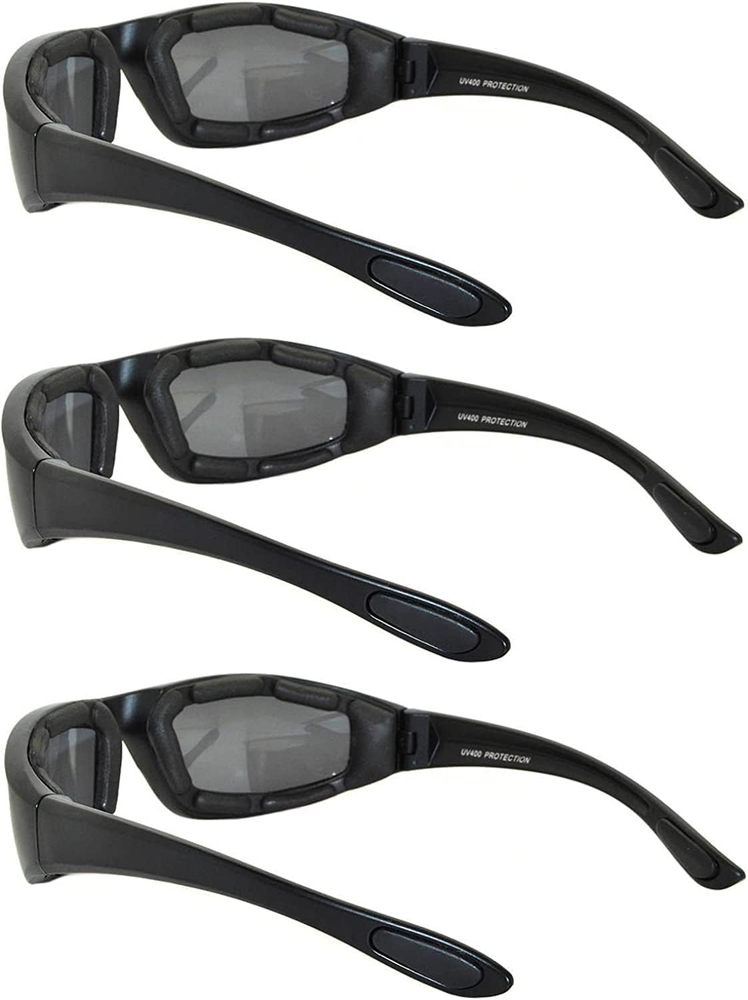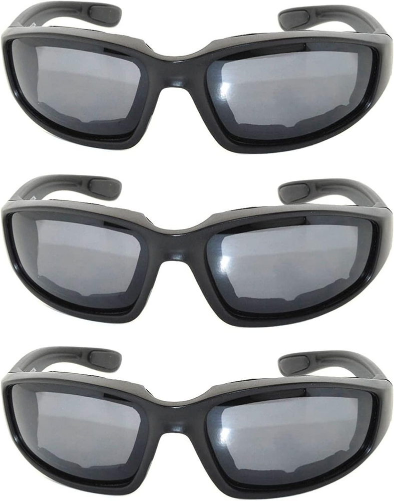 3 Pack Padded Motorcycle Sport Sunglasses in Assorted Colors for Men and Women