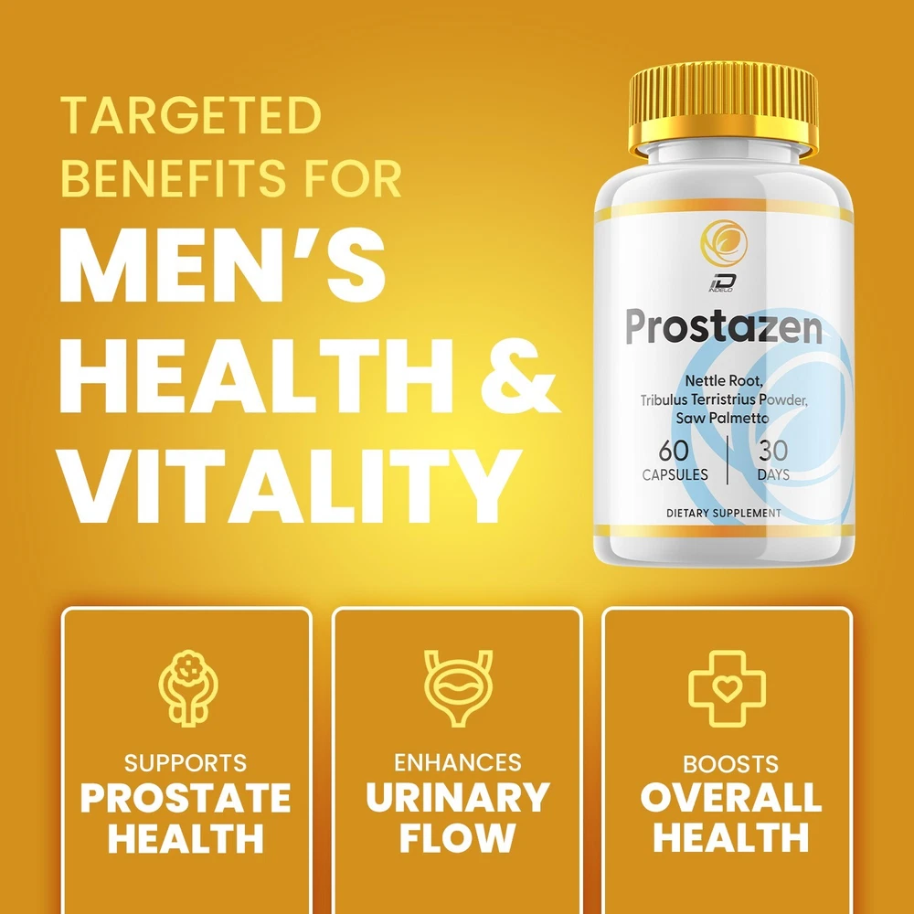 Prostazen Prostate Health supplement is a potent blend of natural ingredients formulated to provide comprehensive support for prostate health, bladder control, and urine flow, while also boosting stamina and energy in men. This all-natural men's supplement harnesses essential minerals to promote overall well-being, offering relief and vitality for an active lifestyle. Prostazen Prostate Health Support: Prostazen Prostate Health is a potent natural supplement crafted to deliver comprehensive support for prostate health, providing relief and a stamina boost for men. It is a key choice for men's health and wellness. Prostazem All-Natural Men's Supplement: Discover the exceptional benefits of Prostazen, an all-natural men's supplement enriched with essential minerals. This mineral supplement for men promotes overall well-being, supporting prostate health and vitality. Prostazn Advanced Prostate Formula: Engineered with precision, Prostazen is an advanced prostate formula that targets specific needs, offering relief, energy, and comprehensive prostate support for men. It is for men's health supplements. Prostazan Energy Boost for Men: Elevate your energy levels and enhance stamina with Prostazen's energy-boosting properties. It provides the vitality needed for an active and fulfilling lifestyle, making it an ideal choice for men's supplements. Prostazen Bladder Control and Inflammation Reduction: Prostazen goes beyond prostate health, aiding in the reduction of inflammation and promoting bladder control. It offers a holistic approach to men's wellness, making it a standout supplement for men's health.