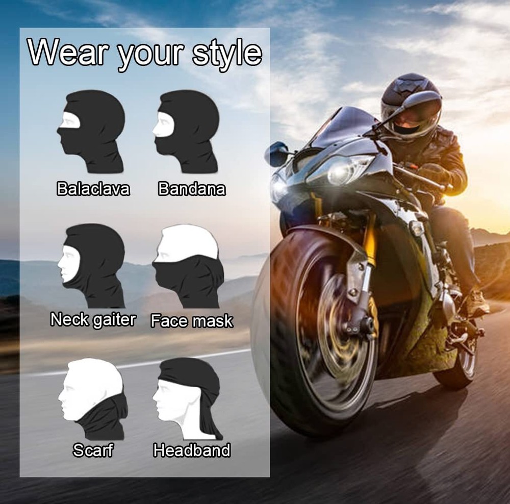 【Multiple Wearing Methods】Can be worn as opened or closed balaclavas, ski mask, face masks, neck gaiters, kids ski mask, scarfs, bandanas, helmet liners, headbands and even wristbands, provides great protection to your face, ear and neck from sun. Kids ski mask, kids balaclava extremely elastic strong and durable - wrinkle free - lightweight, portable and comfortable, ventilation - quick drying. 【All Year Round Friendly】This multifunctional ski mask is eligible for superior wind and weather protection around the head and neck, black balaclava without any skin irritation and helps prevents heat loss. Sun UV protection, summer cooling, windbreak, dustproof and sand control, sweat absorption and machine washable, ski mask for men. 【Very Practical】 Suitable for all outdoor sports and activities, such as skiing, snowboarding, fishing, motorcycling, running, climbing, hiking, tactical training and other outdoor activities. Wear your balaclava on its own, under a helmet, as a full face mask, open balaclava, half ski mask, ninja hoodie, pooh shiesty mask, or neck gaiter. This cold weather gear is as versatile as it comes. Black balaclava women ski mask is versatile enough to complement your goggles, helmet, and ski gear. 【Unique Design】 Unisex balaclava face mask, provides cover and comfort with lightweight (thin material) Designed in a minimalist unisex aesthetic which is suitable for men/women and even kid children. Balaclava hood is to be worn next to skin underneath any helmet or hat ( including any motorcycle helment or ski helmet). 【One Size Fits All Noggins】Black balaclava kids ski mask for men, It is soft 92% polyester 8% spandex blend, stretchy, breathable thermal spandex fabric. It has four-way stretch and a lightweight feel that will fit comfortably, even on Einstein-sized heads. Package include: 3 pack black balaclavas.
