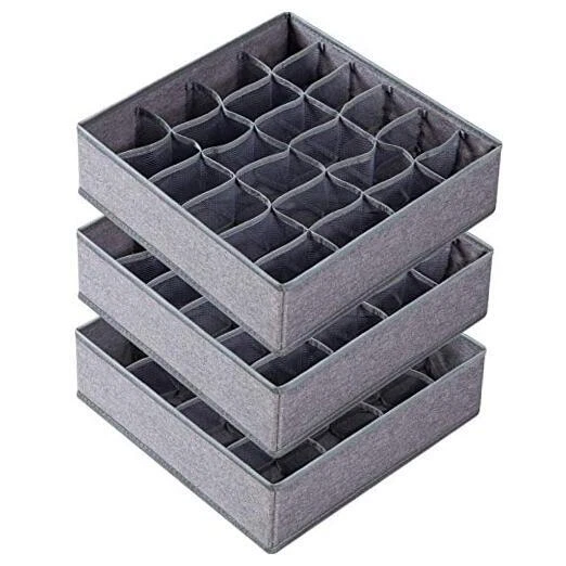 Return Policy Fast Delivery Trusted seller 3 Pack Sock Underwear Organizer Dividers, 64 Cell Fabric Foldable Drawer Organizer for Dresser Closet Organizers and Storage Boxes for Organizing Socks, Underwear, Ties (16+24+24 Cell, Gray) Product Description Tear-resistant fabric with PP board 【VERSATILE & SAVE SPACE】Featuring with 64 slots in all, this 3 pack drawer organizers are perfect for you to organize sock, ties, belts, underwear, lingeries etc. Easily accessible to see the pattern and color to choose quicky the right combination for your work day. 【DECENT SIZE & UNIQUE DESIGN】 You will receive 3 set cabinet organizers, each mesures 12.5"x12.5"x4" (32x32x10cm). Two of the boxes have 24 medium cells, one of them has 16 large cells for storing winter/athletic socks, small ornaments etc. Color: Gray. 【PREMIUM QUALITY】 Made of durable PBT fabric and delicate stitchings, the storage organizers resists to dust, moisture and tear than non-woven cloth. And the high-density PP insert boards is sturdy and resists to bend, deform or crack. The mesh pocket squares are breathable and help the air circulation. 【EASY TO ASSEMBLE】 The 3pcs collapsible sock storage boxes dresser drawer organization set are lightweight and you could fold or unfold them quickly with the zip on bottom. These organizer boxes can be used for closet, bedroom, shelf, bathroom, wardrobe, chest of drawers, under bed storage, desk, bookshelf, nursery, office. 【GUARANTEE FOR RISK-FREE BUY】 Our foldable sock drawer organizers are made under strict quality control for the superior quality and your satisfaction. If you are not happy with it, we offer 30-days no-reason money back and 3-year replacements or refund for quality issues. 24H reliable customer service for you. Give it a try! It's NO RISK! Shipping Returns Payment Shipping Shipping is FREE to all addresses other than APO/PO boxes in the lower 48 states. All our stock ships from US-based warehouses. Shipped via USPS or UPS (depending on location and package weight) Unless stated otherwise, all orders will ship within 24-72 hours of your payment being processed. Check our feedback to see the great reviews of FAST shipping we offer. Returns Seller does not accept returns Payment We currently accept payment via eBay managed payments only. Once payment is cleared, we will dispatch your shipment within 1-3 business days. Please refer to the "Shipping" tab for more information regarding shipping speed to your destination.