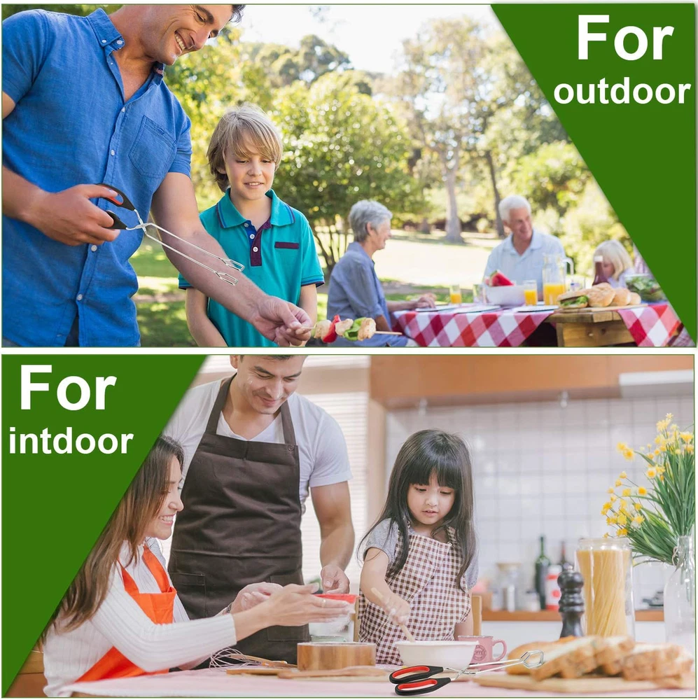3 Pack Stainless Steel Scissor Tongs 9/11/ 12 Inch Cooking Scissor Tongs Kitchen 3 Sizes: you will get 3 pieces of cooking food scissor tongs, come with 3 different sizes, approx. 9 inch, 11 inch and 12 inch respectively, enough for you to use, easy to satisfy your different using demands Quality material: these barbecue grilling tongs are made of metal, PP and TPR material, comfortable to grip, heat resistant and has a long-term service; And it can be non-slip though there will be much oil on it Safe to use: our kitchen food tongs with proper size will keep hands at a safe distance during cooking and handling hot food, which can prevent burns effectively; They are practical tools to have for everyday use Suitable for: you can use the cooking scissor tongs to clip and flip different sizes of food, or you can also pick the charcoal by this clamp, convenient to use and prevent oil of food or dust from smudge your hands Wide occasions: the multi-purpose scissors tongs are vary suitable for kitchen grilling, picnic, dinner party, buffet or outdoor barbecue, good for turning and clamping all kinds of food, such as fish, crab, chicken, turkey, burger, asparagus, vegetable salad, ice block, taco and so on