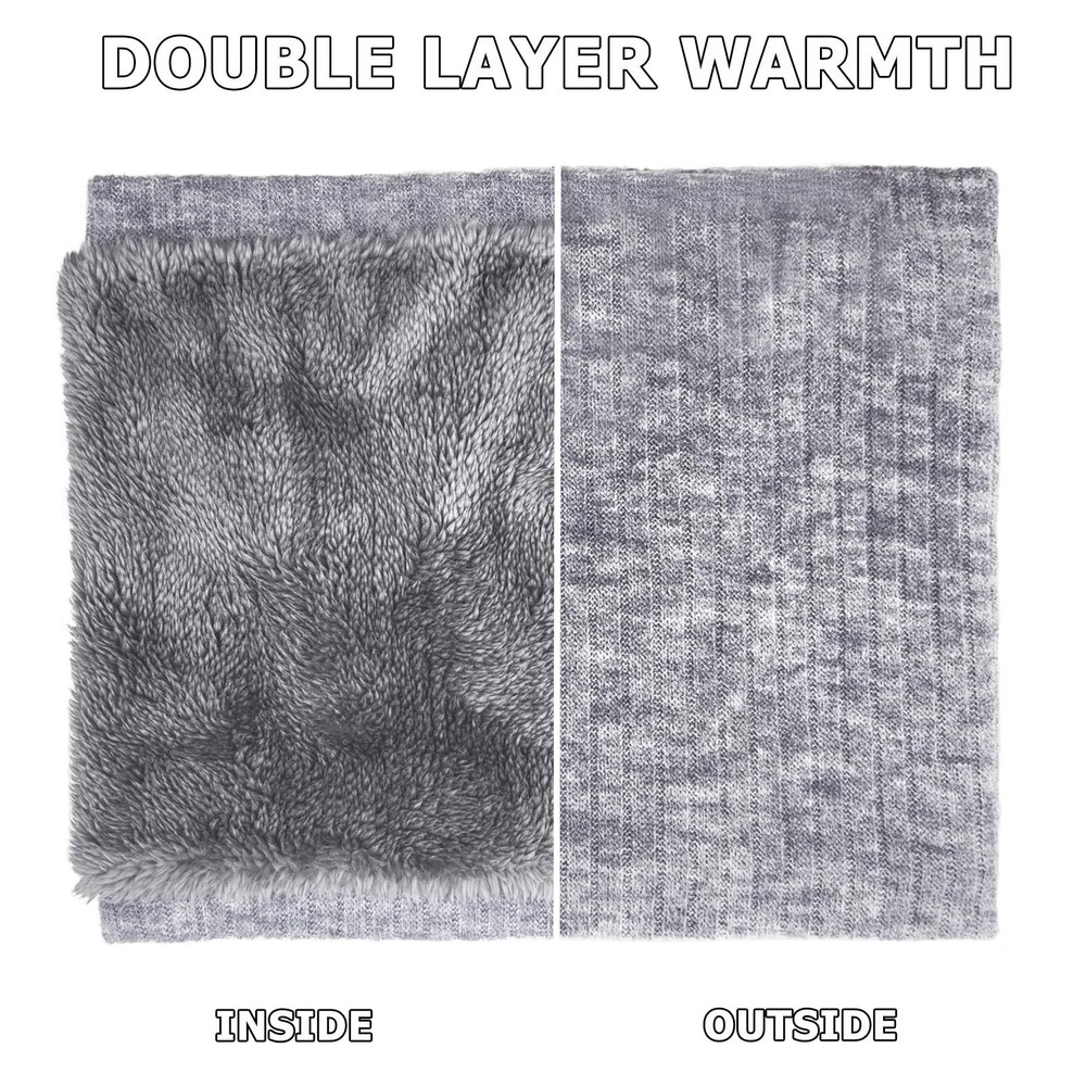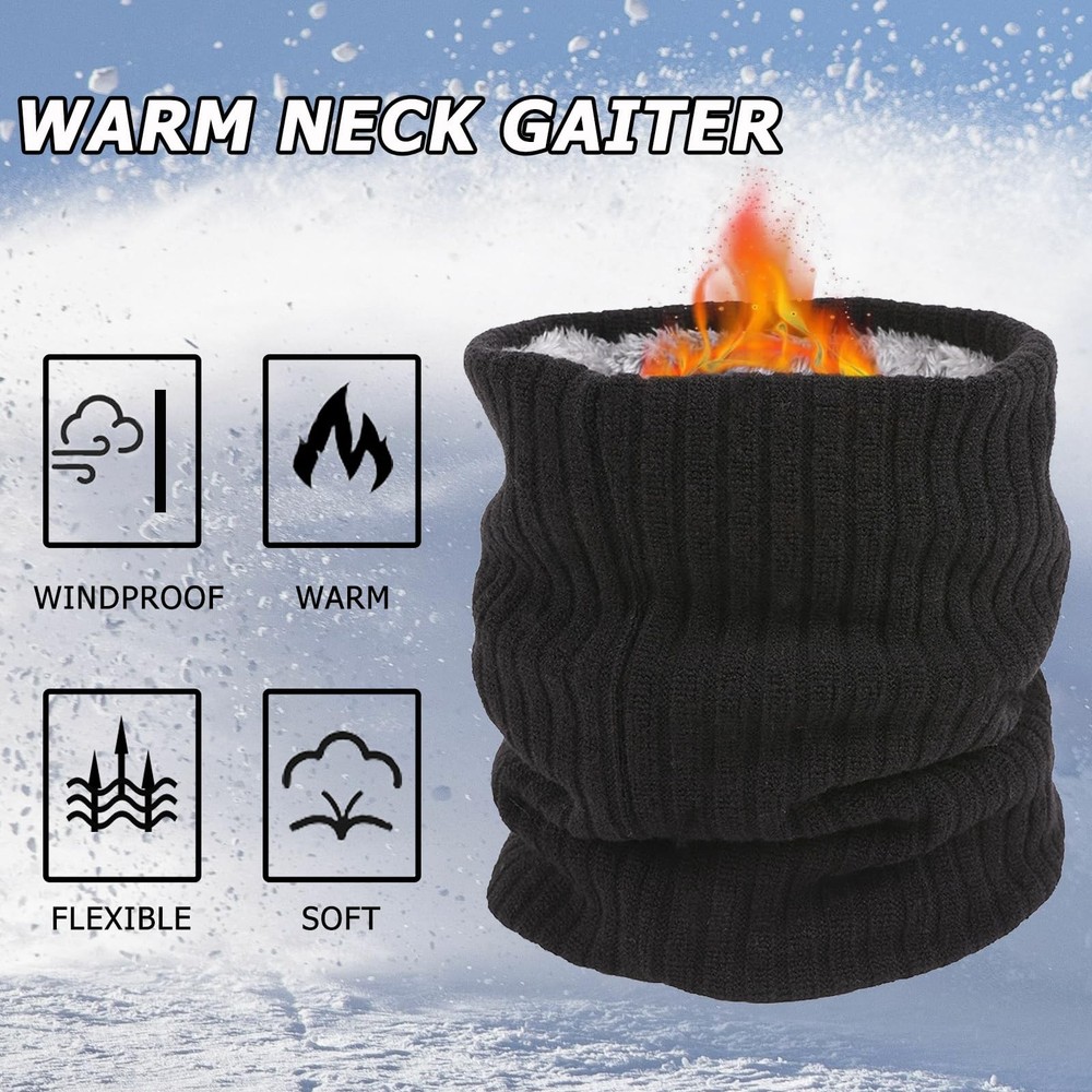 Winter Neck Warmer for Men Women Thermal Thick Warm Fleece Lined Ski Neck Gaiter Windproof Face Scarf for Cold Weather 3 Pack Quality Neck Warmers: The neck warmer is made of skin-friendly thermal fiber with fleece lining. You will feel the warmth as soon as you put it on. One Size for Most: The size of this neck warmer is 9.4 inches wide and 7.8 inches long. They all have excellent elasticity to fit most people. Neck Warmers of Various Use: You can wear these neck warmers in many ways. You can wear one on your neck as a neck warmer and face cover. When you put it on your head, you can also wear it as a balaclava, and it's helmet & googles friendly when you're riding or doing other helmet required activities. Multi-use for You: When the weather is getting colder and colder, these neck warmers will keep your neck warm in any outdoor situations like walking dog,skating, skiing, hiking, climbing, riding, cycling, fishing and any other out door activities. Package:The neck gatier sets includes 3 pieces of stylish colors neck warmers to match all your gear choose.