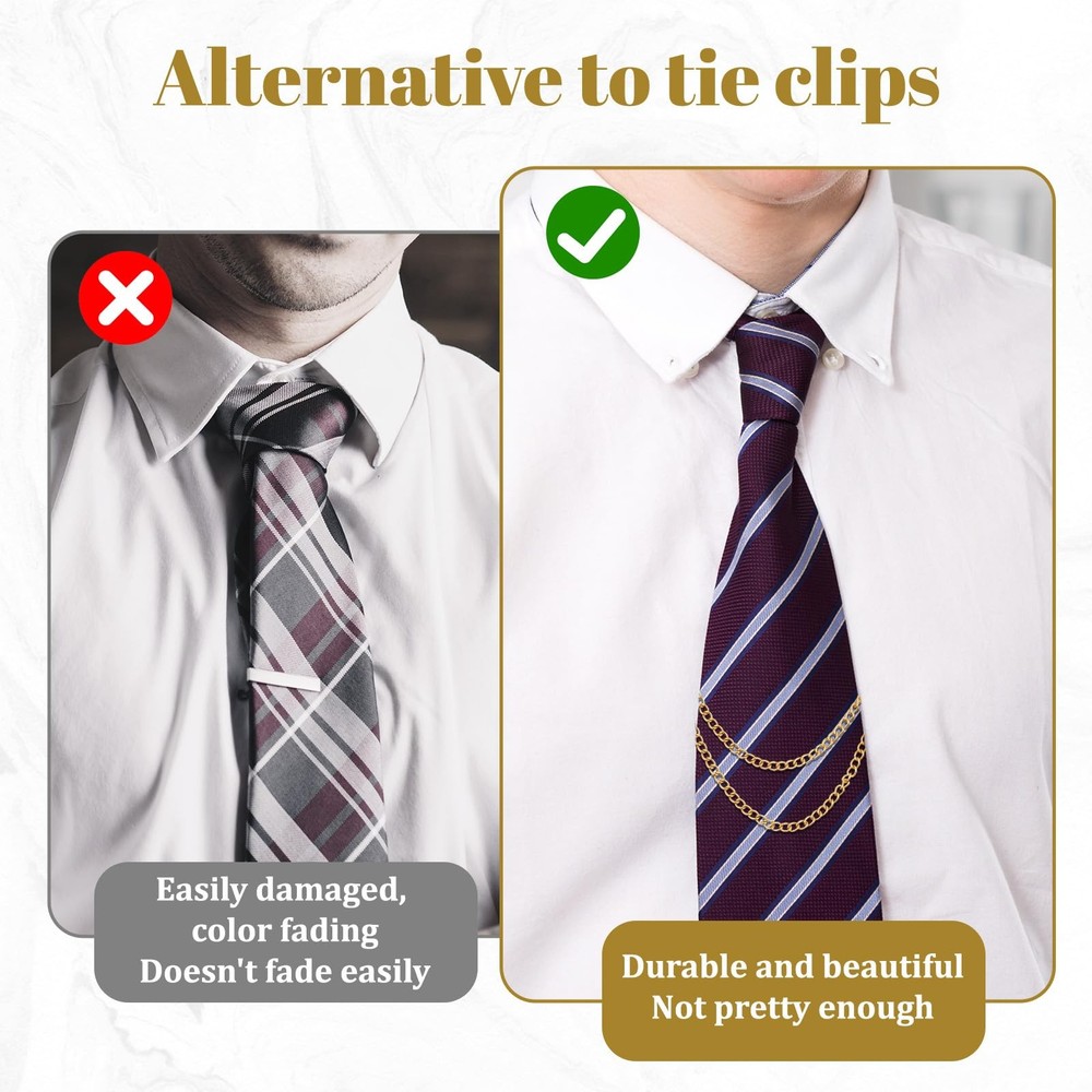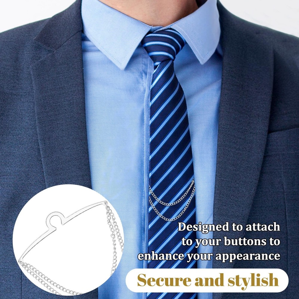 3 Pack Tie Chain for Men, Double Necktie Chains with Ring Clasps, Elegant Metal Tie Clips, Suit Accessories Men Business Jewelry for Suits, Business Wedding Accessories (Gold, Silver, Black) What You Get: You will get 3 pcs tie tacks for men in gold, silver and black to match any suit or occasion. Whether it is a business meeting, wedding or formal event, the suit accessories men can be matched with different outfits to create a fashionable look Durable Material: Made from premium copper metal with a polished finish, these tie clips for men will retain their luxurious appearance even after years of wear. The tie clip's sturdy construction ensures reliable performance day after day Stylish Design: Unlike traditional tie clips that leave marks, these mens tie clip gently secure your tie without causing any damage. The innovative loop design of the tie tack keeps your tie in perfect position while protecting delicate fabrics Carefully Designed: This tie chain for men has a simple and sophisticated look that adds a sophisticated sheen to any formal outfit. The lapel chain for men suits are perfect for the office or special occasions Thoughtful Gift: Our suit jewelry men is an ideal gift for grooms, business people, or any stylish gentleman. Whether it's a wedding, promotion, birthday, or holiday, vest chains for men is a thoughtful gift that expresses gratitude Material: copper Colors: gold, silver, black Dimensions: 7.2 x 6.2 cm Packaging: 3 pieces tie chain for men Shipping We offer FREE shipping on all orders! We ship within Three business days of payment, usually sooner. We use a selection of shipping services such as UPS, FedEx, USPS etc. We only ship to the lower 48 states, no APO/FPO addresses or PO Boxes allowed. Local pickups and combined shipping options are not provided at this time. Return You can return a product for up to 30 days from the date you purchased it. Any product you return must be in the same condition you received it and in the original packaging. Please keep the receipt. Payment We accept payment by any of the following methods: PayPal Please pay as soon as possible after winning an auction, as that will allow us to post your item to you sooner! Feedback Customer satisfaction is very important to us. If you have any problem with your order, please contact us and we will do our best to make you satisfied. Contact Us If you have any queries, please contact us via ebay. We usually respond within 24 hours on weekdays. Please visit our eBay store to check out other items for sale! Thank you for shopping at our store.