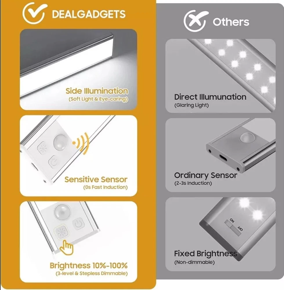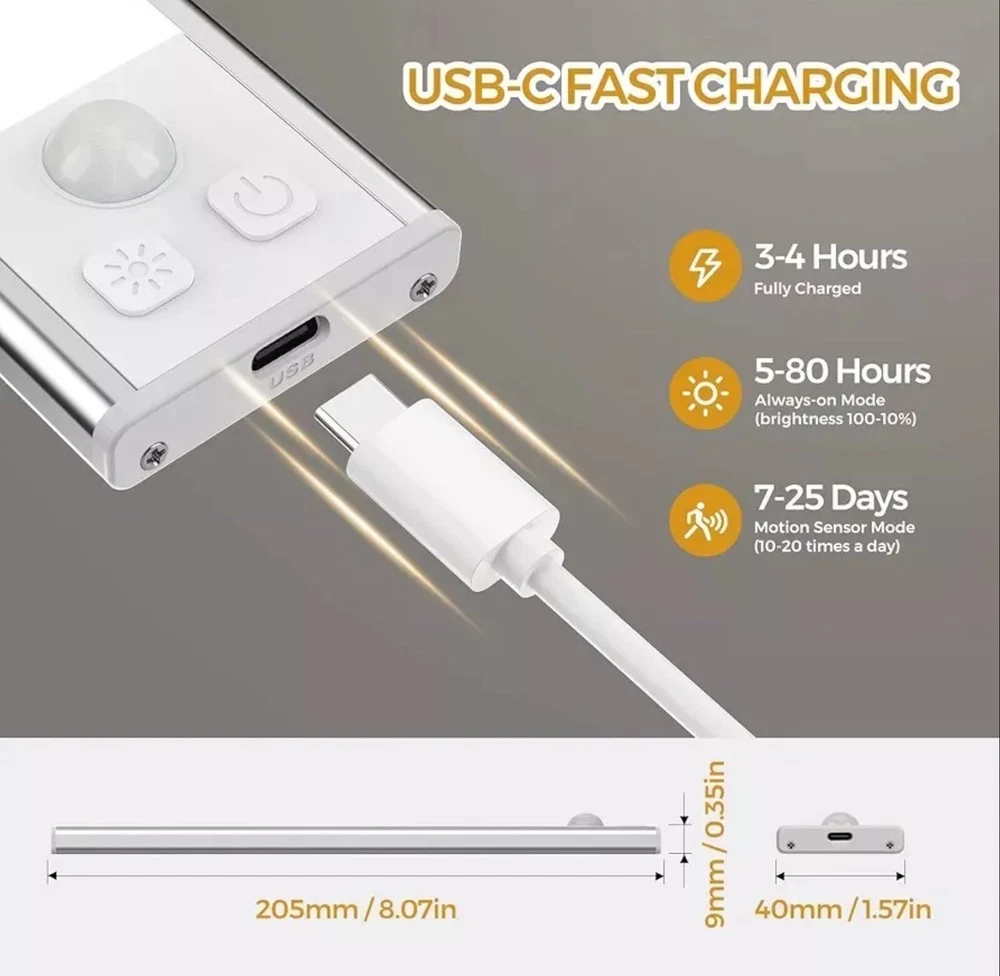 Weight: 0.02 Pounds Type: Does not apply EAN: 0745978616845 gtin13: 0745978616845 Mounting: Under Cabinet Color: Silver - Cold White Light Package Dimensions LxWxH: 10.0x4.92x0.67 Inches Lighting Technology: LED Features: Rechargeable UPC: 745978616845 Size: 8.07 Inch - 3 Pack ISBN: 0745978616845 Brand: DEALGADGETS Sensor Type: Light