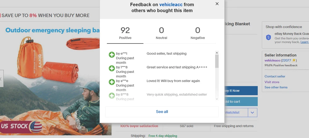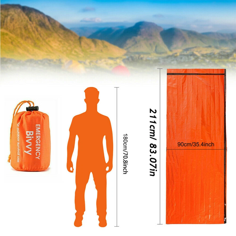 3 Pack Emergency Sleeping Bag Thermal Waterproof Outdoor Survival Camping Hiking Product Description: The emergency sleeping bags survival Bivvy sack size 36 * 84 inches; Lightweight survival kit for outdoor camping hiking lovers. KEEP WARM - Made of durable insulating Mylar material, premium choice for emergency situations in need of warmth protection from all-weather conditions. High reflective Alu. foiled thermal material are designed to reflect your body heat back to prevent the hypothermia even save your life in emergencies. MULTIPURPOSE EMERGEMCY USES -The emergency bivvy bag serves as your emergency blanket, survival shelter, and emergency bivy sack all-in-one. Use as tent footprint, rain poncho, emergency signal, emergency shelter, ground cover, bivouac sack, wind blocker, water collector, snow melt container and so on. The bright orange color survial bivvy sacks can help rescuers to find your location and get quick rescue. ULTRA LIGHTWEIGHT COMPACT PORTABLE - Each Pack emergency sleeping bag is kept in a small drawstring storage bag diam. 2.8*3.95" weight 4 oz. Portable to carry for outdoor activities and keep storage after every use. Easy to store it in your car, backpack, emergency first-aid case, etc. Features: 1. The first aid sleeping bag is made of aluminium foil.It has a metal coating on the surface. 2. The inner layer is a PE plastic film, which can reflect the heat back to the body in order to keep you warm. 3. Emergency sleeping bag is used in special circumstances like earthquake or outdoor distress.With this emergency sleeping bag can still keep away you from cold. 4. This bag is not a one-time-use bag. After each use, you should carefully fold it in order to use it again. Specifications: 1. Material: PE . 2. Mattress Size: Single. 3. Color: Orange. 4. Structure: Envelope . 5. Weight: 120g. 6. Size: Approx. 213 x 90 cm Main Functions: 1. When camping, it can be used to strengthen the wind protection effect outside the sleeping bag. 2. An emergency sleeping bag can keep the weak patient from lossing heat. 3. When you arein danger in the wild.You can wrap the emergency sleeping bag around your body and use its reflective function to help the rescue people quickly find you. 4. It can be used to collect water,tents and waterproof mats. 5. Sun block Package Includes: 1 x Emergency Sleeping Bag or 2 x Emergency Sleeping Bag or 3 x Emergency Sleeping Bag Payment Delivery details Terms of sales About us Contact us Payment We only accept PayPal payments. Payment should be made within 5 days after bidding ends. We are not responsible for buyers' local taxes. 1) Import duties, taxes and charges are not included in the item price or shipping charges. These charges are the buyer responsibility. 2) Please check with your country customs office to determine what these additional costs will be prior to bidding / buying. Delivery details We only ship to the given address in eBay payment。 Please make sure payment address in eBay is correct. Any non-received items caused by invalid address registered on eBay are not in our full refund or replacement policy. Don't forget your telphone number ,so that item can reach your home in time and accurately. Terms of sales Item may be returned for refund or replacement within 30 days of the purchase date. Returned merchandise must be unused, in original packaging and include all accessories. Shipping costs are non-refundable. Please do not hesitate to leave us your 5 Star ★★★★★ of DSR positive feedback if you are satisfaction with our products ,delivery or services . If you have Any Questions Or unsatisfied with your purchase, please email us first to get a better solution before you leave a neutral or negative feedback, we work hard to make sure every customer 100% satisfied and resolve anyproblem for you. Thank you for your kindness. About us We are a professional worldwide Professional company, with own factory located in China. We also offer reasonable prices , excellent customer service and a reliable credit standing are our target! Contact us 1. If you have any further queries, you can feel free to email me via email or eBay message. Thank you. 2. Please email us first before giving negative feedback or opening a case. Wish we can solve the problem peacefully . 3. Much appreciated if you could leave us positive feedback with five stars. 4. We will reply you within 12 hours and do our best solve the problem with you (Except on Weekends and Holidays) Work time:Monday to Friday GMT8 (9:00am-18:00 PM) Welcome your any-time parchase!