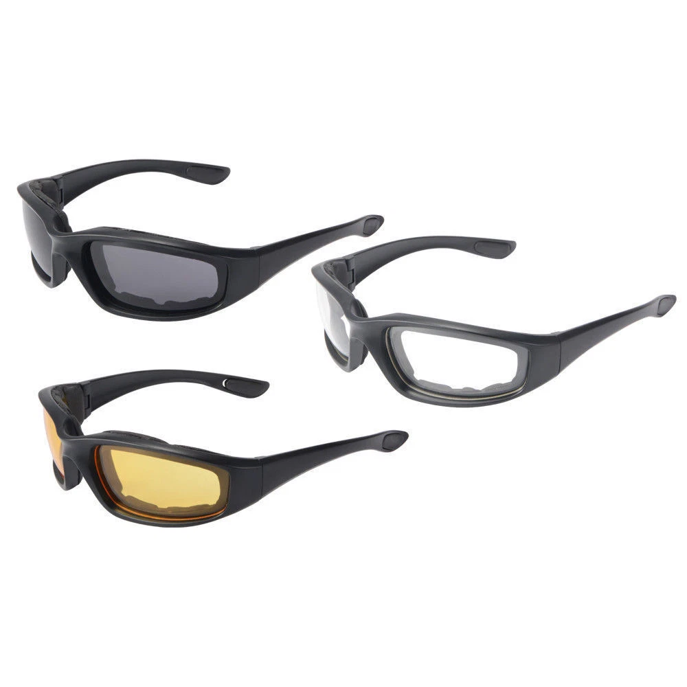 Description : This sunglasses have mirror coated UV400 lenses which provide the ultimate in protection against the sun's harmful rays. VERSATILE : These protective glasses can also be worn when playing sports, rock climbing, fishing, hunting, hiking, or partaking in any outdoors activities. Lenses made from polycarbonate for high impact resistance, long-lasting use, scratch resistance, and superior eye protection, while still being lightweight for hours of comfortable riding Product Features : Frame Color: Black Lens Color: Gray/Clear/Yellow Frame Material: Plastic Style: Motorcycle Sunglasses/Riding Glasses Protection:100% UVA & UVB Gross weight:130g Package Includes : 3 x Motorcycle Riding Glasses with UV Protec (1) We will send your items within 5 working days (except weekends and Chinese public holidays) (2) It is recommended that you choose Speedpak shipping. Usually economical international packages take 12-30 days to arrive, but Speedpak shipping can arrive within 7-12 days. Please pay for your items together, we will send your items in one package (we may add free gifts), please do not pay for your items one by one. About us If you are not satisfied with our products or services, please contact me, do not give us negative or natural feedback, we will definitely give you a satisfactory solution. (I believe there will be no problem with communication) Contact us We will reply most emails within 24 hours on working days. If you do not receive a reply from us, please resend your email, because sometimes it may be due to Internet problems that we did not receive your message. If you need to buy in bulk, please contact us by email, wholesale is always welcome Bulk purchases can get more discounts Welcome to buy wholesale at any time. Wholesale please contact us by email View our other projects For more exquisite products, please browse the store selection