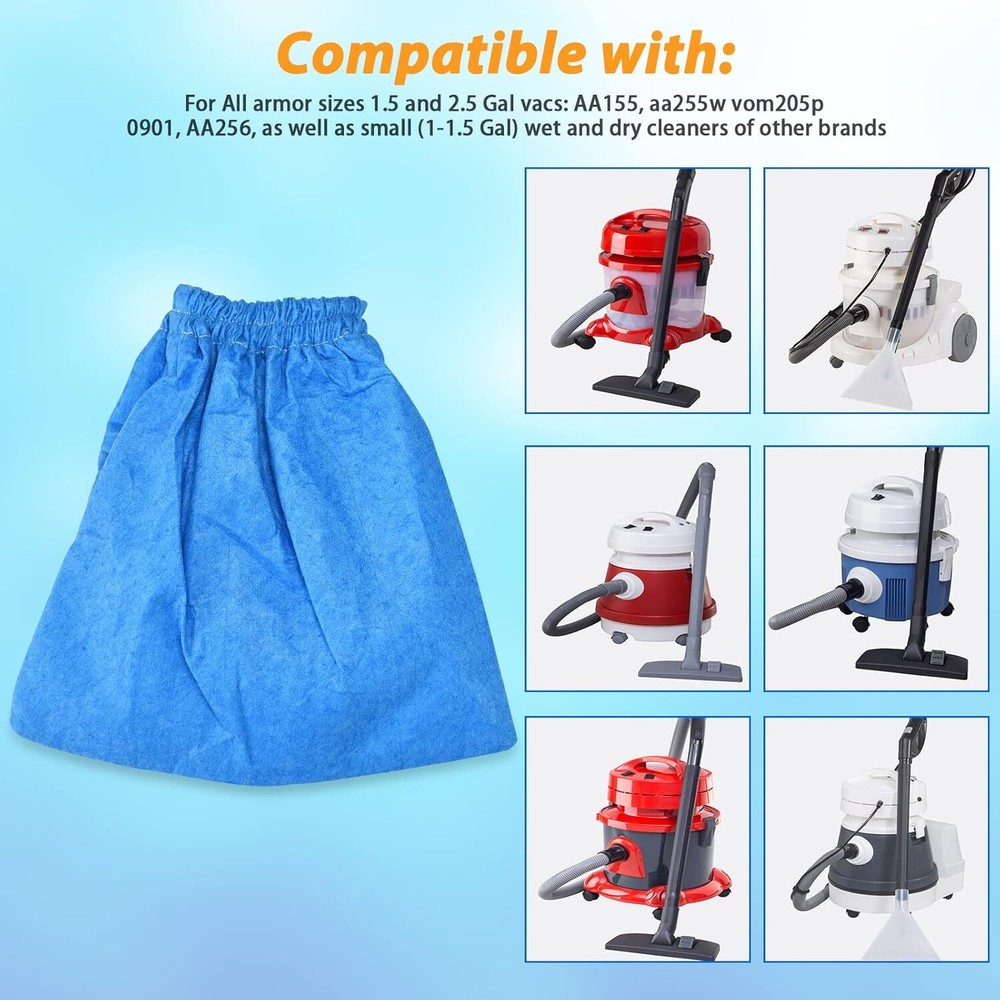 3 Pcs Cloth Filter Bag for Armor All AA256 AA255 2.5 Gallon Shop VAC Blue Product Details Brand Name: Atjocxe Model Info: VRC2 Item Weight: 2.89 ounces Package Dimensions: 9.72 x 5.31 x 2.56 inches Country of Origin: China Item model number: VRC2 Capacity: 2.5 Gallons Part Number: VRC2 Special Features: Reusable Color: Blue Compatible Device: Vacuum Cleaner Material Type: Non-woven fabric Batteries Included?: No Batteries Required?: No Compatible Devices: Vacuum Cleaner Brand: Atjocxe Material: Non-woven fabric Special Feature: Reusable Color: Blue 3-Pack DVC Micro Lined Vacmaster VRC2 2.5 Gallon Cloth Filter . Cloth Filter Bag Replaces parts VRC2 / VRC21; Cloth Vacuum Filter Bag fits Vacmaster 1.5 to 3.2 Gallon Wet/Dry Vacuums, Fits most Armor Al Wet/Dry Vacs, Replaces parts VRC2 / VRC21; For vacuuming household dirt and debris, and sawdust; Compatible with following Models: Armor All AA155, AA255, AA255W, AA256, VOM205P 0901; Not Fit For CRAFTSMAN,,RIDGID, Shop Vac Wet/Dry Vacuums, only for Vacmaster Vacuums.