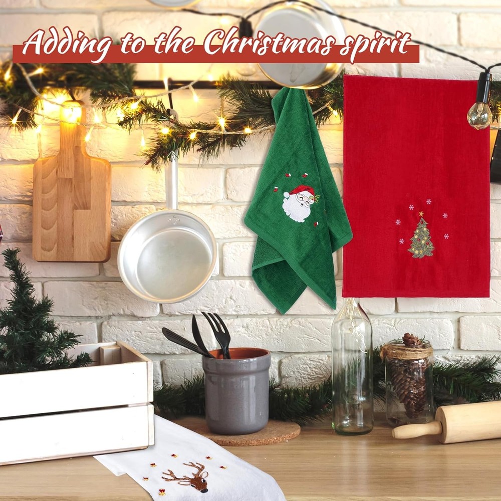 3 Pcs Christmas Hand Towels for Bathroom, 100% Cotton Soft Small, 3pcs LuxeFusion Product Description Features You will get 3 pieces of 15 x 23 inch Christmas hand towels with fun holiday embroidery patterns including Santa Claus, Christmas tree and elk. Use this hand towels to add the finishing touch to your home holidays. The Christmas hand towels for bathroom are made of 100% pure cotton fabric, which is comfortable, soft, breathable, lightweight, does not fade, and has excellent water absorption. Bathroom hand towels can easily absorb several times its weight in water to meet your basic drying needs. Each kitchen towels is finished with a double stitched hem at the border for reduced breakdown after washing while it also adds to the aesthetics of the cotton towel. For optimal longevity, we suggest using warm water and tumble dry on low heat. Patterned Christmas towels are perfect as gifts for friends and family who also like to decorate their homes at Christmas, parties, holidays, birthdays, and housewarming celebrations. Your friends or family will love them. Merry Chrismas! Perfect as hand towels, dish towels, guest towels, bathroom towels, kitchen towels, cleaning cloths and more. Product Details Color: 3pcs Brand: JUXINGDAZYF Towel form type: Hand Towel Material: Cotton Product Dimensions: 23"L x 15"W Number of Items: 3 Style: Christmas Pattern: Embroidered Special Feature: Non-toxic Theme: Christmas Product Care Instructions: Machine Wash Shape: rectangle Size: Small Unit Count: 3.0 Count Fabric Type: Cotton Item Weight: 0.25 Kilograms Set Name: 3-pack Christmas Hand Towels Manufacturer: JUXINGDAZYF Item Weight: 8.8 ounces Free Shipping All orders ship free and fast to your doorstep. Easy Returns Satisfaction guaranteed. 30-day returns, no questions asked. 24/7 Support Contact us anytime; we’re here to help, day or night. Brought to you by LuxeFusion – Quality you can trust.