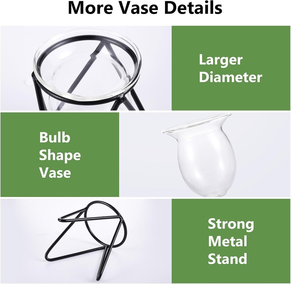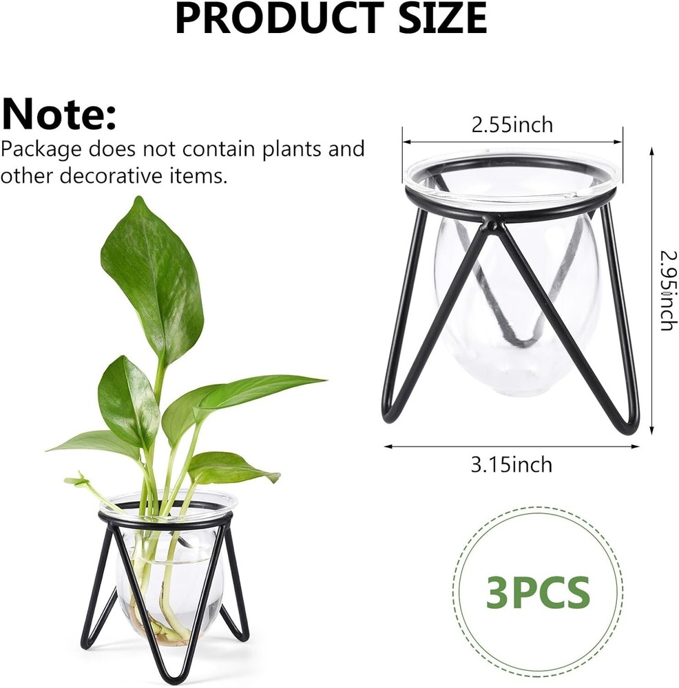 Package Include: You will receive 3 pieces of glass plant terrarium with metal stand in 1 package, enough quantity to meet your using, decorating and replacement needs, you can also share them with your friends Ideal Gifts: These air plants holders can be a crafting prop for you, allowing you to fill the vase with plants or animals, and decorate it with wrapping ribbons. It also can be an ideal gift for your parents, friends, lovers Easy to Use: These glass hydroponic vases for plants are easy to use, you only need to put the glass vase on the metal holder, then pour some water in it and put in plant, such as Scindapsus, Mint, Hydrocotyle vulgaris, lightweight plants and flowers Practical Design: These glass hydroponic plant vase indoor feature delicate workmanship, are designed with a bulb-shaped container and a metal stand, adds modern sense and stylish your living surroundings, simple but classic, fits to any home decors Wide Application: These glass plant terrarium for indoor plants are ideal decorations for your home, office, garden, shops, exhibitions and other occasions. They can also display your lovely flowers and plants, add a touch of green nature to your space
