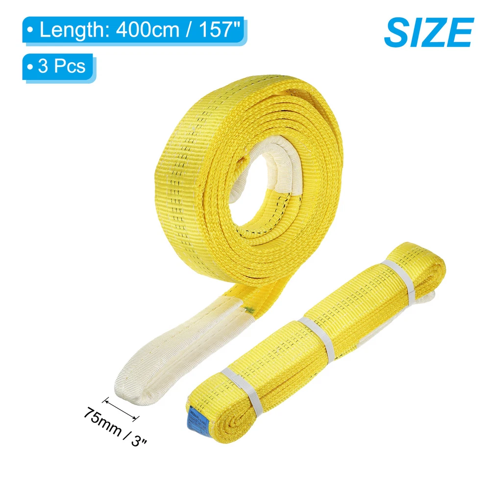 Document These polyester round slings are designed for lifting and rigging applications in industrial, construction, and commercial settings.SpecificationColor: YellowMaterial: PolyesterLength: 12ft (100cm)Width: 1.77" (75mm)Vertical Capacity: 22046 lbs.Packing List: 3 Pcs Polyester Flat Lifting BeltsAdvantageConstructed from high-tenacity polyester webbing for strength, which is low stretch and flexible to support the load shape firmly.InstructionLightweight and flexible for easy maneuvering and handling. Abrasion-resistant and weather-resistant for use in environments.NotePlease check the size and vertical capacity before choosing our products so that you can get suitable results for use. 3 Pcs Lifting Slings Straps Polyester 12ft Flat Lifting Belts(6613lbs) Yellow These polyester round slings are designed for lifting and rigging applications in industrial, construction, and commercial settings. Specification Color: Yellow Material: Polyester Length: 12ft (100cm) Width: 1.77" (75mm) Vertical Capacity: 22046 lbs. Packing List: 3 Pcs Polyester Flat Lifting Belts Advantage Constructed from high-tenacity polyester webbing for strength, which is low stretch and flexible to support the load shape firmly. Instruction Lightweight and flexible for easy maneuvering and handling. Abrasion-resistant and weather-resistant for use in environments. Note Please check the size and vertical capacity before choosing our products so that you can get suitable results for use. Hot Item Payment 1.We accept eBay payment . 2.Payment must be received within 7 business days of auction closing. Shipping 1.We ship to your eBay or Paypal address. Please make sure your eBay and Paypal address is correct before you pay. 2.Items will be shipped within 1-3 business day when we received payment. 3.Delivery time depends on destination and other factors. Description Policy 3 Pcs Lifting Slings Straps Polyester 12ft Flat Lifting Belts(6613lbs) Yellow These polyester round slings are designed for lifting and rigging applications in industrial, construction, and commercial settings. Specification Color: Yellow Material: Polyester Length: 12ft (100cm) Width: 1.77" (75mm) Vertical Capacity: 22046 lbs. Packing List: 3 Pcs Polyester Flat Lifting Belts Advantage Constructed from high-tenacity polyester webbing for strength, which is low stretch and flexible to support the load shape firmly. Instruction Lightweight and flexible for easy maneuvering and handling. Abrasion-resistant and weather-resistant for use in environments. Note Please check the size and vertical capacity before choosing our products so that you can get suitable results for use. Hot Item Payment 1.We accept eBay payment . 2.Payment must be received within 7 business days of auction closing. Shipping 1.We ship to your eBay or Paypal address. Please make sure your eBay and Paypal address is correct before you pay. 2.Items will be shipped within 1-3 business day when we received payment. 3.Delivery time depends on destination and other factors.