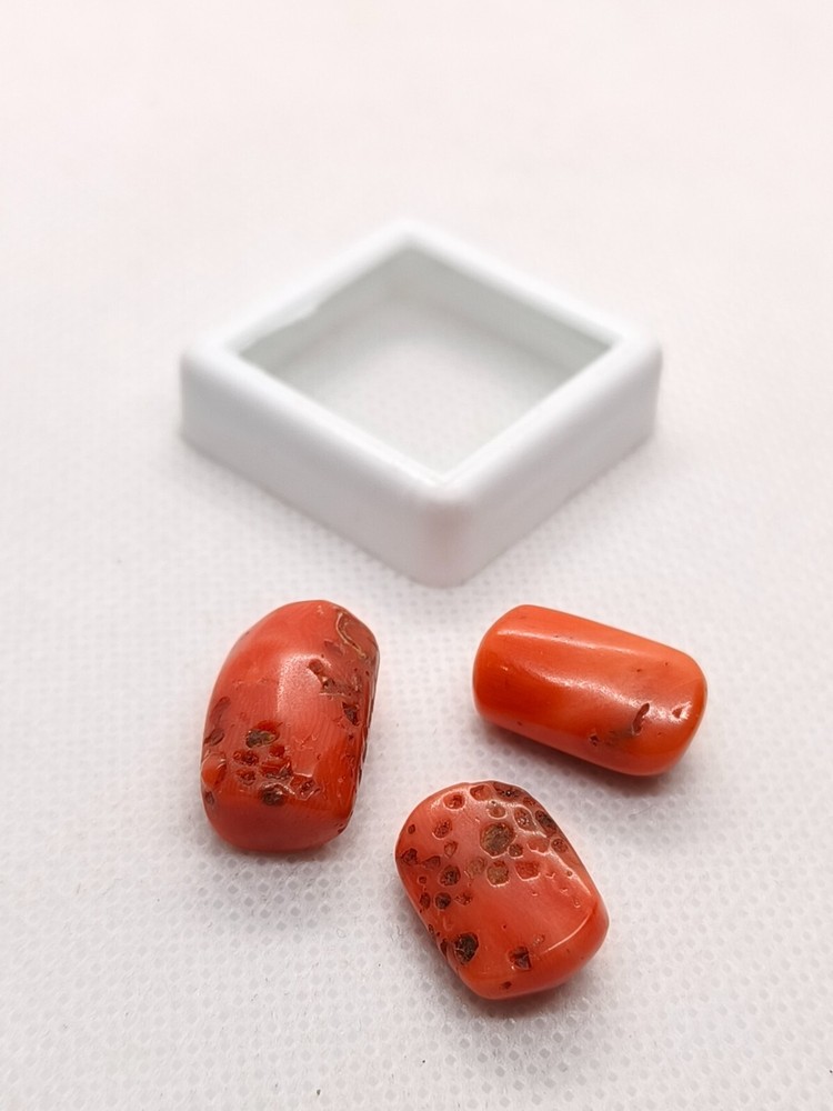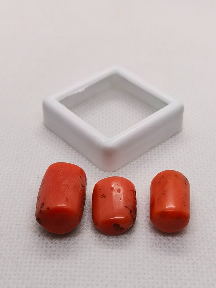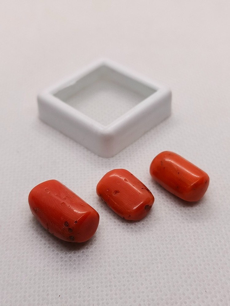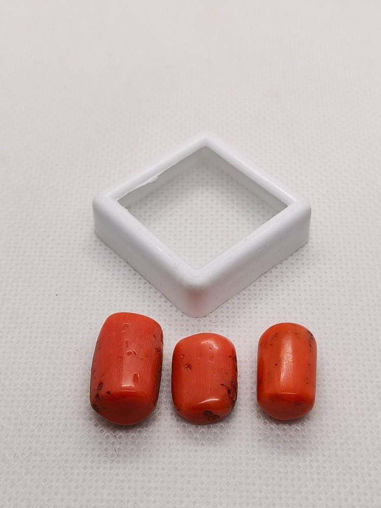Cut Grade: Excellent Gemstone Shape: Cabochon Gemstone Treatment: Not Enhanced Natural/Lab-Created: Natural Transparency: Opaque Certification: IGI Vintage: Yes Gemstone Form: Cut Gemstone Color: Orange Treatment: None (No Enhancement) Variety/Type: Red Gemstone Type: Coral Brand: Unbranded Shape: Cabochon Wholesale: Yes Gemstone Clarity Grade: Eye Clean Gemstone Creation: Natural Country/Region of Manufacture: India Total Carat Weight (TCW): 33 Cts Item Length: 15/18mm Materials Sourced From: Italy Number of Pieces: 3