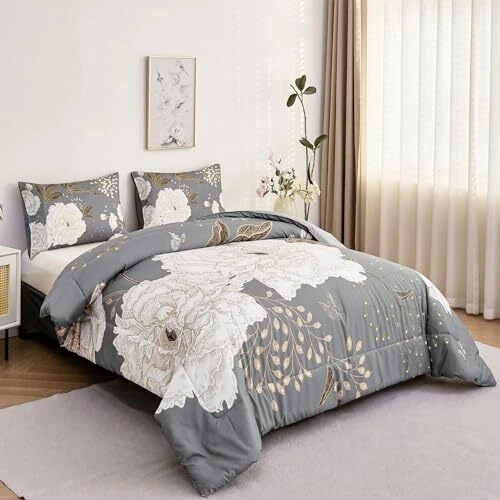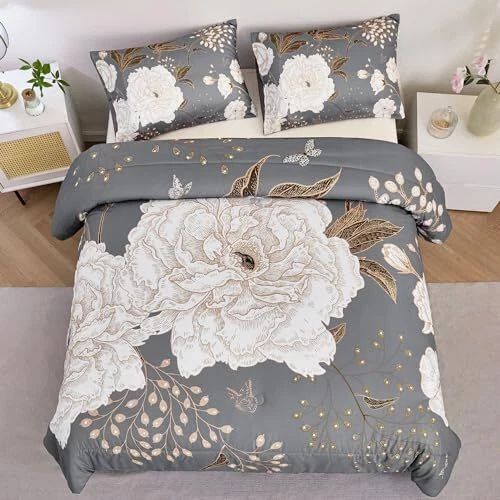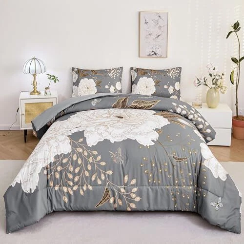 Material Type: Polyester Type: Does Not Apply Item Length: 1 Seasons: All Pattern: Floral Product Care Instructions: Machine Wash Color: Dark Grey Size: Queen(3Pcs) Item Width: 1 Included Components: 1x Floral Printed Comforter, 2x Matching Pillowcases Style Name: Flower Brand: Does Not Apply MPN: Does Not Apply EAN: Does Not Apply gtin13: Does Not Apply UPC: Does Not Apply Number of Pieces: 3 Theme: Botanical Fabric Type: Polyester Item Height: 1