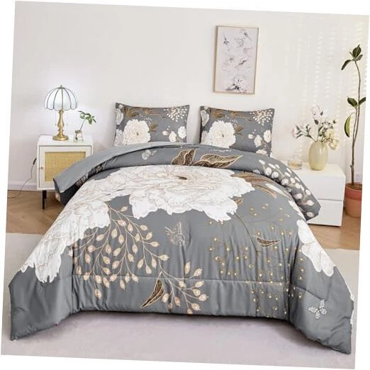 Return Policy Fast Delivery Trusted seller 3 Pieces Floral Print Bedding Set Queen White Flowers Botanical Bedding Comforter Set Butterfly and Gold Leaves Printed Dark Grey Comforter Set for Women Men Product Description Soft and Comfortable Fabric: The floral printed queen bed set uses high-quality polyester fabric, soft and comfortable to the touch, with good air permeability and warmth, so that you can enjoy a good sleep in a comfortable environment. Floral Design Style: With a floral theme, the 3 pcs queen comforter set gray uses fresh and elegant white flowers and gold leaves butterfly prints to create a romantic and warm style that will bring unique visual enjoyment to your bedroom. Queen Size Floral Comforter Set Gray Including: 1x Floral Printed Comforter 90"x90", 2x Pillowcases 20"x26". GOOD CHOICE AS A GIFT: Floral bedding set blue is used by everyone, practical, full of happiness and warmth, everyone will be very happy and joyful after receiving it. Perfect gifts at any holidays for your loved ones, such as parents, friends, boys, girls, men, women. Washable durability: Polyester fabric comforter has good washable durability and durability, even if it is washed frequently, it can keep new, so that your home environment is more tidy and beautiful. Shipping Returns Payment Shipping Shipping is FREE to all addresses other than APO/PO boxes in the lower 48 states. All our stock ships from US-based warehouses. Shipped via USPS or UPS (depending on location and package weight) Unless stated otherwise, all orders will ship within 24-72 hours of your payment being processed. Check our feedback to see the great reviews of FAST shipping we offer. Returns Seller does not accept returns Payment We currently accept payment via eBay managed payments only. Once payment is cleared, we will dispatch your shipment within 1-3 business days. Please refer to the "Shipping" tab for more information regarding shipping speed to your destination.