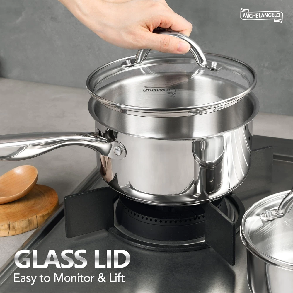 PRACTICAL CAPACITY: The 3qt saucepan is a kitchen workhorse, perfect for handling larger cooking tasks. It’s great for preparing family-sized portions of soups, stews, or pasta sauces. Its larger capacity makes it versatile enough for both everyday cooking and special occasions. FOR ALL STOVETOPS: The durable, food-grade 18/10 stainless steel with triple-bottom construction is perfect for all stovetops, including induction, and can move directly from the stovetop to oven or the broiler. Oven safe up to 600°F, lids up to 350°F. ENJOY THE VIEW: The stainless steel saucepan has clear, tempered glass lid, which makes it easy to check the progress of your dish without losing heat. COMFORTABLE HANDLES: The double riveted, hollow construction stainless steel handles provide a cool touch and a secure grip. IMPROVED POURING: The flared edge of the 3qt sauce pan provides a drip-free pouring experience, allowing liquids to be poured pan-to-plate without messy spills or drips. EFFORTLESS CLEANUP: The stainless steel construction makes the sauce pot easy to clean, and they are typically dishwasher safe for added convenience.
