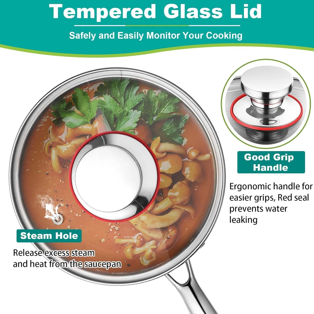 Menu Other Items Feedbacks About Us Contact Us Add To Favorites 3 Quart Tri-Ply Stockpot and Saucepan, Stainless Steel Sauce Pan with Lid, Cooking Induction Pot, Kitchen Cookware for All Stoves, Non-Toxic, Durable & Dishwasher Safe 【FULL 3-PLY PAN】 P&P CHEF 3qt saucepan is made of healthy 3 layered materials without toxic chemical coating, Inner 18/10 stainless steel will not react with food to alter natural tastes, Delivers fresh and flavorful results, Aluminum core for an even heating, Outer 18/0 stainless steel makes it work with induction cooktop perfectly, Feels sturdy when holding in hand, Durable use for long terms 【EXQUISITE CRAFT】Ergonomic long handle is comfortable to grasp and suitable for any size hands holding, no matter women or men, Firmly riveted to the saucepan for a safe gripping, which could bear heavy food and pot without breaking off, The big hole at the handle is designed for hanging on the hook anywhere for easy storage, Inner brush surface would reduce risks of sticking food and outer mirror surface always keep shiny and match a variety of kitchen styles 【VISIBLE GLASS LID】Tempered glass lid with steel edge is a thickened combination, which is impact and high temperature resistant for safe use, Easy to monitor the cooking process and lock the flavor and moisture of the food, A steam hole on the lid is designed for releasing excess steam and heat inside saucepan, Ergonomic knob and under red seal is easy to grip and better to prevent water leaking into between the lid and the handle 【OVEN & DISHWASHER SAFE】Full stainless steel stockpot could withstand high temperature and transfer heat evenly, Pan is oven safe up to 500℉, but please do not put the glass lid in the oven, It is perfect for baking and roasting, Both pan and lid is dishwasher safe To save your labor and time, Also easy clean by hand, Just easily soak in soapy water and then wash by soft cloth, Store in a ventilated and dry is a simple but useful maintenance 【3QT WITH MULTI USES】3 quart stock pot is efficient for home kitchen even restaurant use, Perfect to make 3 people food, like warming milk, boiling eggs, cooking noodle, pasta or soup, stewing and simmering, preparing food and reheating leftovers, Enjoy a healthier cooking and get rids of teflon, Easily work with all stoves, such as induction, gas, electric and halogen cooktops, A good gift for Housewarming, Birthday and Thanksgiving P&P CHEF 3 Quart Stockpot, is made of premium stainless steel and glass lid, which is healthy and durable for your daily use and last a long lifetime. Mirror finished outside and bush finished inside surface make the sauce pan look elegant and attractive in your kitchen and will match any kitchen styles. 3-ply construction ensures a sturdy and durable pan, which can work with multi stoves, like induction, gas, electric and halogen, and ceramic cooktops. Visible glass lid fits tight to lock in flavor, texture and nutrients. This stainless saucepan is easy to clean and always look like new when come out of the dishwasher. It is oven safe for baking and roasting, but the lid is not recommended. Get this pure stainless steel saucepan and get rids of toxic chemical coating from now! DIMENSION - 3 quart capacity; - Top Dia: 7.2-inch, Body Depth: 4.1-inch; - Handle Length: 8.4-inch, Lid Dia: 7.2-inch FEATURES ANTI OVERFLOW - Lid with vented hole to reduce pressure to prevent overflow EVEN HEAT - Sturdy bottom transfers heat quickly to ensure perfect out come EASY CLEAN - Pure stainless steel is rust free and easy clean, dishwasher safe HEALTHY - Made of premium stainless steel and glass, No any toxic chemical coating, Rust free and healthy for your daily use VISIBLE LID - Glass lid with steel edge help you better control the cooking process, Food comes out more perfect QUALIFIED - Handle and knob are connected by rivets, Feel solid and balance in hands, Durable for years to come USING INSTRUCTION 1.Please wash the saucepan with warm soapy water before your first using. 2.Please clean the saucepan with soft dishcloth, Do not use steel wire to scratch the shiny surface. 3.Please clean and dry the saucepan after using for healthy daily use, Dishwasher safe. 4.Attention: Pan is oven safe, but lid not. Item Specification Item Weight 3.43 pounds Item model number SSCP-11 Product Dimensions 15.67 x 6.81 x 4.13 inches Size 3 QT Dimensions Shipping Returns Additional Info Product Dimensions: 6.81 inches x 15.67 inches x 4.13 inches. Weight: 3.43 lb Fast shipping is very important for us. Our standard shipping service is FREE. Your order will be shipped within 1-3 business days upon full payment received. Most items are delivered within 3-5 business days, however, please allow 3-10 business days. We are shipping only to USA. We only ship to the confirmed Paypal address. We reserve the right to cancel any order for any reason at any time. We are not responsible for undeliverable addresses. We offer a 30 day return policy from checkout winning date. Your satisfaction is guaranteed! If for any reason you are unhappy with your item, just return it within 30 days for a full refund, minus shipping cost. Please contact us prior to initiating a return so that we can issue you a refund authorization. Items defective upon receipt must be packaged in their retail packaging as if new and returned with a detailed description of the problem. Return shipping fees are not refundable. We reserve the right to decline any returns if the above guidelines are not followed. All of our items, unless otherwise stated, will only run on 120 volts. Please check to make sure your country complies with these specifications. If you have a problem or question regarding your transaction please contact us before leaving any type of feedback. We will work with you to resolve any problem you may have.