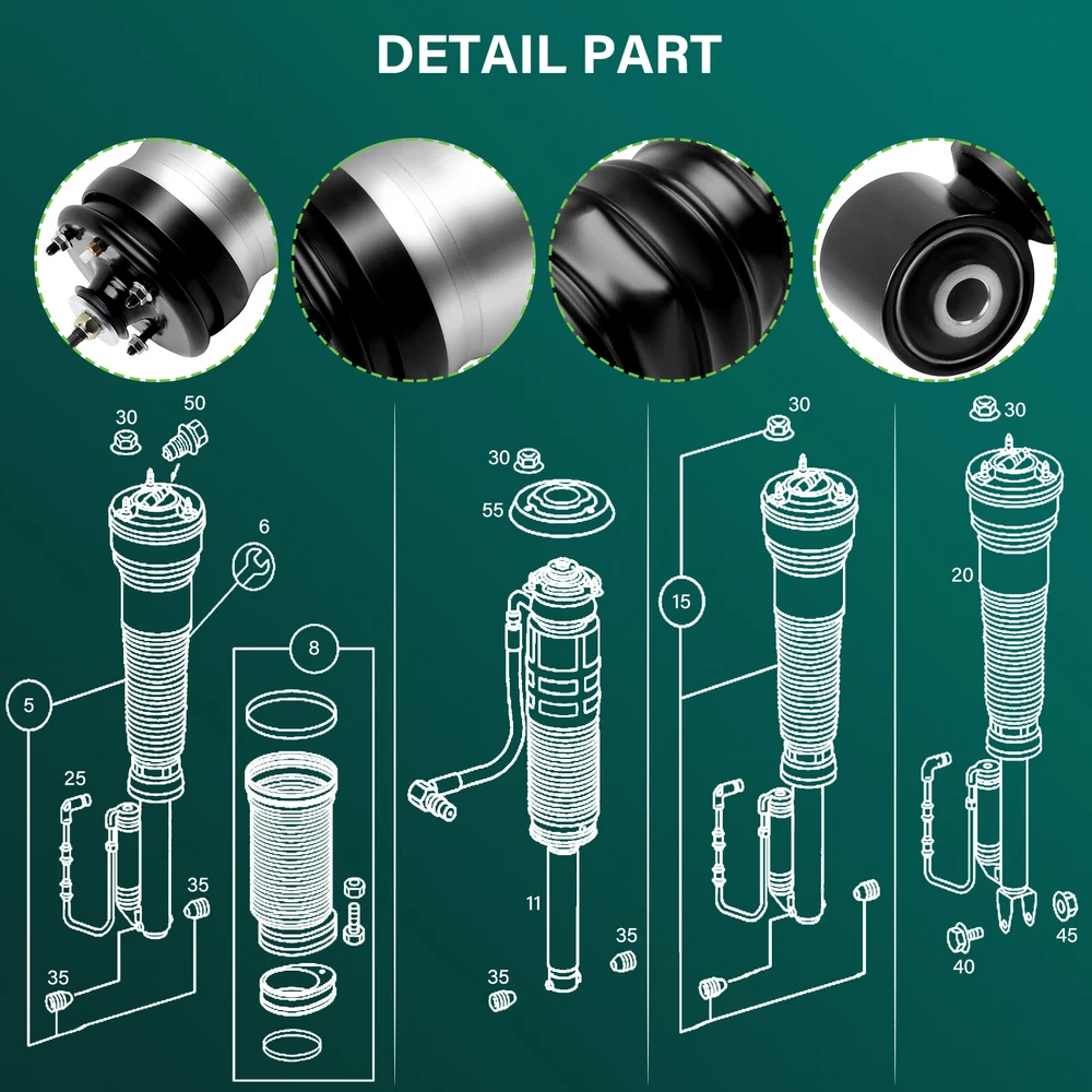 *Compatibility Chart 1, You can distinguish specific model of an automobile by VIN(Vehicle Identification Number). 2, VIN(Vehicle Identification Number) consists of total 17 English letters and arabic digits. 3, VIN does not include the letters I (i), O (o), and Q (q) (to avoid confusion with numerals 1 and 0). Range Rover Sport Excludes VDS Model With Electrical Plug on Mounting Base 2010-2014 3 Rear Air Suspension Strut Compressor Fits Land Rover LR3 LR4 Range Rover Sport *Compatibility Chart 1, You can distinguish specific model of an automobile by VIN(Vehicle Identification Number). 2, VIN(Vehicle Identification Number) consists of total 17 English letters and arabic digits. 3, VIN does not include the letters I (i), O (o), and Q (q) (to avoid confusion with numerals 1 and 0). Range Rover Sport Excludes VDS Model With Electrical Plug on Mounting Base 2010-2014 GT Limited Edition 3 Sport Utility 4-Door 5.0L 2012 GT Limited Edition Sport Utility 4-Door 5.0L 2011 2013 HSE Lux Sport Utility 4-Door 5.0L 2012-2013 HSE Sport Utility 4-Door 4.4L 2006-2009 HSE Sport Utility 4-Door 5.0L 2010-2013 LE Sport Utility 4-Door 4.2L 2008 Supercharged Sport Utility 4-Door 4.2L 2006-2009 Land Rover LR4 Base Sport Utility 4-Door 3.0L 2014-2016 Base Sport Utility 4-Door 5.0L 2011-2013 HSE Lux Sport Utility 4-Door 3.0L 2014-2016 HSE Lux Sport Utility 4-Door 5.0L 2012-2013 HSE Sport Utility 4-Door 3.0L 2014-2016 HSE Sport Utility 4-Door 5.0L 2010-2013 SE Sport Utility 4-Door 5.0L 2010-2013 V8 Sport Utility 4-Door 5.0L 2010 Land Rover LR3 Base Sport Utility 4-Door 4.0L 2006 HSE Lux Sport Utility 4-Door 4.4L 2009 HSE Sport Utility 4-Door 4.4L 2005-2009 SE Sport Utility 4-Door 4.0L 2005-2009 SE Sport Utility 4-Door 4.4L 2005-2009 *Air Suspension Structure: 1 Front Rh Air Spring Damper Module 2 Front Rh Height Sensor 3 Air Suspension Control Module 4 Air Suspension Control Switch 5 Rear Rh Height Sensor 6 Rear Rh Air Spring Damper Module 7 Air Supply Unit Silencer 8 Rear Lh Air Spring Damper Module 9 Air Fitter 10 Rear Valve Block 11 Rear Lh Height Sensor 12 Upper Acoustic Cover 13 Lower Acoustic Cover 14 Air Supply Unit 15 Reservoir Valve Block 16 Air Reservoir 17 Front Lh Height Sensor 18 Front Lh Air Spring Damper Module 19 Front Valve Wock * Generation & Evolution: Land Rover Discovery First generation (Project Jay; 1989-1998) Second generation (LR2/L318; 1998-2004) Third generation (LR3/L319; 2004-2009) Fourth generation (LR4/L319; 2009-2016) Fifth generation (L462; 2017-present) Range Rover Sport First generation (L320; 2005-2013) Second generation (L494; 2013-present ) SVR (2015 Pre-Facelift) SVR (2018 Facelift) *Platform Drive Layout : Front Engine-Four Wheel Drive Layout *Air Suspension System: The Discovery LR3 LR4 own fully independent air suspension with cross-linking when off-road and the twin-range transfer gearbox with an electronic infinitely variable locking centre differential. As before, a similar locking rear differential is available. The Terrain Response system remains but with two new features – the 'Sand' mode incorporates a new traction control mode to prevent loss of traction when starting off and stopping in soft sand, and the 'Rock Crawl' mode gains a feature that applies gentle brake pressure at low (less than walking pace) speeds to improve grip and stability on slick rock. Range Rover Sport air suspension system gives the driver the option of three ride height settings including a standard ride height of 172 mm (6.8 in), an off-road height of 227 mm (8.9 in) and a lowered access mode. There is also an extra height available which is accessed by holding the respective button for when the off-road ride height is not enough. When the vehicle bellies out, its control system will sense weight being lessened on the air springs and the ride height is automatically raised to the suspensions greatest articulation. The cross-link aspect of the suspension system, which debuted on the L322 Range Rover in 2002, results in better off-road performance by electronically operating valves in pneumatic lines which link adjacent air springs. In the event of a wheel on one side being raised when travelling off-road, the pneumatic valves are opened and the adjacent wheel is forced down, simulating the action of a live axle setup. *Removal Guideline: Caution: Damage to the vehicle and air suspension system can be incurred if work is carried out in a manner other than specified in the instructions or in a different sequence. 1.To avoid the possibility of short circuits while working with electric components consult your owner's manual on how to disconnect your battery. 2.Consult your vehicle owner's manual, service manual, or car dealer for the correct jacking points on your vehicle and for additional care, safety and maintenance instructions. Under no circumstances should any work be completed underneath the vehicle if it is not adequately supported, as serious injuries and death can occur. 1.Remove rear wheel to expose the rear air strut.(picture 1) 2.Loosen and remove the lower mount nut. Support the air strut and remove the lower mount bolt.(pictures 2,3) 3.Loosen and remove the three(3)top mounting nuts.(picture 4) 4.Carefully lower the air strut to gain access to the air line. Unthread the air fitting.(picture 5) 5.Remove the air strut from the vehicle.(picture 6) 6.Remove the air line fitting from the air hose and discard. To remove the air line fitting,remove the collet and the remaining fitting will slide off of air hose.(picture 7) 7.Removal complete. *Installation Guideline: 1.Place new air strut onto vehicle, oriented in the same position as strut previously removed. 2.Insert the air line into the voss fitting, making sure it is firmly seated and will not pull back out.(picture 8) 3.Install and tighten the three(3)top mounting nuts to manufacturer's specification.(picture 9) 4.Support the air strut and install the lower mount bolt. Re-install and tighten the lower mount nut to manufacturer'