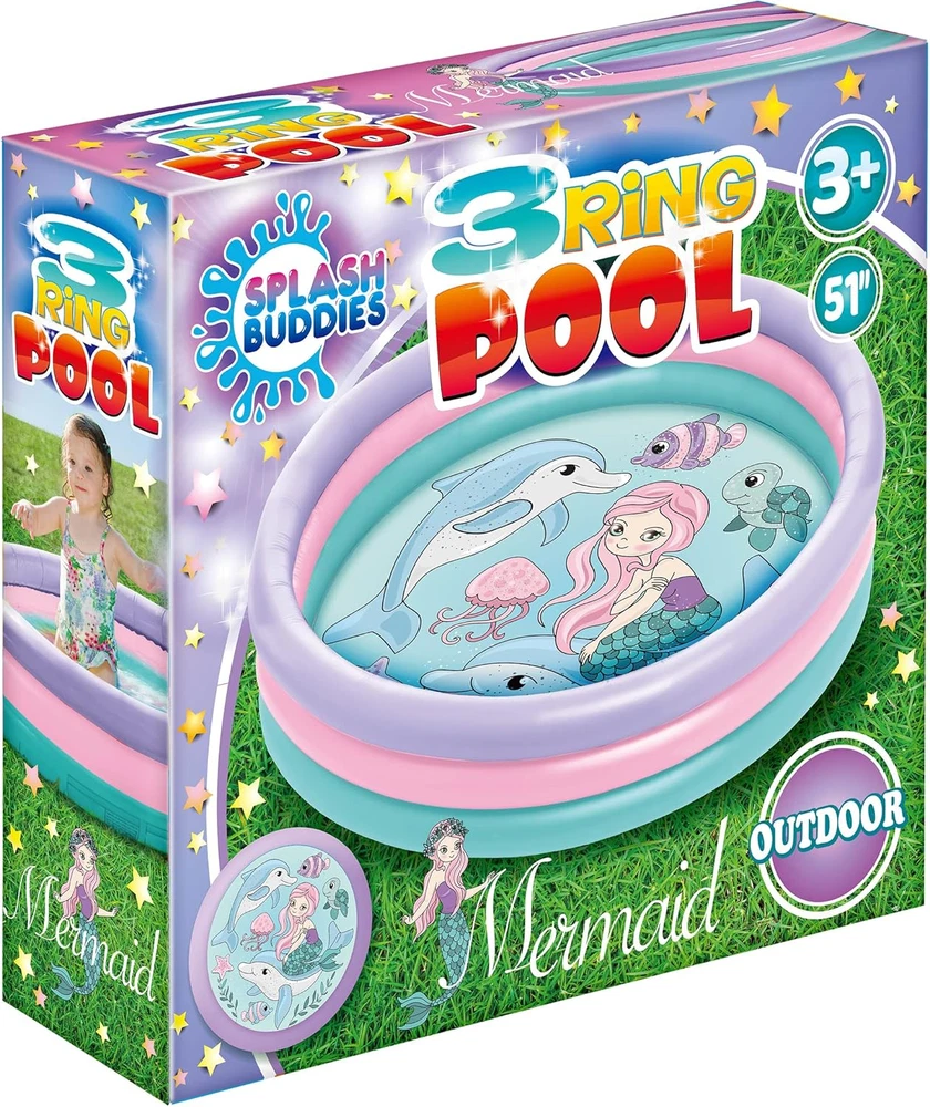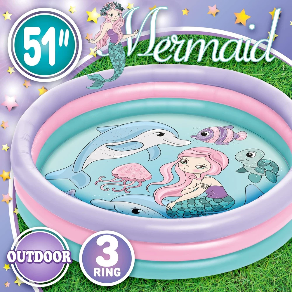 3 Ring Inflatable Kiddie Pool with Mermaid Design 51" for Kids