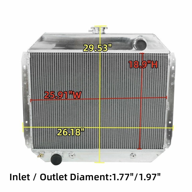 Store Categories Store Categories Car Aluminum Radiator Silicone Hose Moto Aluminum Radiator Intercooler Fan Other 3 Row Aluminum Radiator & Fan For 1966-1979 67 Ford F-100 F-150 F-250 F-350 V8 Product Description FOR 1966-1979 FORD F-100 F-150 F-250 F-350 / 1978 1979 FORD BRONC CU433 This high-quality car radiator It features efficient cooling that reduces engine temperature effectively. The durable construction of the radiator is made with premium materials, and the precise design meets automotive engineering standards. Installation is easy, and no additional tools or skills are required. Package includes: 1X 3 Row Aluminum Radiator 2 X FANS Just as pictures show Specifications Core Size: 18.90"×25.91"(480mm × 658mm) Material:ALL Aluminum Row No:3 Row Core Thickness:2.44"(62mm) Overall Size: 26.18" × 29.53" × 5.59"(665*750*142mm) Core He ight:18.90 in Core Width:25.91in Inlet/Outlet:1.77"/1.97" DPI 433 Compatible Car Models 1978 1979 Ford Bronco Custom V8 5.8L 1978 1979 Ford Bronco Custom V8 6.6L 1978 Ford Bronco Northland V8 5.8L 1978 Ford Bronco Northland V8 6.6L 1978 1979 Ford Bronco Ranger XLT V8 5.8L 1978 1979 Ford Bronco Ranger XLT V8 6.6L 1970-1979 Ford F-100 Base V8 5.0L 1970 1971 1972 1973 1974 1975 1976 1977 1978 1979 1977 1978 Ford F-100 Base V8 5.8L 1970-1974 1976 Ford F-100 Base V8 5.9L 1970 1971 1972 1973 1974 1970-1974 1976 Ford F-100 Base V8 6.4L 1970 1971 1972 1973 1974 1978 Ford F-100 Base V8 6.6L 1975-1979 Ford F-100 Custom V8 5.0L 1975 1976 1977 1978 1979 1977-1979 Ford F-100 Custom V8 5.8L 1977 1978 1979 1975 1976 Ford F-100 Custom V8 5.9L 1975 1976 Ford F-100 Custom V8 6.4L 1978 1979 Ford F-100 Custom V8 6.6L 1975 1978 Ford F-100 Northland V8 5.0L 1977 1978 Ford F-100 Northland V8 5.8L 1975 1976 Ford F-100 Northland V8 5.9L 1975 1976 Ford F-100 Northland V8 6.4L 1978 Ford F-100 Northland V8 6.6L 1978 1979 Ford F-100 Ranger Lariat V8 5.0L 1978 1979 Ford F-100 Ranger Lariat V8 5.8L 1978 1979 Ford F-100 Ranger Lariat V8 6.6L 1975-1979 Ford F-100 Ranger V8 5.0L 1975 1976 1977 1978 1979 1977-1979 Ford F-100 Ranger V8 5.8L 1977 1978 1979 1975 1976 Ford F-100 Ranger V8 5.9L 1975 1976 Ford F-100 Ranger V8 6.4L 1978 1979 Ford F-100 Ranger V8 6.6L 1975-1979 Ford F-100 Ranger XLT V8 5.0L 1975 1976 1977 1978 1979 1977-1979 Ford F-100 Ranger XLT V8 5.8L 1977 1978 1979 1975 1976 Ford F-100 Ranger XLT V8 5.9L 1975 1976 Ford F-100 Ranger XLT V8 6.4L 1978 1979 Ford F-100 Ranger XLT V8 6.6L 1977 Ford F-100 XLT V8 5.0L 1977 Ford F-100 XLT V8 5.8L 1976-1978 Ford F-150 Base V8 5.0L 1976 1977 1978 1977 1978 Ford F-150 Base V8 5.8L 1976 Ford F-150 Base V8 5.9L 1976 Ford F-150 Base V8 6.4L 1978 Ford F-150 Base V8 6.6L 1975-1979 Ford F-150 Custom V8 5.0L 1975 1976 1977 1978 1979 1977-1979 Ford F-150 Custom V8 5.8L 1977 1978 1979 1975 1976 Ford F-150 Custom V8 5.9L 1975 1976 Ford F-150 Custom V8 6.4L 1978 1979 Ford F-150 Custom V8 6.6L 1975-1978 Ford F-150 Northland V8 5.0L 1975 1976 1977 1978 1977 1978 Ford F-150 Northland V8 5.8L 1975 1976 Ford F-150 Northland V8 5.9L 1975 1976 Ford F-150 Northland V8 6.4L 1978 Ford F-150 Northland V8 6.6L 1978 1979 Ford F-150 Ranger Lariat V8 5.0L 1978 1979 Ford F-150 Ranger Lariat V8 5.8L 1978 1979 Ford F-150 Ranger Lariat V8 6.6L 1975-1979 Ford F-150 Ranger V8 5.0L 1975 1976 1977 1978 1979 1977-1979 Ford F-150 Ranger V8 5.8L 1977 1978 1979 Interchange Part Number:1966-1979 1967 1968 1969 1970 1971 1972 1973 1974 1975 1976 1977 1978,Bronco,Ford ,F-100 F-150 F-250 F-350,F-500,Base,Custom,Northland,Ranger XLT,XLT,Ranger Lariat,Ranger,F-Series Truck, V8 5.0L 5.4L 5.8L 5.9L 6.4L 6.6L,CU 433, DPI 433, RAD433,433 About Us We are a professional car parts manufacturer committed to providing our customers with high-quality products and services. If you have any questions or need assistance, please feel free to contact us. Payment Policy Shipping Policy Returns Policy Payment Policy Payment must be received within 3 days upon completion of auction Deliver the product after clear the payment If you have questions or doubt about the products, please contact us before you bid. Payment must be received within 3 days upon completion of auction Payment is required within 3 days of the auction's end. If payment is not received within this time frame, the item will be relisted and a non-paying bidder alert will be filed with eBay. Deliver the product after clear the payment We will ship the product promptly after receiving cleared payment. Please allow up to 3 business days for processing and handling. You will receive a tracking number once the item has been shipped. If you have questions or doubt about the products, please contact us before you b id. If you have any questions or concerns about the product, please contact us before placing a bid. We will be happy to provide any additional information or clarification that you may need. Shipping Policy Item would be sent to you by FedEx or UPS or USPS from our United States warehouse after payment clearance in 1 working day for USA buyer,please advise your physical address and phone no. No shipping on weekends or holidays. Depend on diffidence area needs 3 - 10 Working DAYS Item would be sent to you by FedEx or UPS or USPS from our United States warehouse after payment clearance in 1 working day for USA buyer,please advise your physical address and phone no. For buyers located in the USA, we will ship the item from our United States warehouse via FedEx or UPS or USPS within one working day of payment clearance. Please provide us with your physical address and phone number for shipping purposes. No shipping on weekends or holidays. Please note that we do not ship on weekends or holidays. Orders received on these days will be processed on the next business day. Depend on diffidence area needs 3 - 10 Working DAYS Delivery time may vary depending on the buyer's location. Typically, delivery within the USA takes 3-5 working days, while international delivery may take 5-10 working days. Please note that these delivery tim