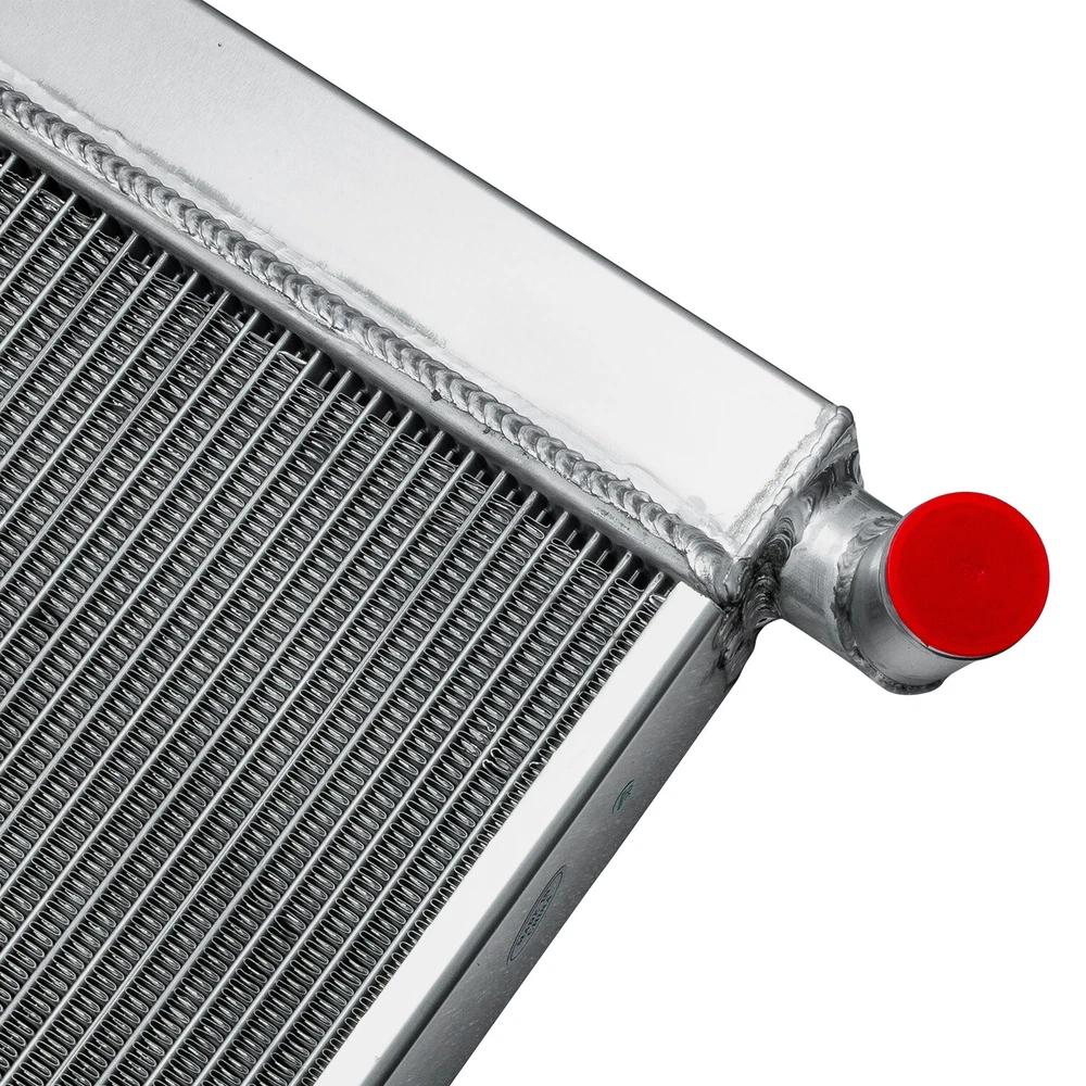 Core Number of Rows:: 3-Row of tubes Core Racing Design UPC: Does not apply Outlet Diameter: 1 3/4in. Mounting Style: Bolt-On Placement on Vehicle: Engine Compartment Type: Radiator Features: 100% Leak Tested, 3 Rows, Crossflow Radiator, Durability Tested, No Drilling or Modifications Needed for Installation Brand: Fongoff Engine Version:: 350 Chevy Small Block Gen I Manufacturer Warranty: 1 Year Performance Part: Yes gtin13: Does not apply Item Height: 16 1/2" Notice: Only suitable for manual Style: Crossflow Application:: For Chevy Corevette 5.3L 5.4L 5.7L V8 1963-1972 64 65 66 Fitment Type: Performance/Custom Feature: ESCP Universal Fitment: No OVERALL DIMENSIONS: 24 1/4" WIDE X 18" HIGH Transmission Oil Cooler: NO Item Length: 17 1/2" Inlet Diameter: 1 1/2in. Color: Unpainted Material: Aluminum